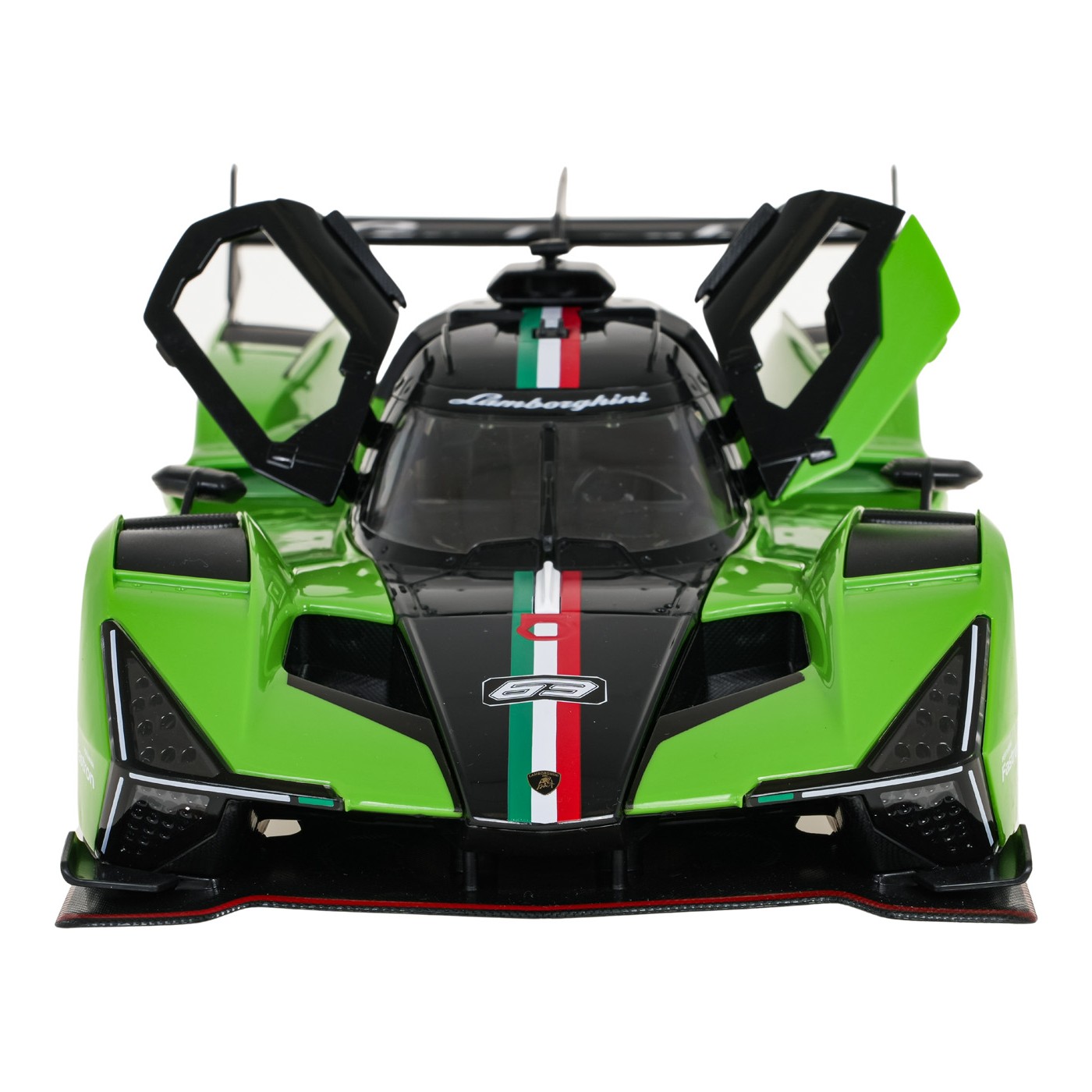 Model Lamborghini SC63 wykonano z odpornego na uszkodzenia plastiku ABS i wyposażono w starannie dopracowane detale. W skali 1:14 prezentuje się bardzo realistycznie, osiągając rozmiary ok. 35,5 × 14 × 9 cm. Pojazd porusza się we wszystkich kierunkach, posiada 2 tryby prędkości oraz światła LED z przodu, które dodają mu nowoczesnego charakteru.