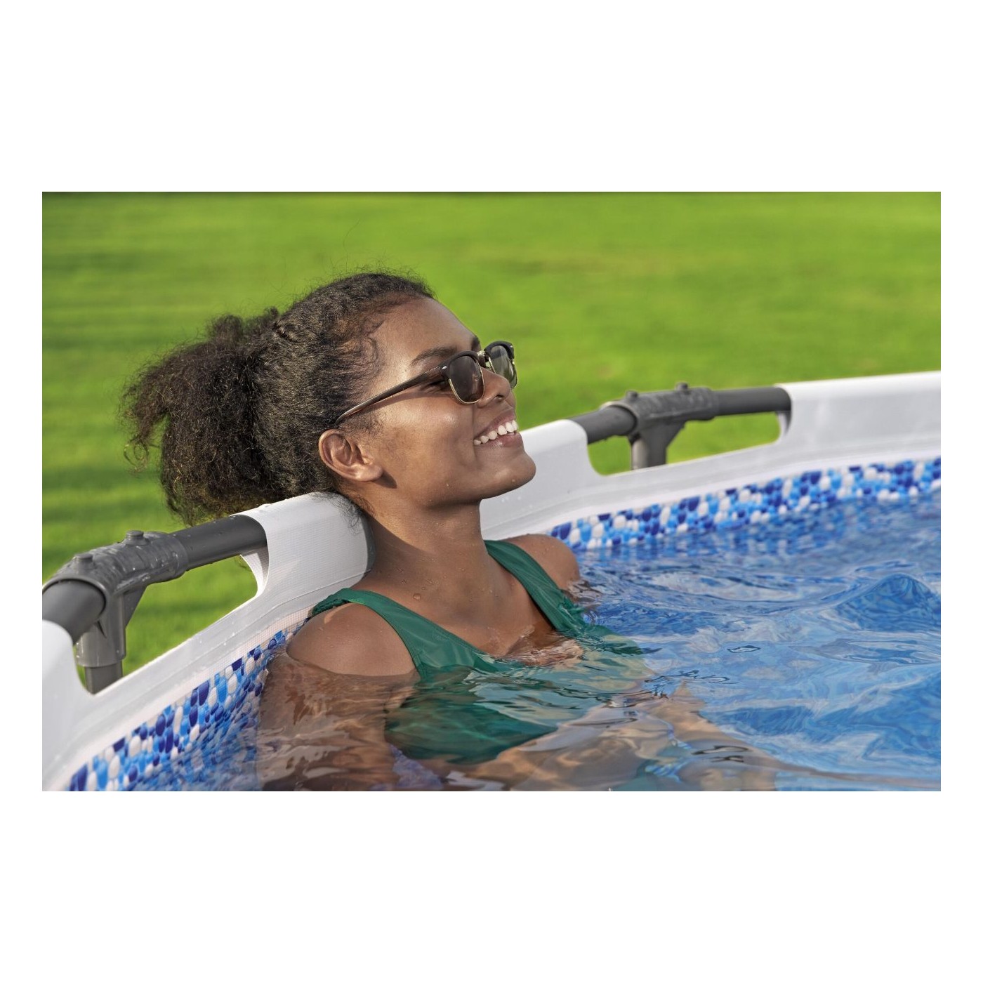 Basen Steel Pro Max, wykonany z technologii DuraPlus i Prismatic Stone, zapewnia nie tylko wysoką trwałość, ale również wygodę podczas kąpieli. Dzięki zastosowaniu tych materiałów, dno basenu jest gładkie i przyjemne w dotyku, co pozwala na komfortowe korzystanie z niego przez dłuższy czas.