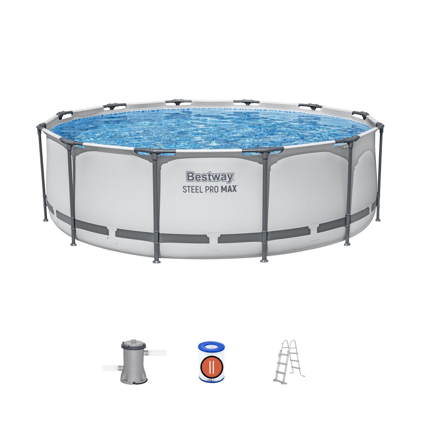 Basen stelażowy Steel Pro MAX 366x100 Szary 12FT BESTWAY 4w1 + Pompa Filtr + Drabinka