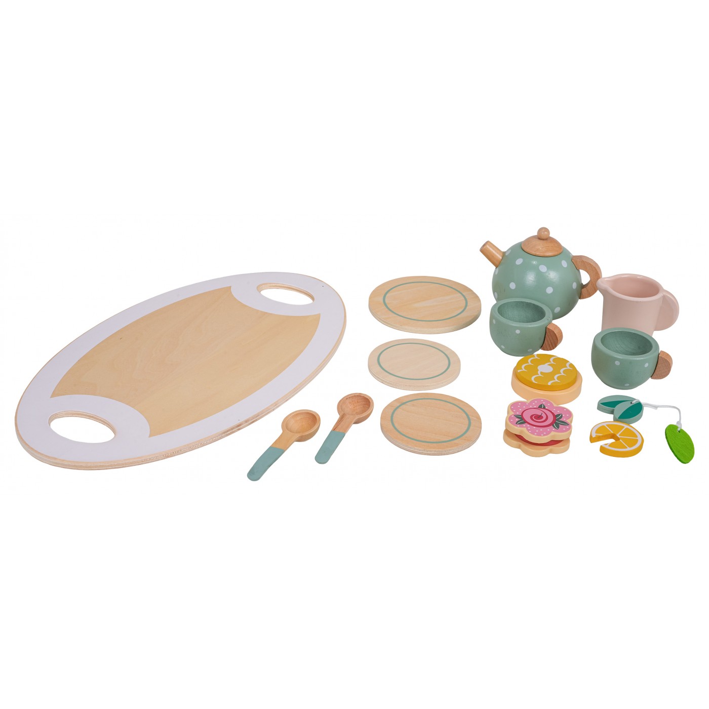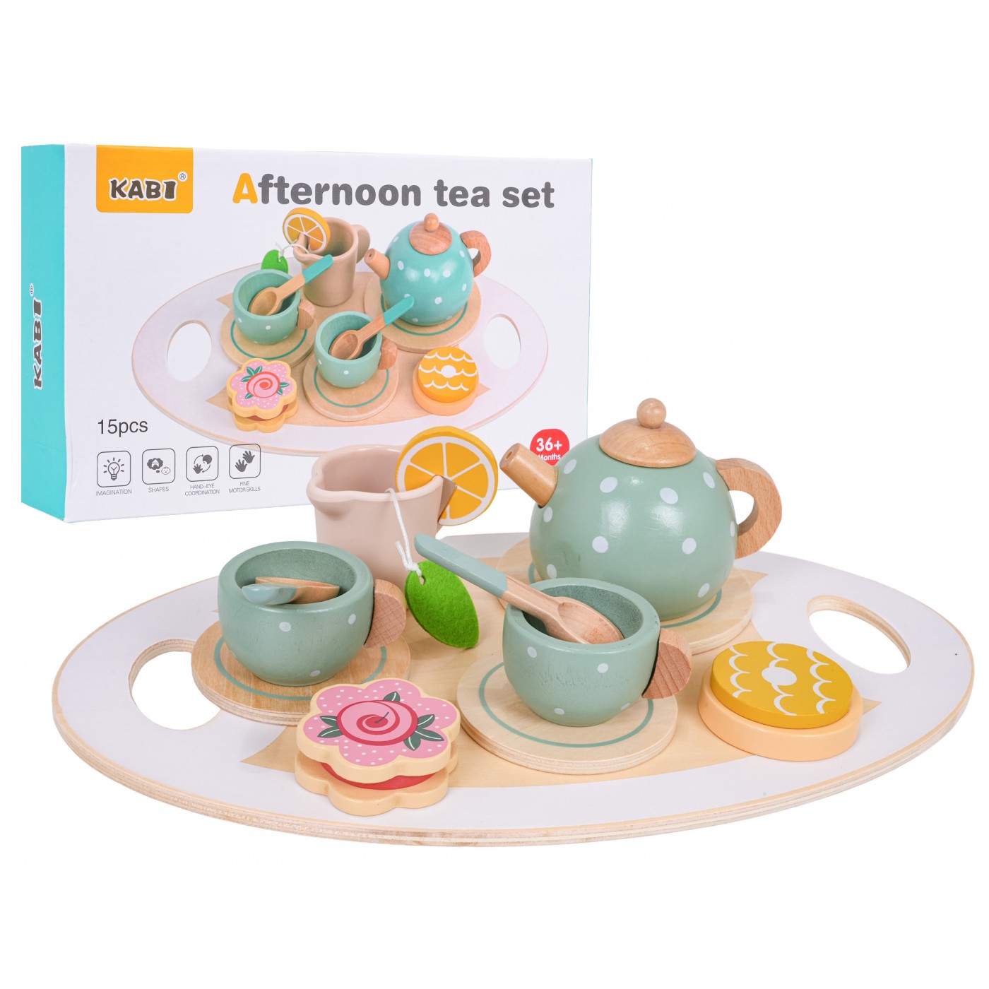 W skład zestawu wchodzi 15 starannie zaprojektowanych elementów, takich jak filiżanki, dzbanek, talerzyki i dodatki do serwowania. Wszystko wykonane zostało z wytrzymałego drewna, odpornego na codzienne użytkowanie.