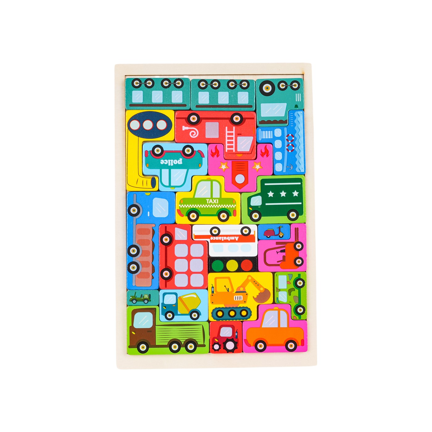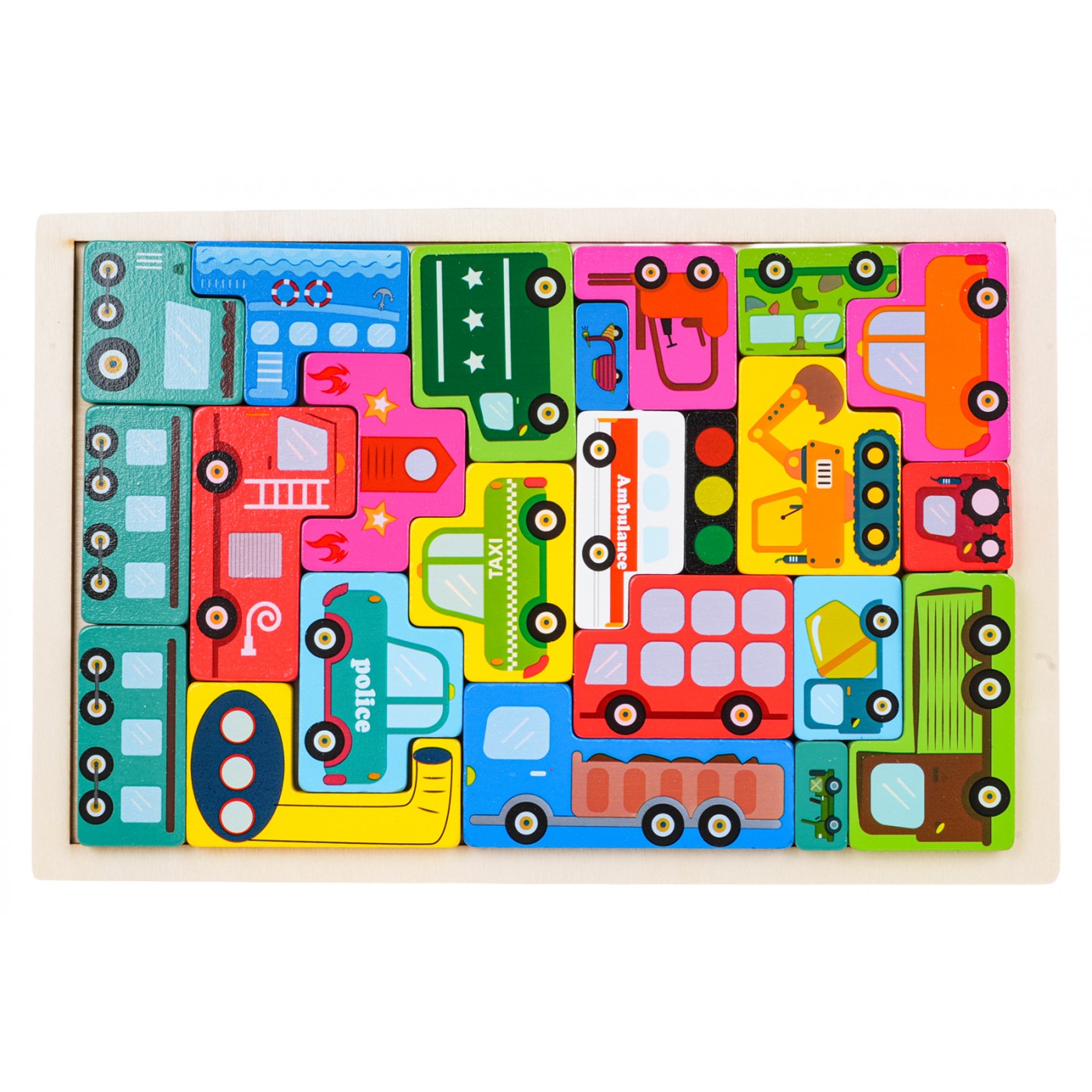 Drewniany Zestaw Układanki Puzzli Pojazdy