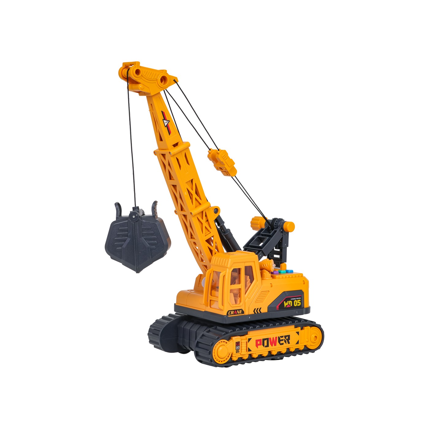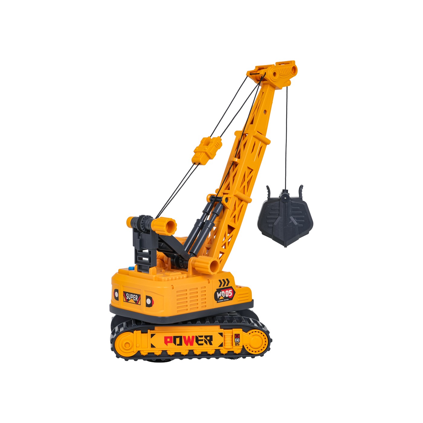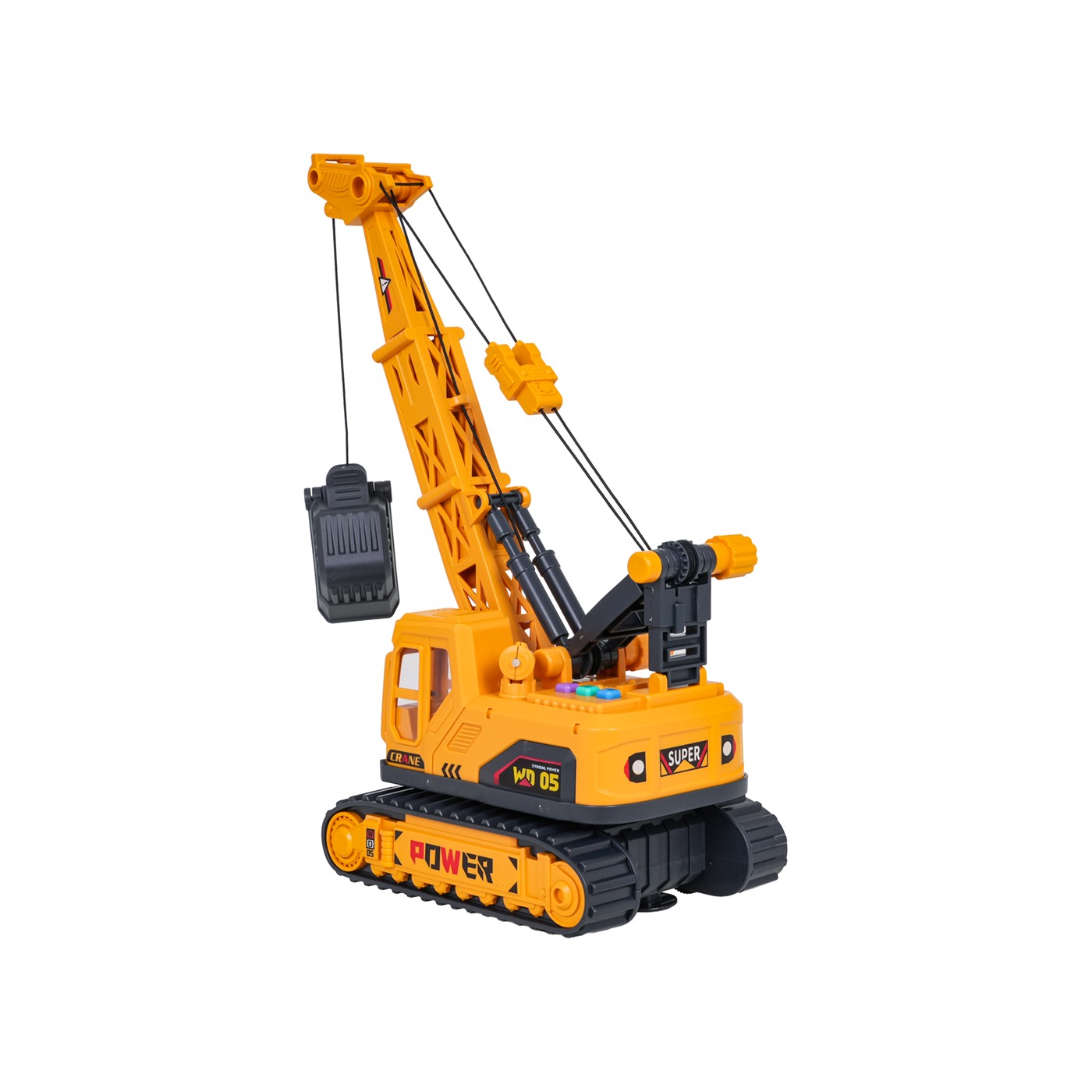 Model wyposażono w ręcznie sterowany wysięgnik oraz chwytak, który można opuszczać i podnosić. Podstawa dźwigu obraca się o 360 stopni, co pozwala na swobodne wykonywanie zadań załadunkowych. Na dachu umieszczono przyciski uruchamiające efekty świetlne i dźwiękowe – odgłosy pracy maszyny oraz wesołe melodie. Spód pojazdu wyposażono w małe kółeczka z napędem, które umożliwiają przemieszczanie dźwigu w wybranym kierunku. Zabawka zasilana jest trzema bateriami AG13, dołączonymi do zestawu.
