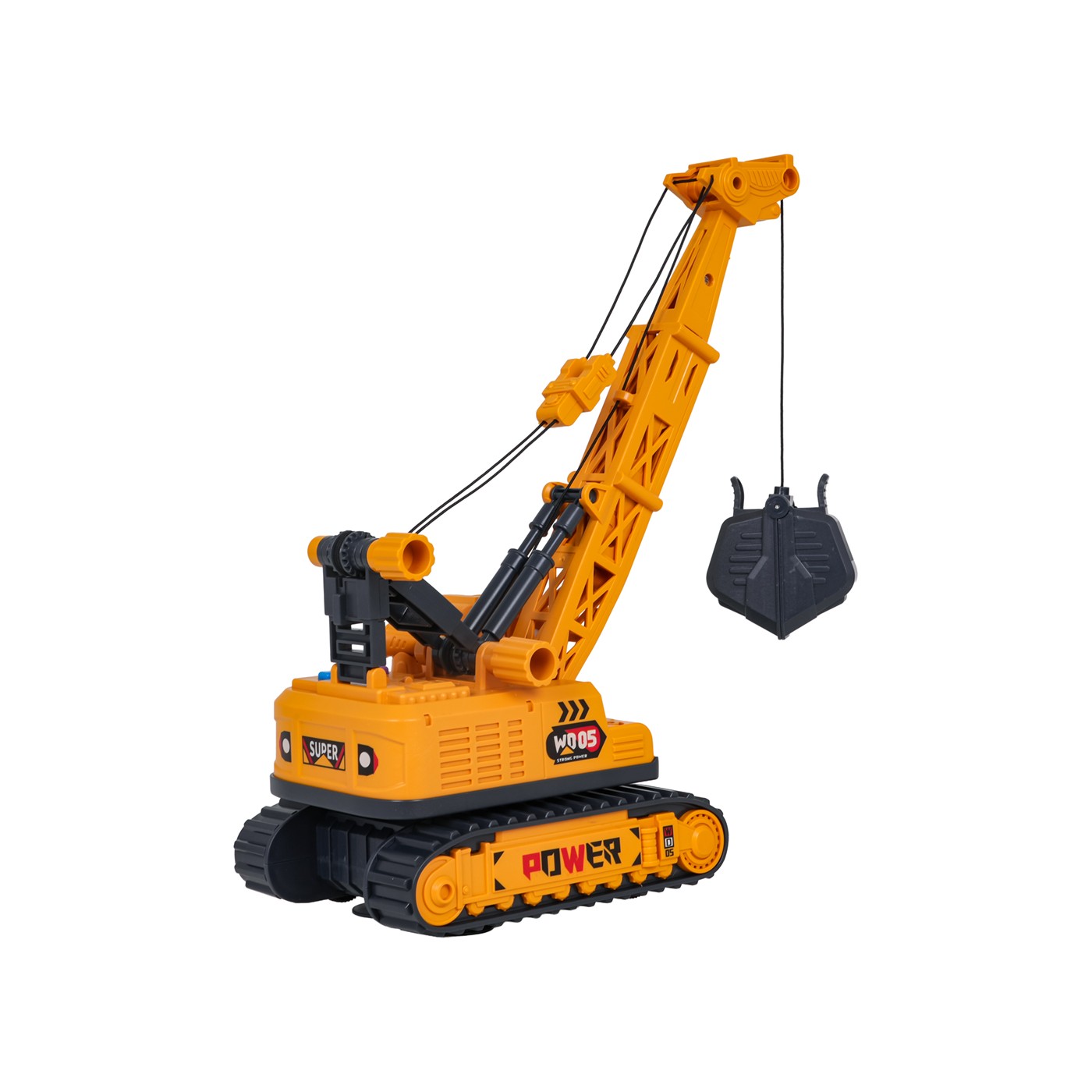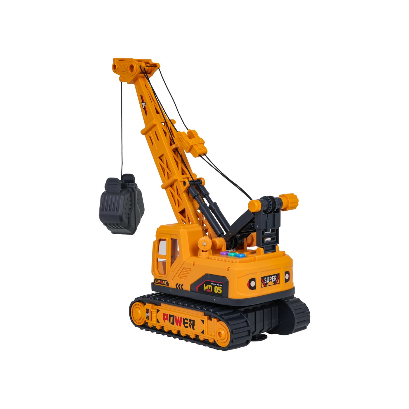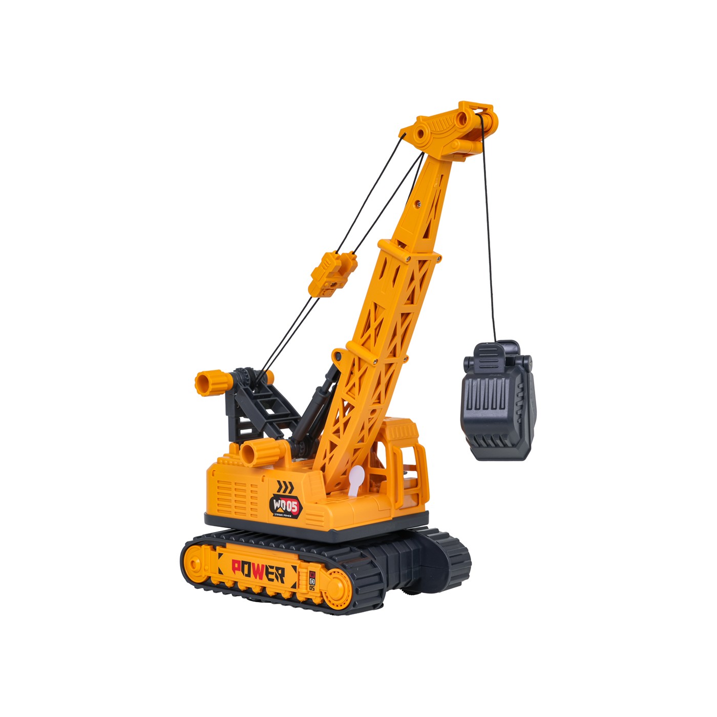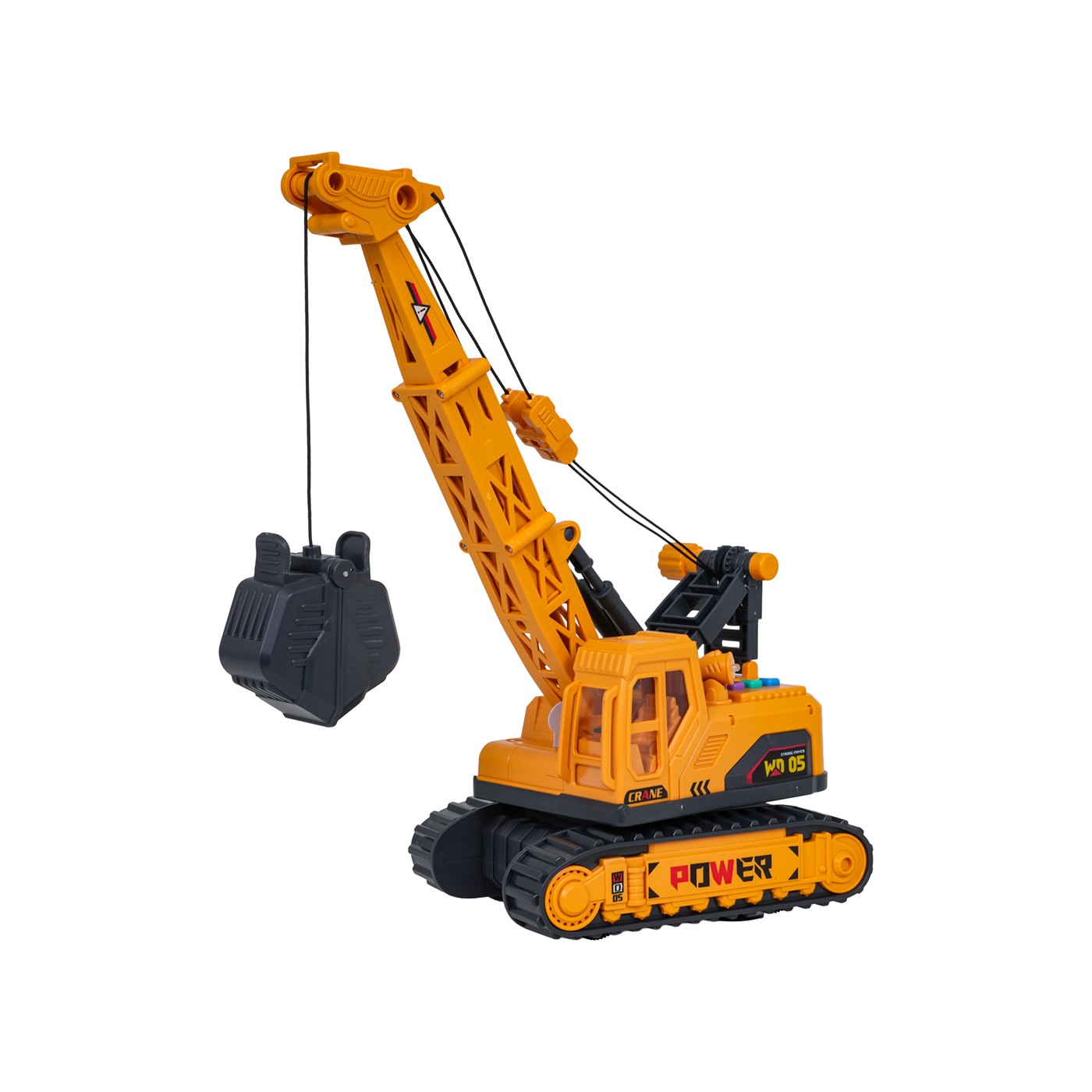 Model wyposażono w ręcznie sterowany wysięgnik oraz chwytak, który można opuszczać i podnosić. Podstawa dźwigu obraca się o 360 stopni, co pozwala na swobodne wykonywanie zadań załadunkowych. Na dachu umieszczono przyciski uruchamiające efekty świetlne i dźwiękowe – odgłosy pracy maszyny oraz wesołe melodie. Spód pojazdu wyposażono w małe kółeczka z napędem, które umożliwiają przemieszczanie dźwigu w wybranym kierunku. Zabawka zasilana jest trzema bateriami AG13, dołączonymi do zestawu.