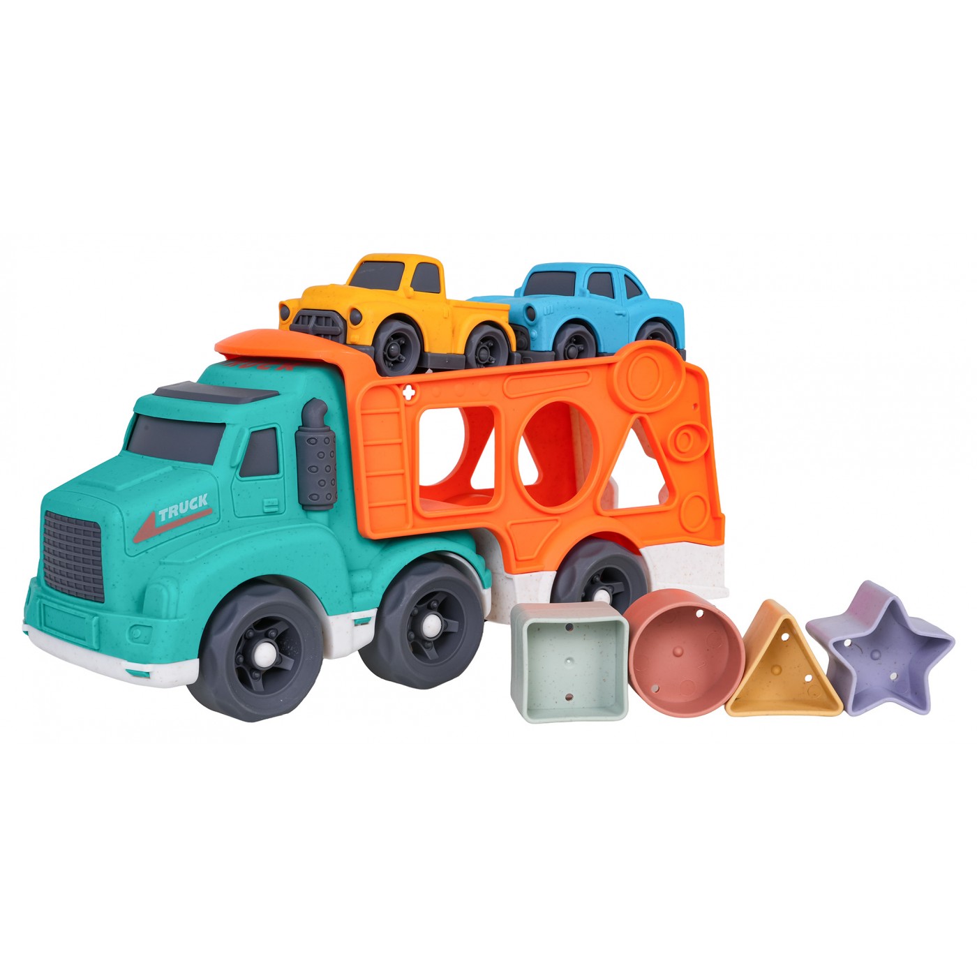 Zestaw EKO laweta z sorterem i autkami to propozycja dla najmłodszych, która łączy radość zabawy z troską o środowisko. Wykonany z bioplastiku zestaw składa się z dużego pojazdu z odpinaną lawetą, dwóch kolorowych autek oraz sortera kształtów wbudowanego po bokach naczepy. Intensywne barwy, bezpieczne kształty i brak ostrych krawędzi sprawiają, że zabawka jest w pełni odpowiednia dla dzieci już od osiemnastego miesiąca życia. Zarówno w domu, jak i na świeżym powietrzu, zestaw świetnie sprawdza się jako źródło ruchu, kreatywności i pierwszych doświadczeń związanych z pojazdami.