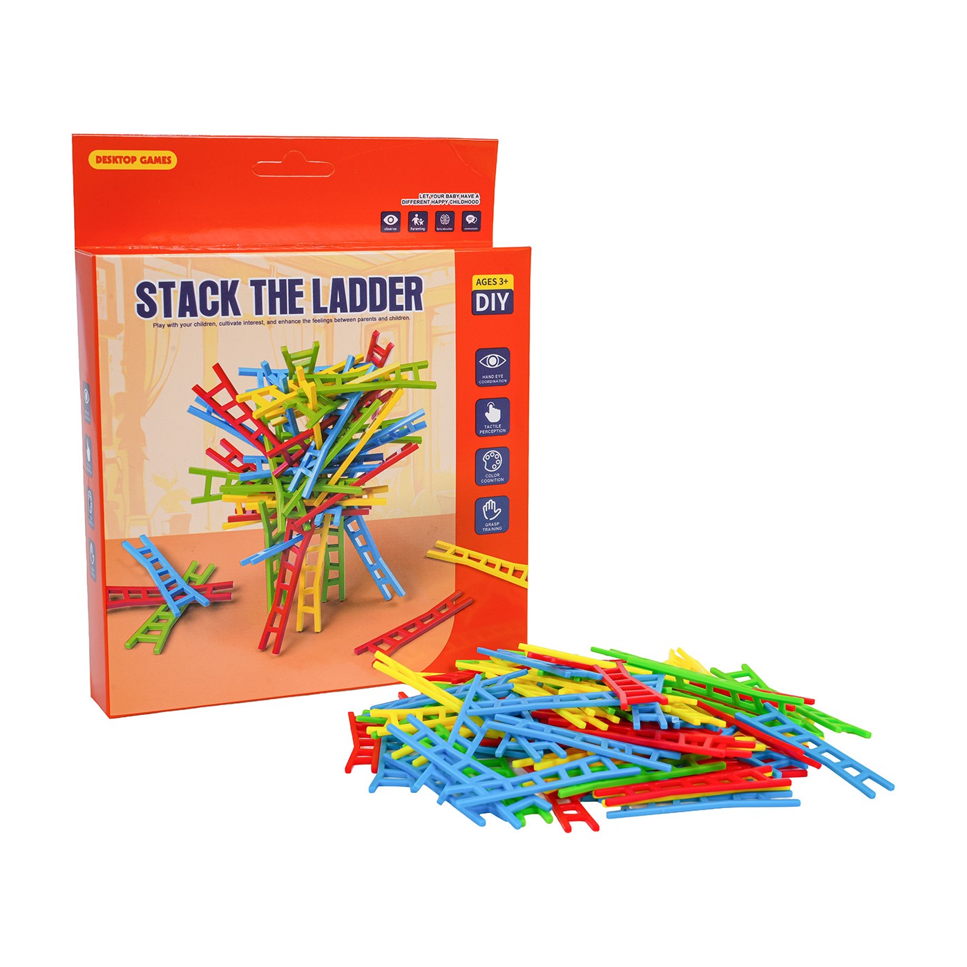 Zestaw zawiera aż 100 plastikowych drabinek w czterech intensywnych kolorach, które od razu przyciągają uwagę najmłodszych. Tworzywo wykorzystane do produkcji gry cechuje się dużą wytrzymałością, co sprawia, że elementy nie łamią się podczas zabawy. Każdy z uczestników wybiera jeden kolor drabinek i przystępuje do budowania wieży.