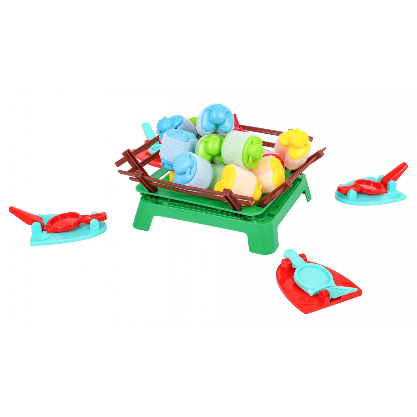 Zestaw składa się z kolorowych owieczek, wyrzutni oraz zagrody. Każdy z graczy wybiera swój kolor i próbuje kolejno „wystrzelić” owieczki w stronę celu. Figurka, która nie wpadnie do zagrody, nie jest liczona, co zachęca do doskonalenia precyzji i wyczucia siły.