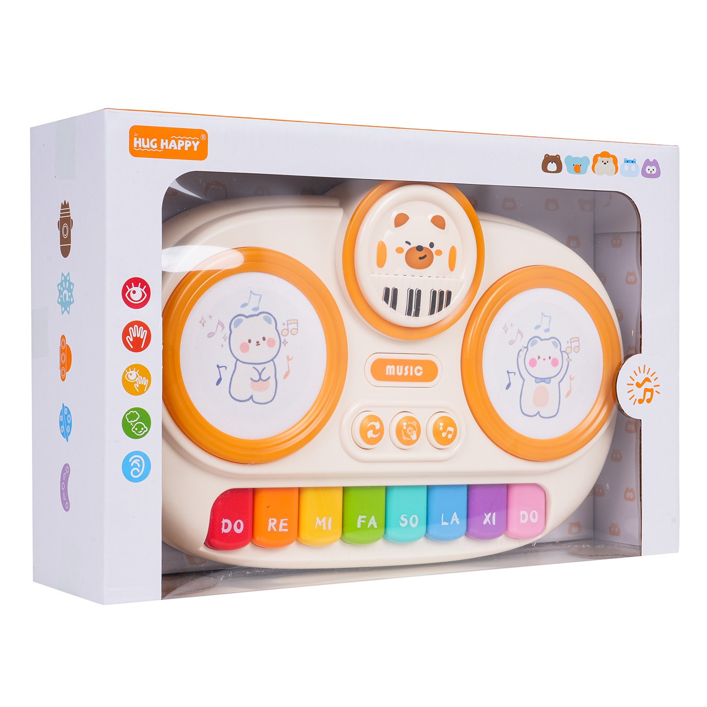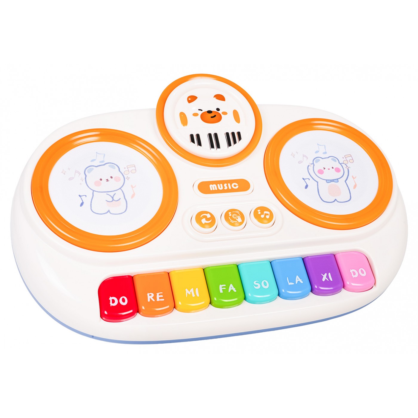 Zabawa keyboardem z perkusją wspiera rozwój słuchu muzycznego, koordynacji wzrokowo-ruchowej oraz zdolności manualnych. Dzięki różnorodnym dźwiękom i światłom stymulowane są zmysły wzroku, słuchu i dotyku.