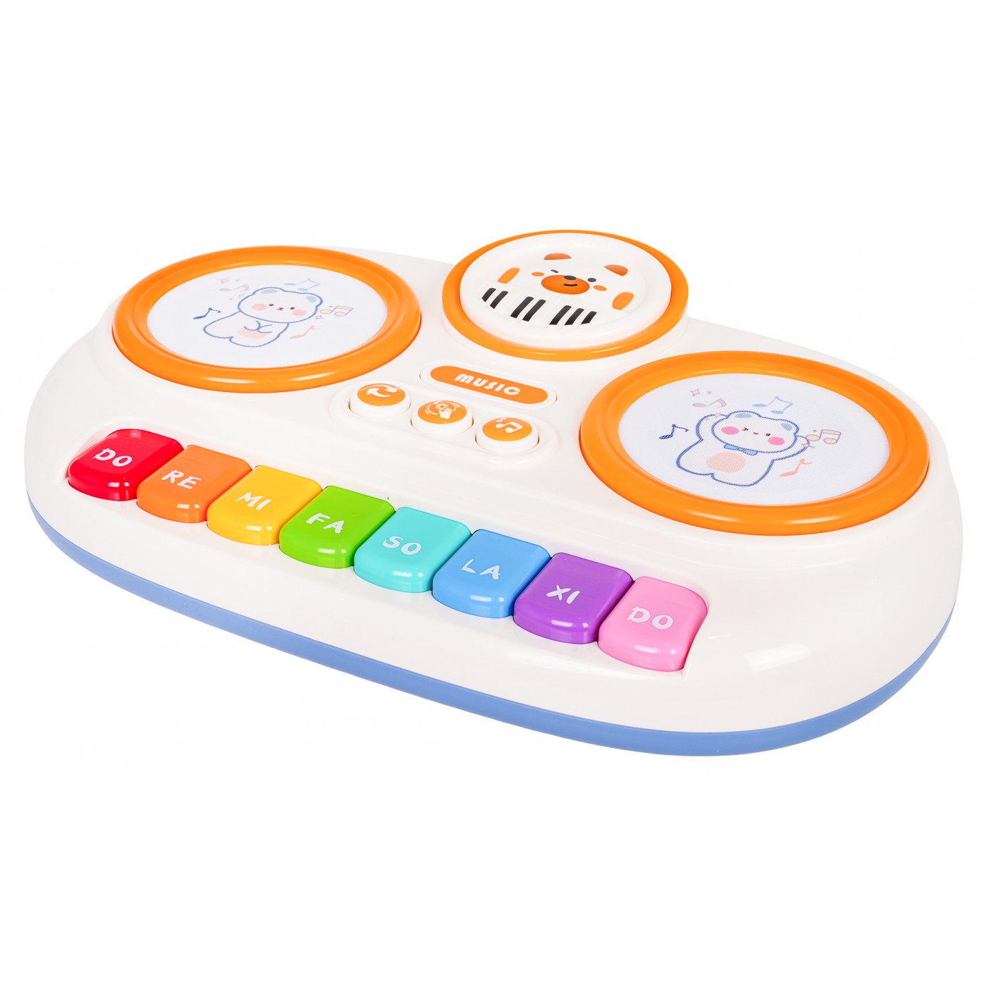 Keyboard z dotykową perkusją Misiu to muzyczna zabawka stworzona z myślą o dzieciach już od 12-go miesiąca życia. Kolorowy wygląd i przyjazny kształt misia od razu przyciągają uwagę, a różnorodne dźwięki i efekty świetlne zachęcają do odkrywania instrumentu.