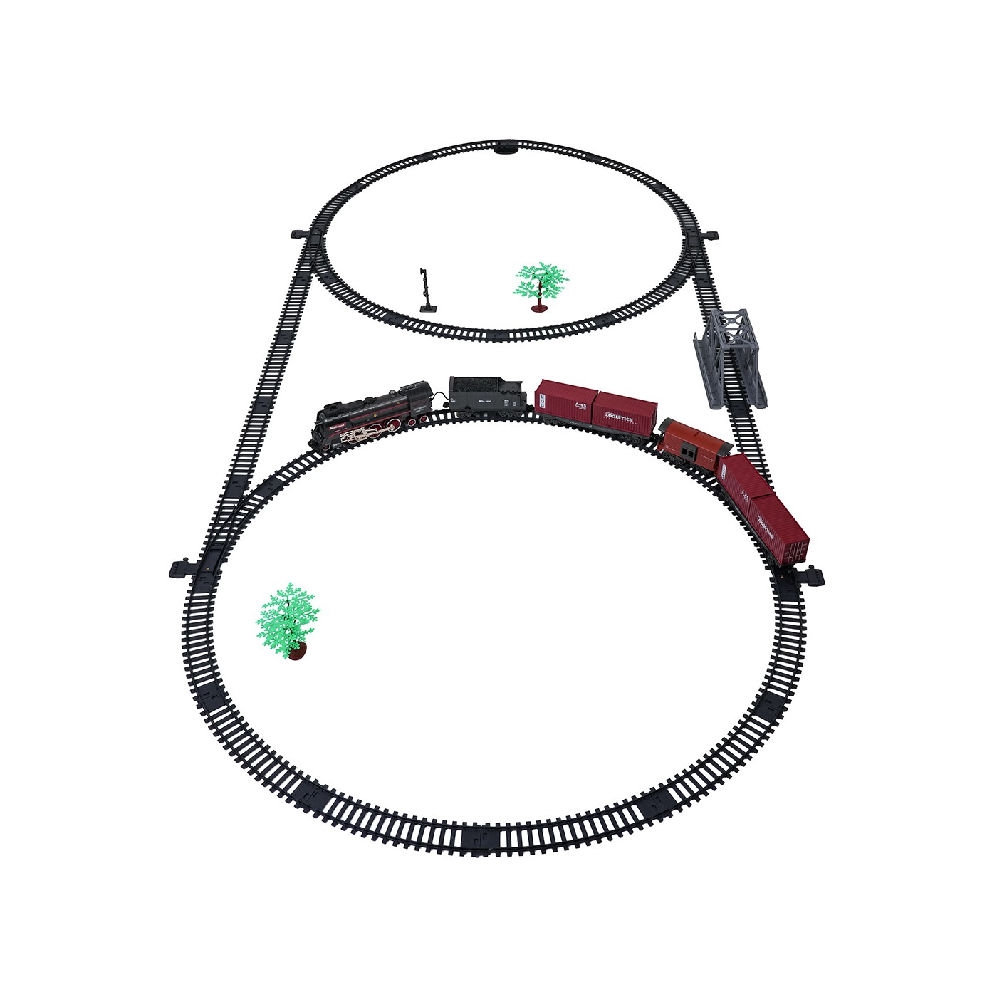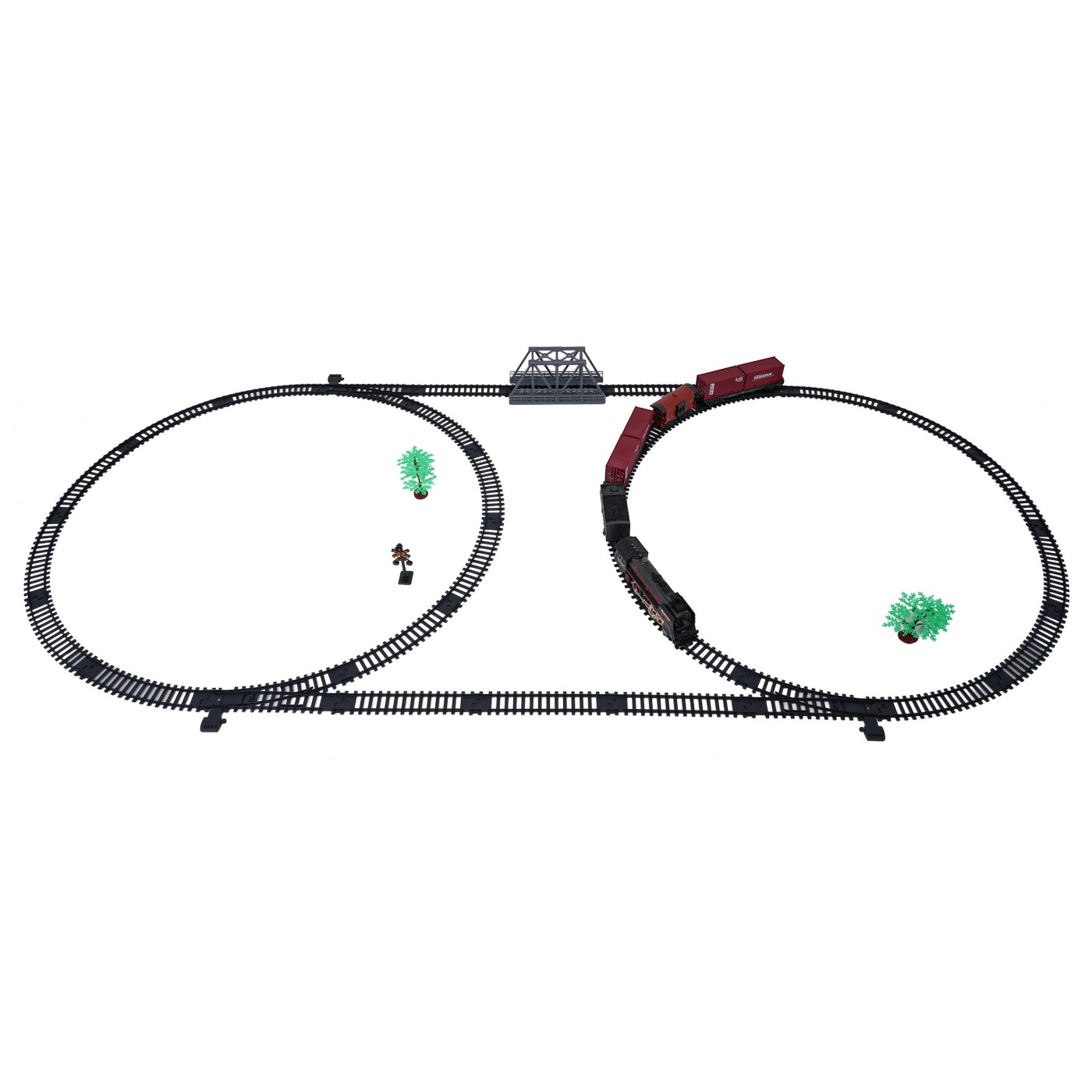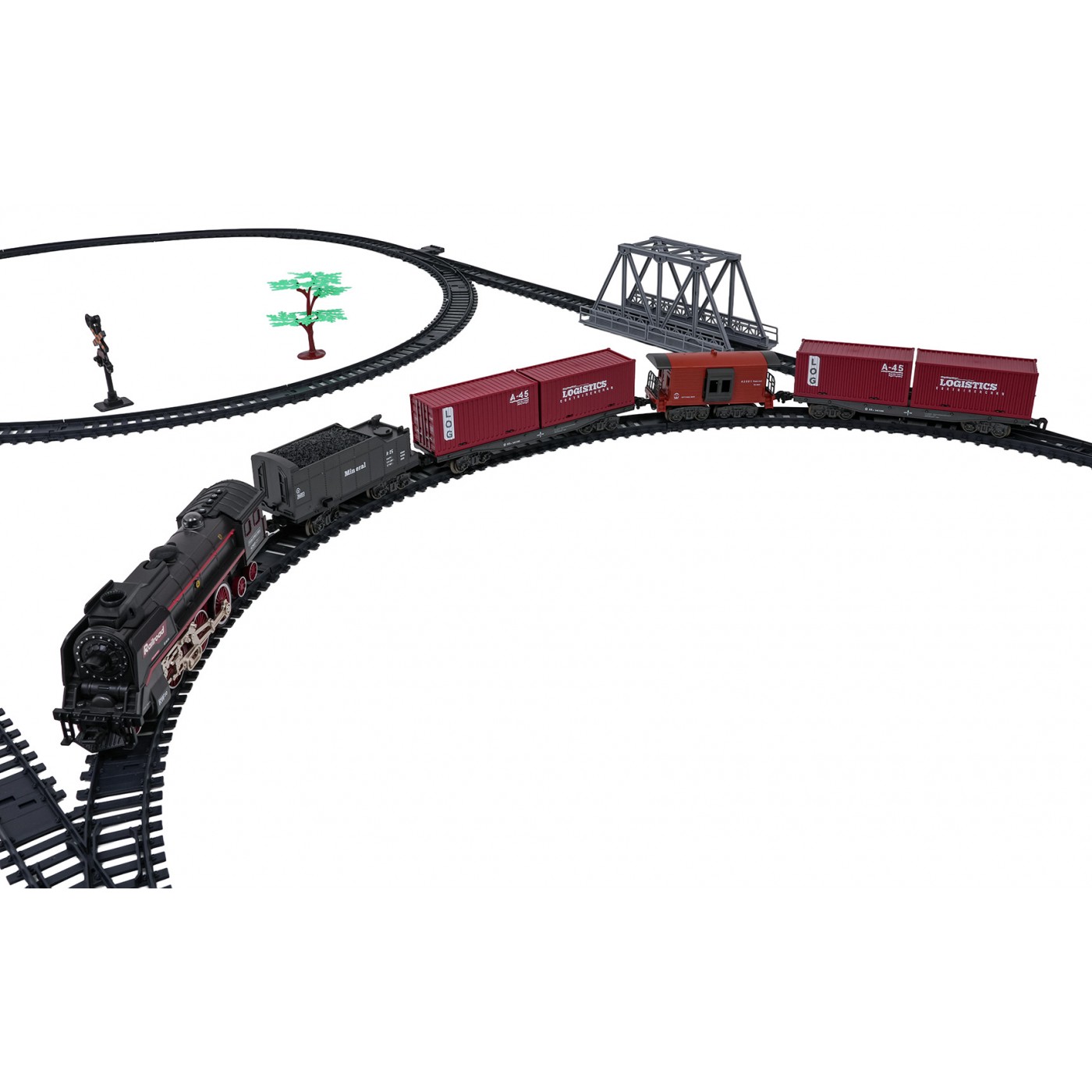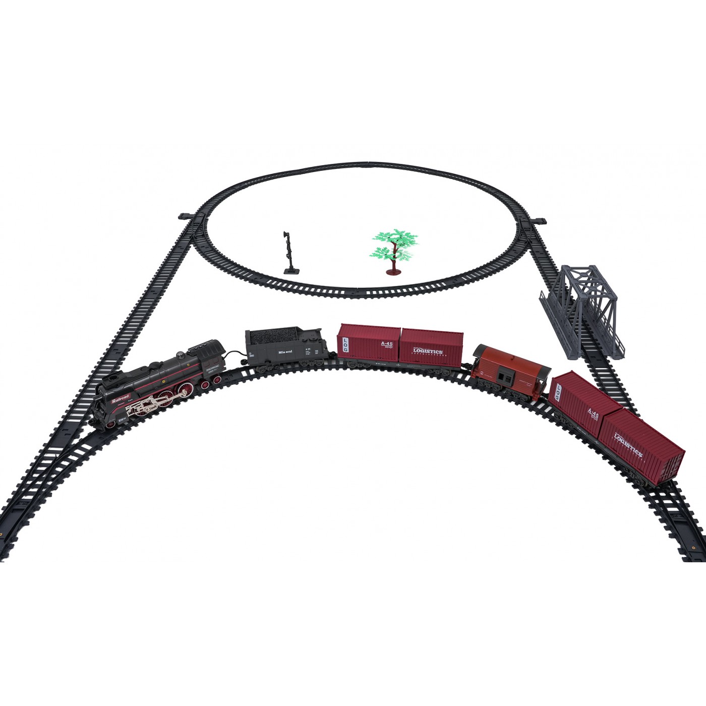 Zestaw zawiera lokomotywę z funkcją jazdy do przodu, do tyłu i zatrzymania, a także zestaw torów o łącznej długości ok. 207 cm. Wbudowany reflektor oświetla trasę, a z komina i boków lokomotywy wydobywa się efektowny dym – wystarczy uzupełnić zbiorniczek wodą za pomocą dołączonej pipetki.