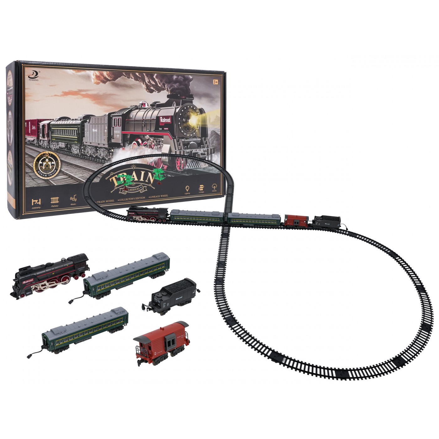 Kolejka retro z funkcją świateł, dźwięku i realistycznego dymu to wyjątkowy zestaw dla dzieci powyżej 3-go roku życia, który łączy klasykę z nowoczesną technologią. Stylizowana na parową lokomotywę, przyciąga wzrok detalami i zachwyca efektami, które doskonale oddają atmosferę dawnych podróży kolejowych. Zabawka zapewnia angażującą, interaktywną zabawę i staje się centrum domowych przygód dla małych miłośników pociągów.