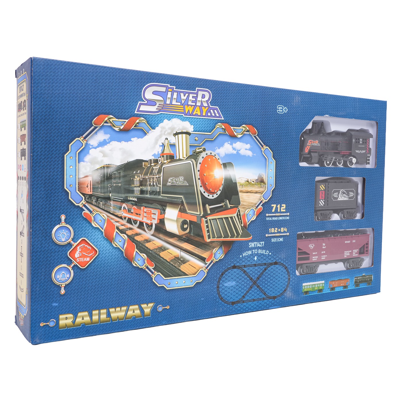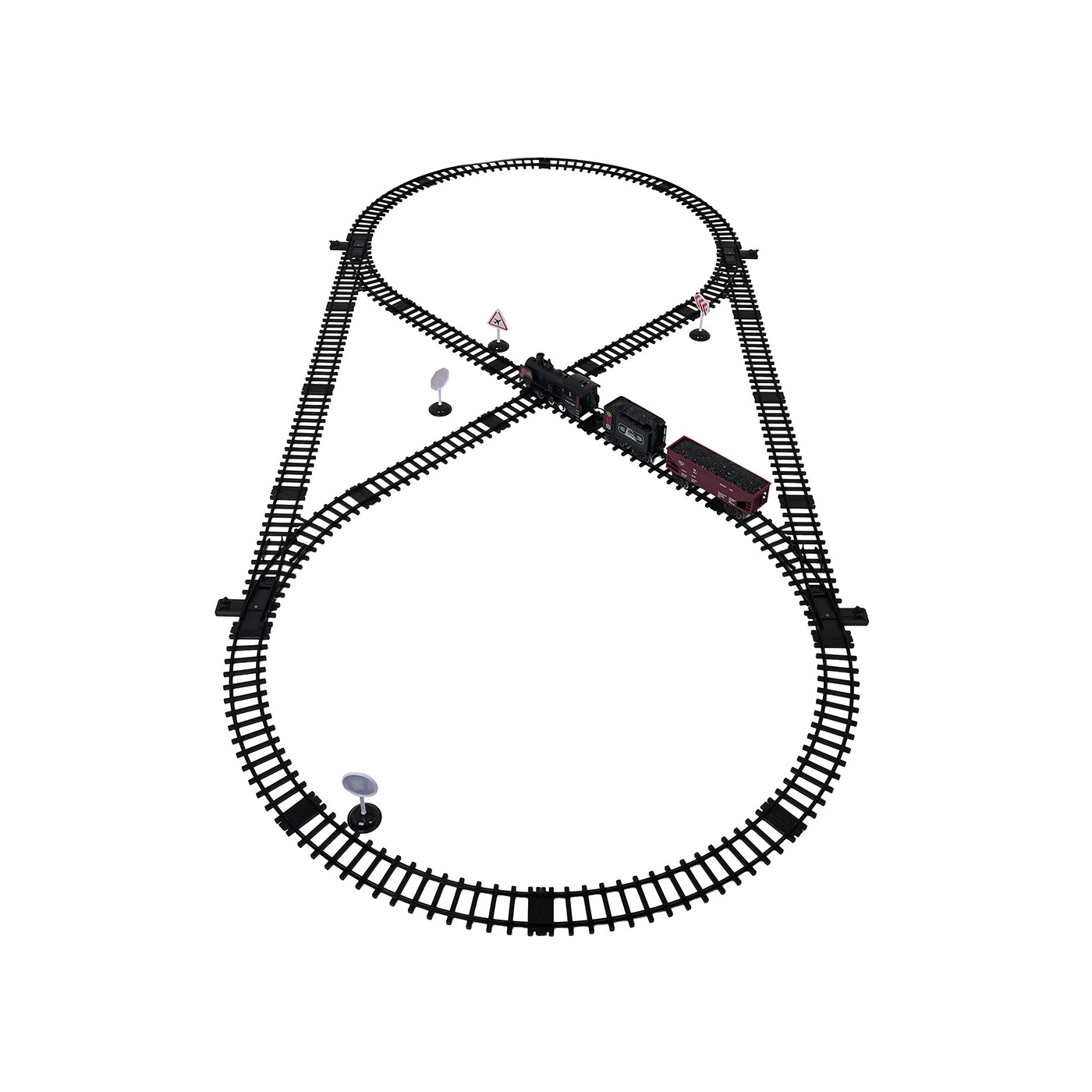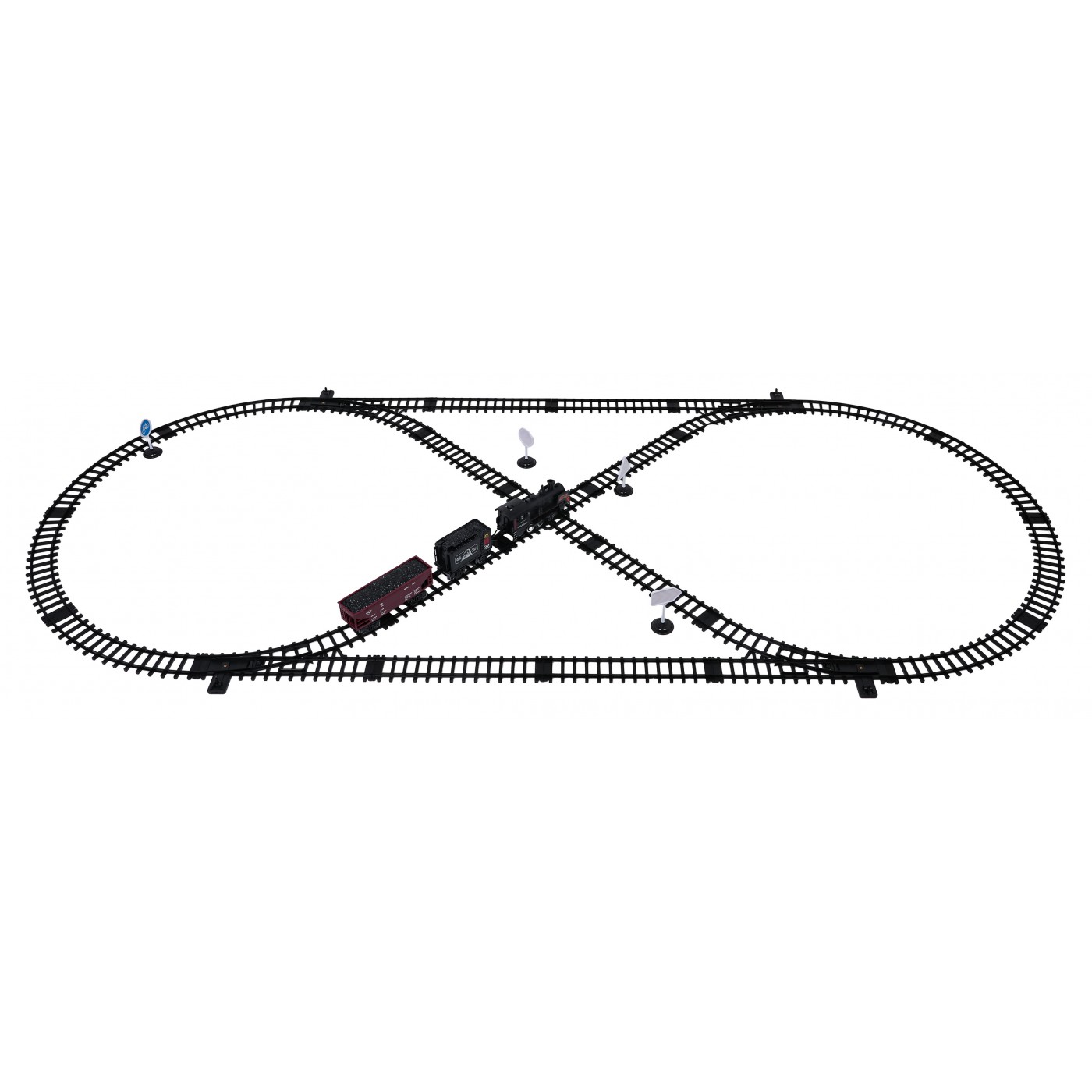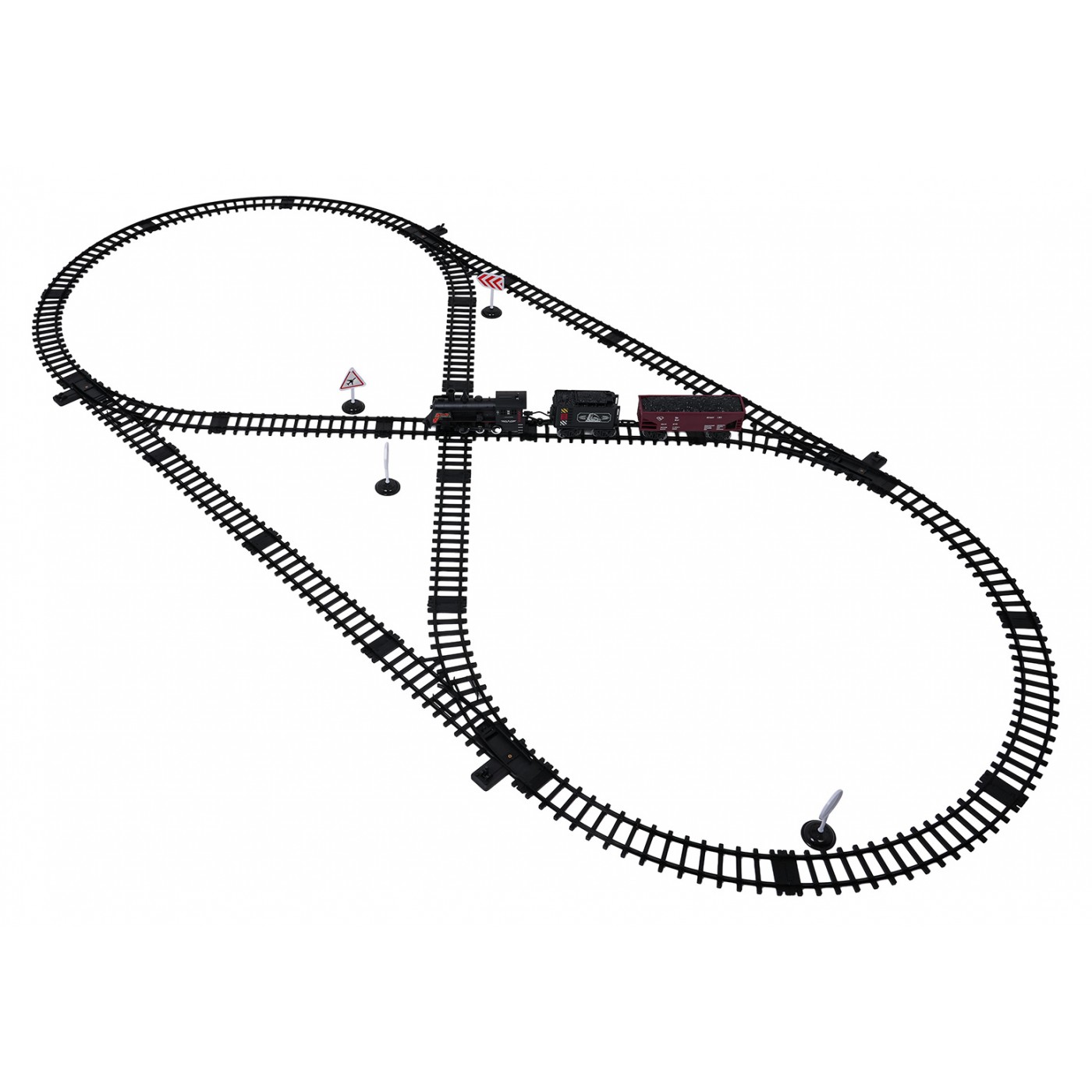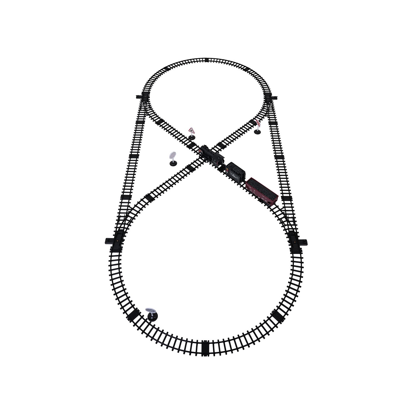 Całość została wykonana z trwałych materiałów, które zapewniają długie i bezpieczne użytkowanie. Tory są odporne na zużycie, stabilne i łatwe do złożenia dzięki prostemu systemowi łączenia. Lokomotywa porusza się do przodu, a jej działanie możliwe jest po zasileniu 4 bateriami AA (brak w zestawie).