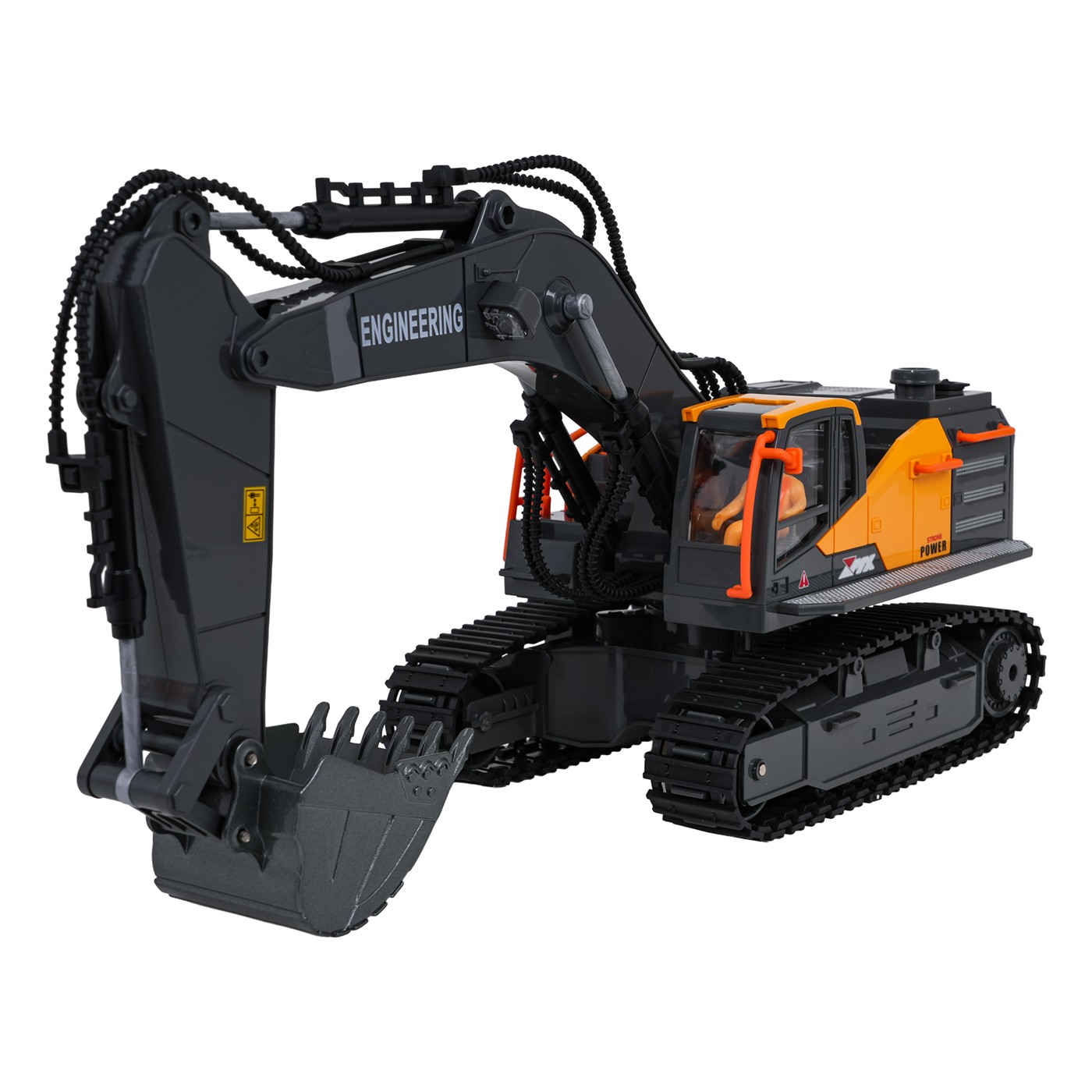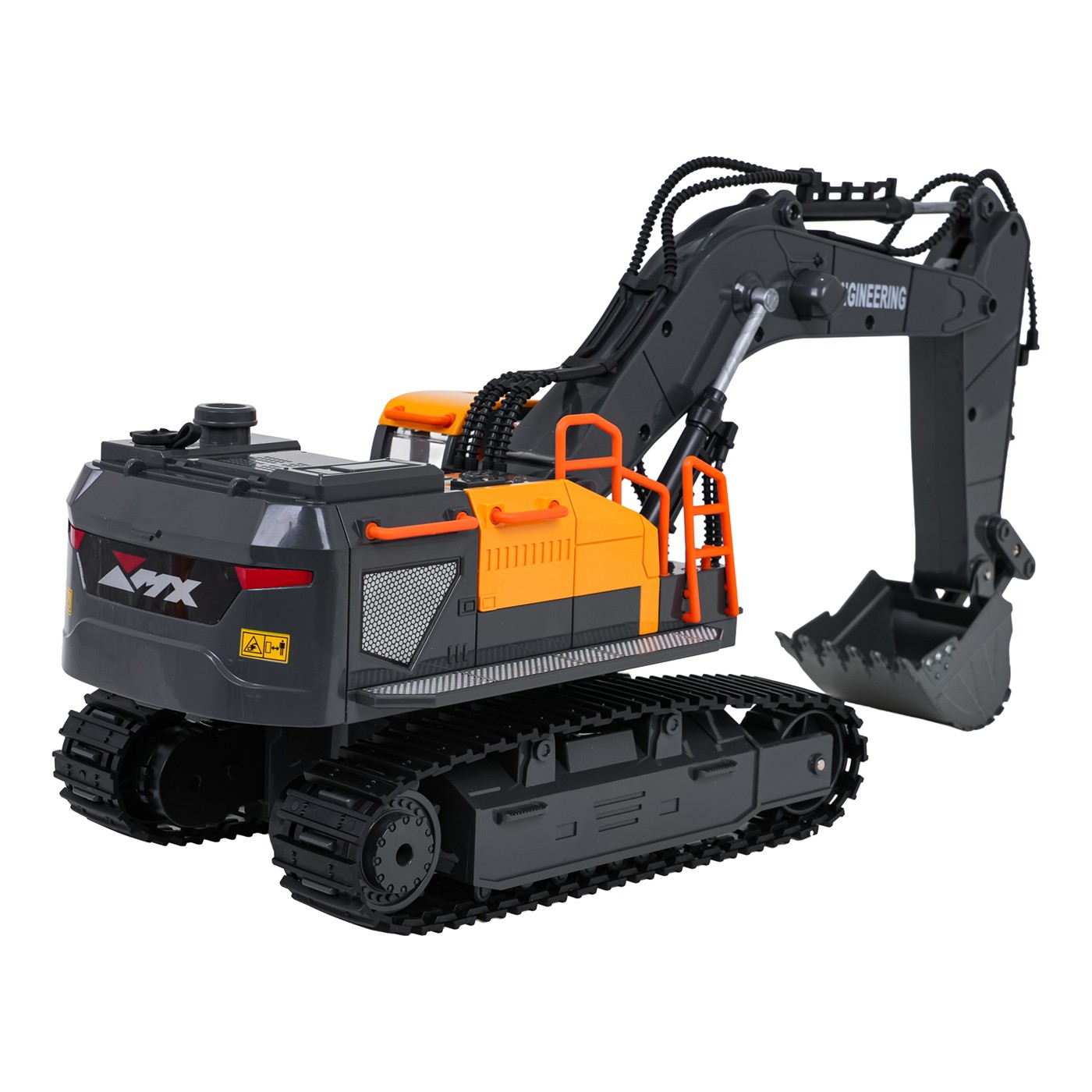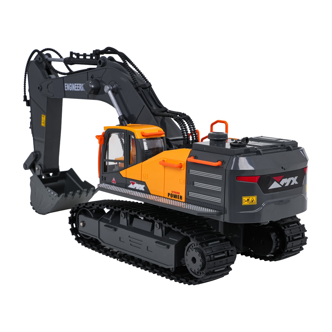 Model porusza się we wszystkich kierunkach, a jego działaniem steruje pilot 2,4 GHz, zapewniający płynną kontrolę bez zakłóceń. Koparka posiada w pełni obrotową kabinę (360 stopni), ruchome ramię oraz łyżkę, która może wykonywać manewry nabierania i wysypywania.