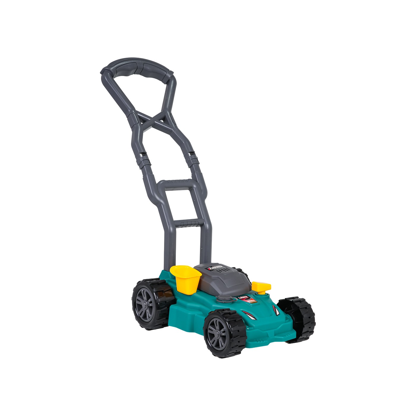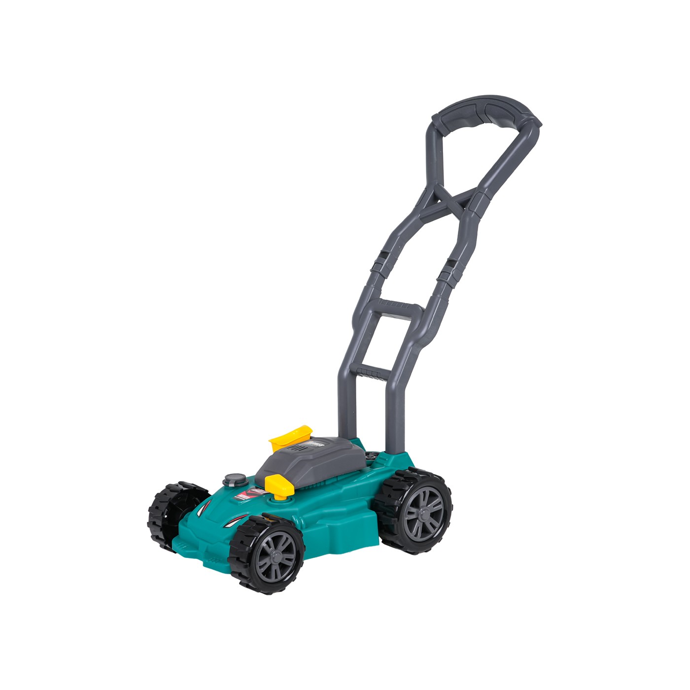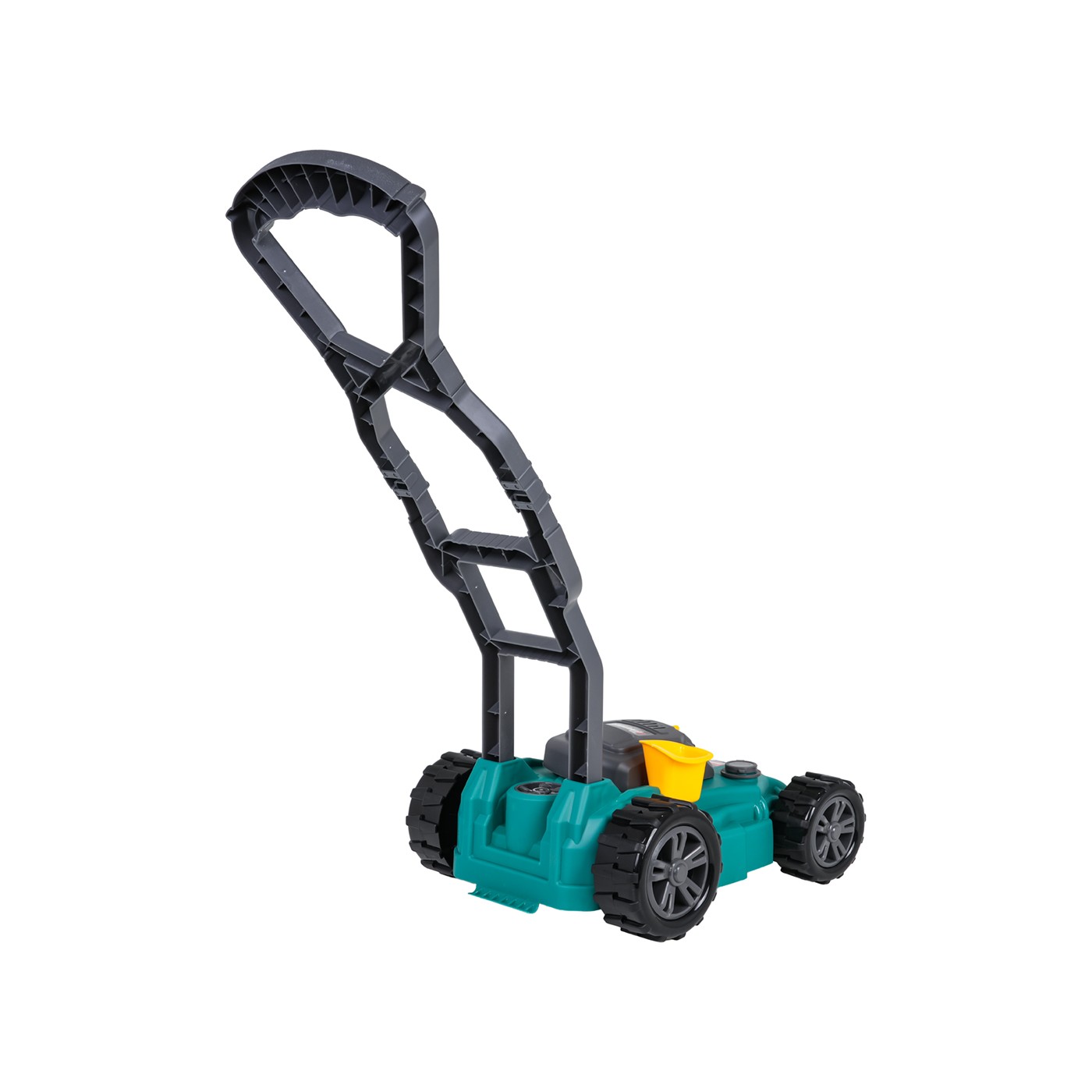 Całość została wykonana z trwałego, a jednocześnie lekkiego tworzywa sztucznego, co czyni zabawkę bezpieczną i łatwą do użytkowania nawet przez najmłodsze dzieci. Podczas zabawy kosiarka wydaje realistyczny dźwięk pracy urządzenia, a na jej górnej części migają zielone światełka, co dodaje atrakcyjności całej zabawie.