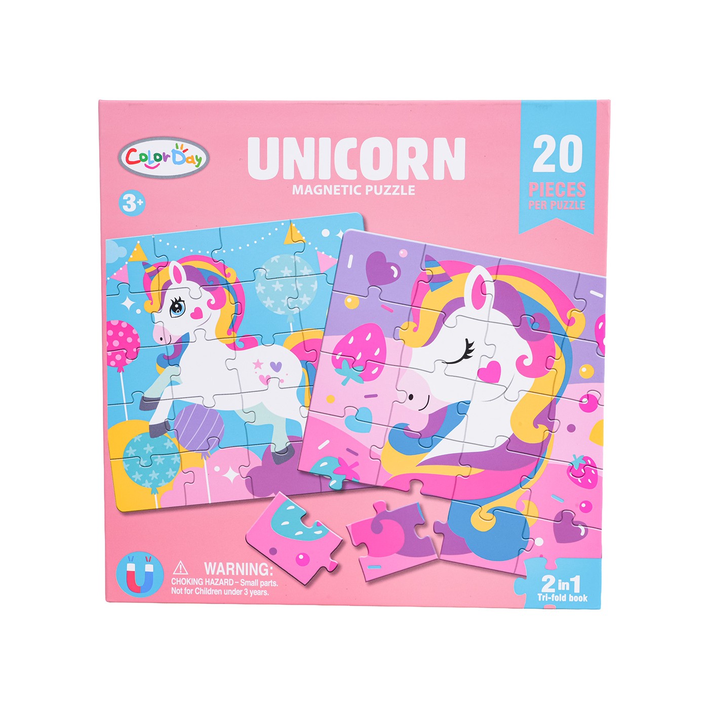 Magnetyczna książeczka z jednorożcami to kolorowa i funkcjonalna zabawka, która zachęca dzieci powyżej trzeciego roku życia do układania puzzli i tworzenia obrazków. Dzięki poręcznemu formatowi oraz magnetycznym stronom doskonale sprawdza się nie tylko w domu, ale również podczas podróży — w samochodzie, pociągu czy wózku. Motyw jednorożców oraz żywa, pastelowa kolorystyka pobudzają wyobraźnię i wprowadzają w bajkowy świat pełen fantazji.
