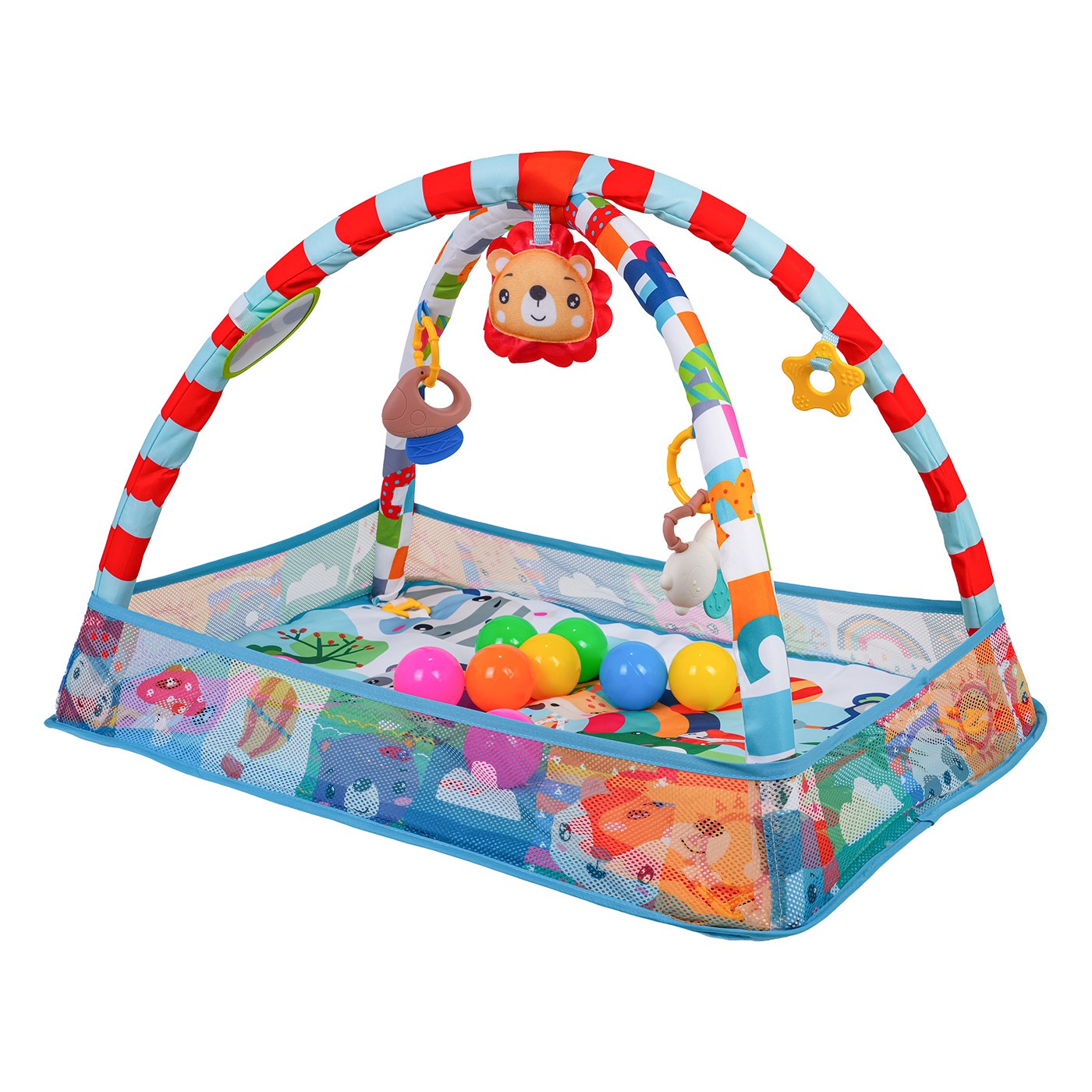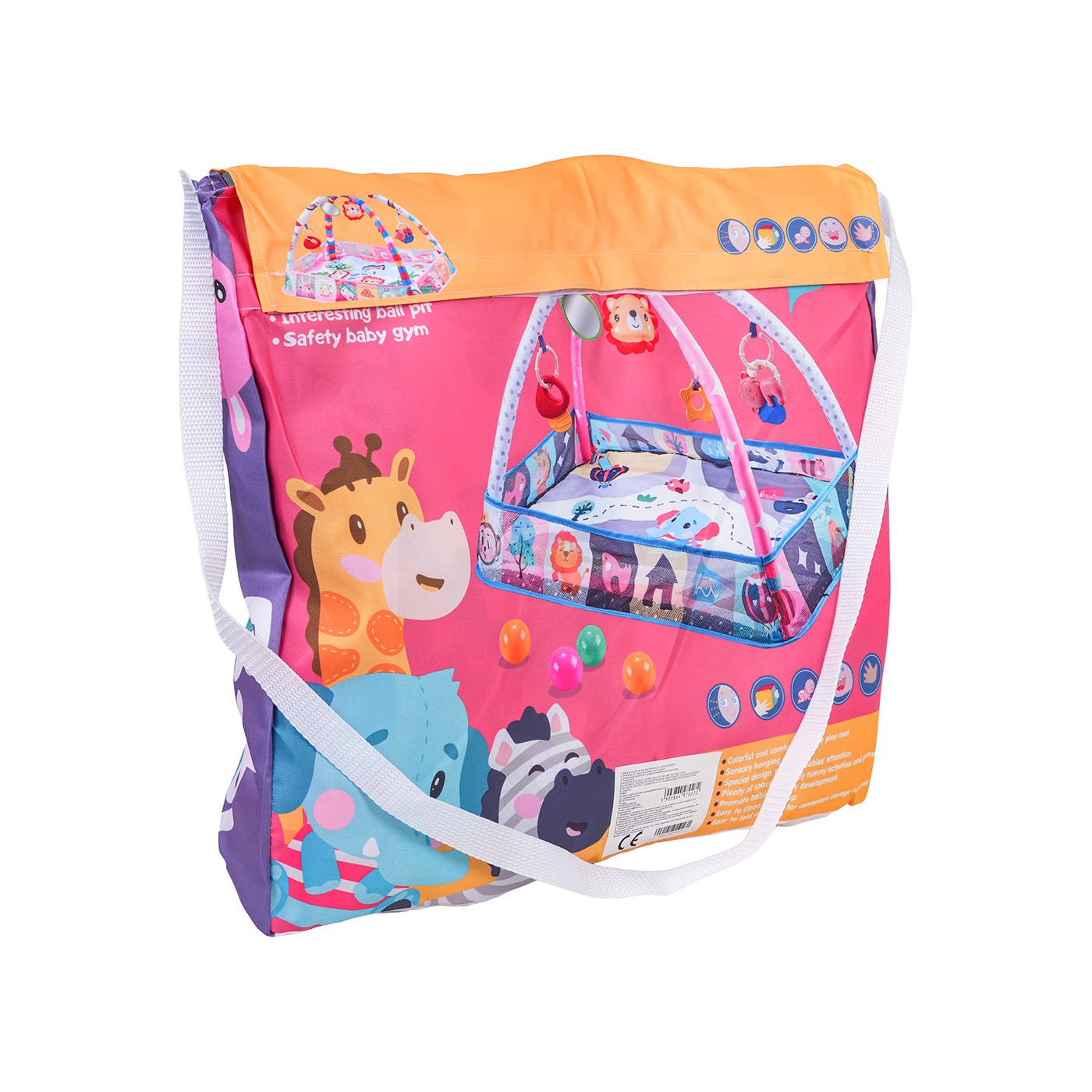 Dołączone do zestawu piłeczki pozwalają przekształcić matę w suchy basen, który dostarcza dodatkowych bodźców sensorycznych. Całość zapakowana jest w praktyczne opakowanie w formie torebki z paskiem, co ułatwia przechowywanie i transport.