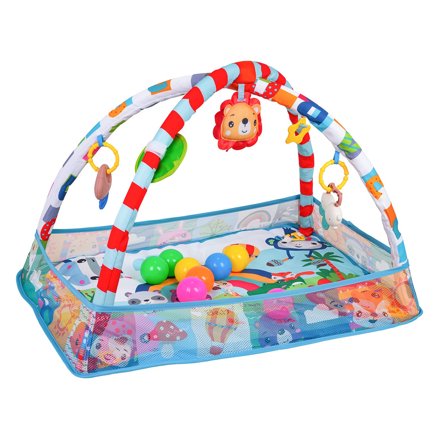 Edukacyjna mata do leżenia to wielofunkcyjny zestaw stworzony z myślą o niemowlętach już od pierwszych dni życia. Łączy w sobie funkcje leżanki, kojca i suchego basenu, tworząc przytulne i kolorowe miejsce do zabawy oraz relaksu.