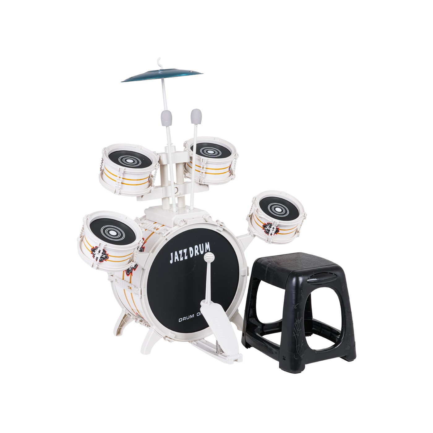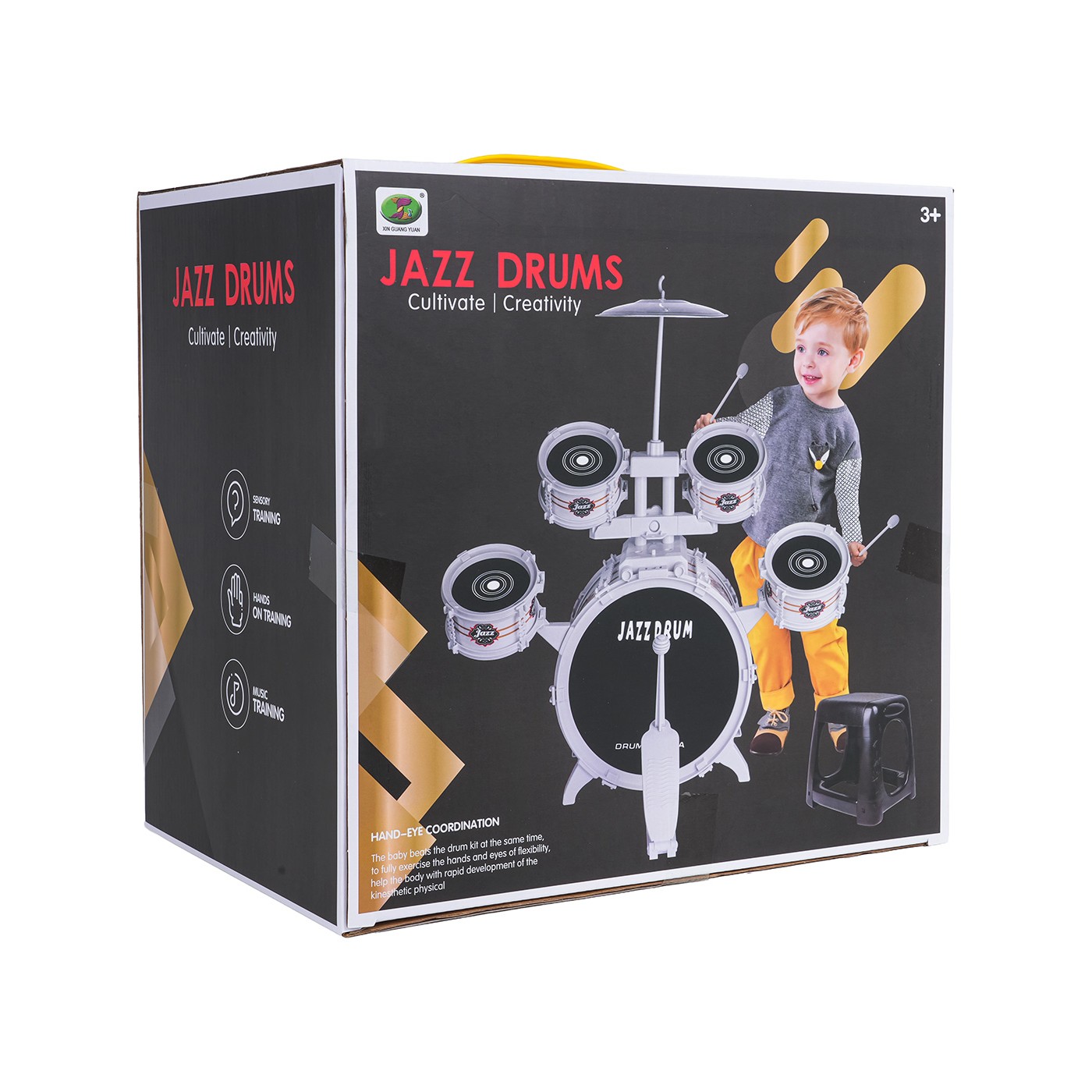 Duży zestaw 5-bębnowej perkusji ze stołkiem dla dzieci 3+