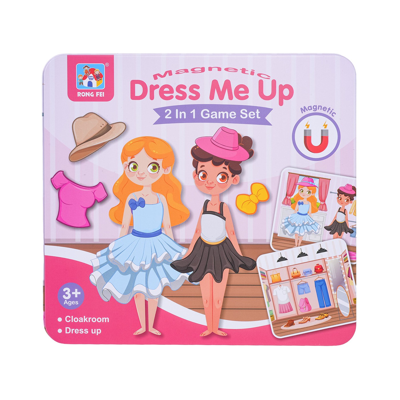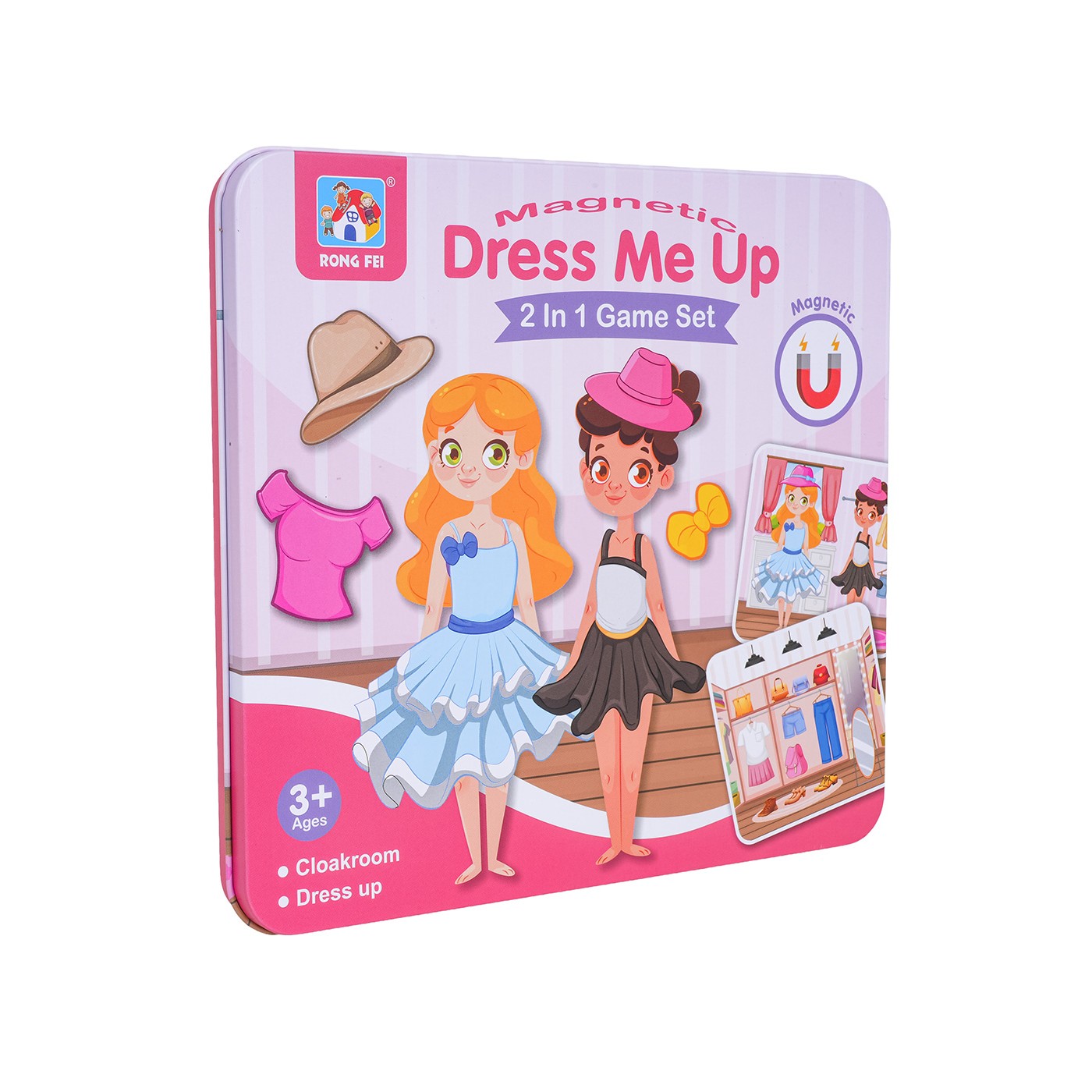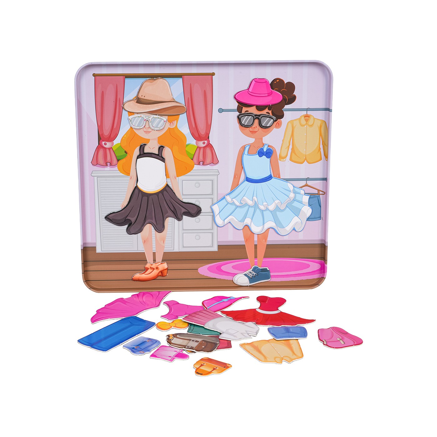 Zestaw składa się z 25 magnetycznych elementów, które można swobodnie przyczepiać do pokrywy metalowego pudełka, stanowiącej jednocześnie tło z postaciami modelek. Wszystkie części są trwałe, odpowiednio dopasowane do małych rączek i łatwe do przechowywania.