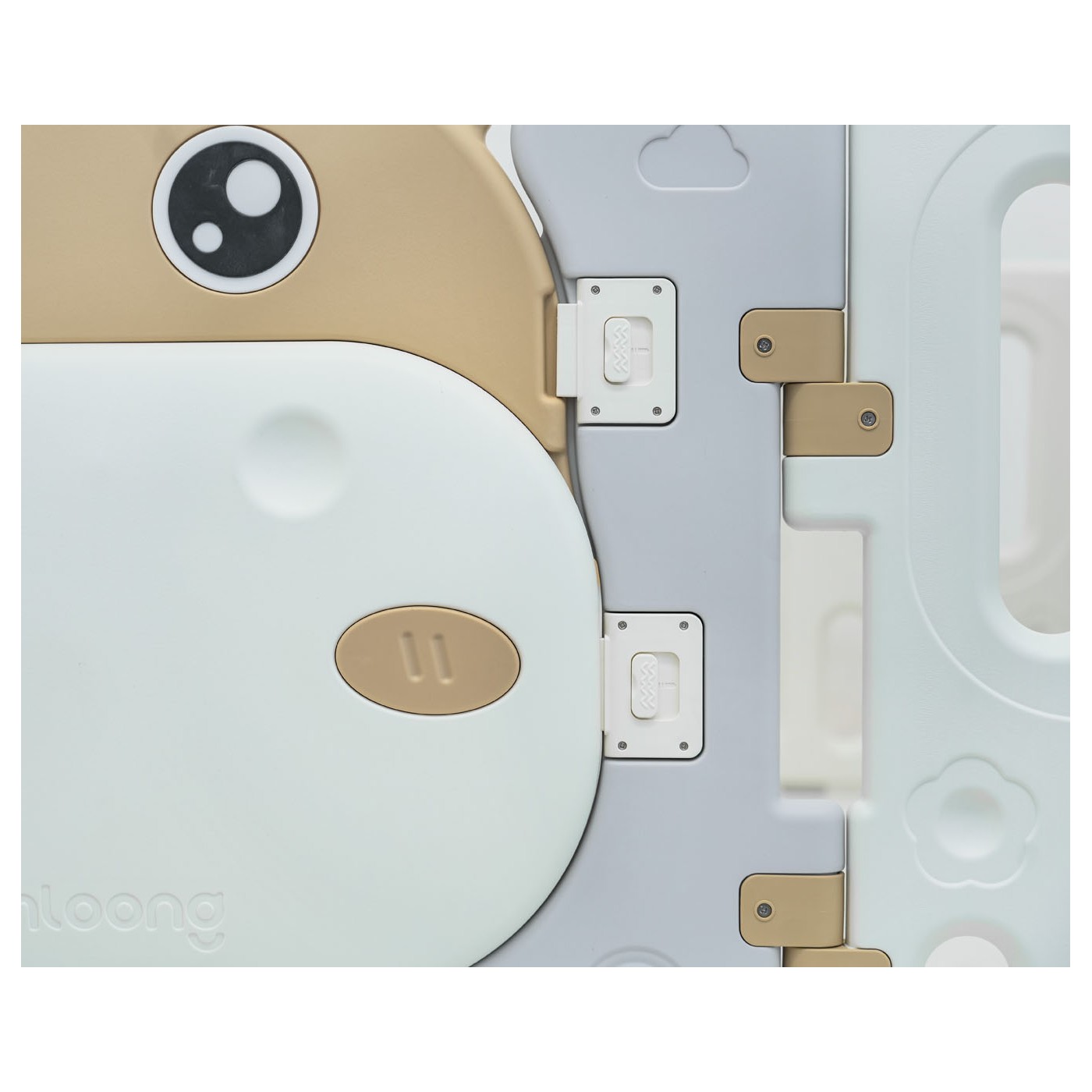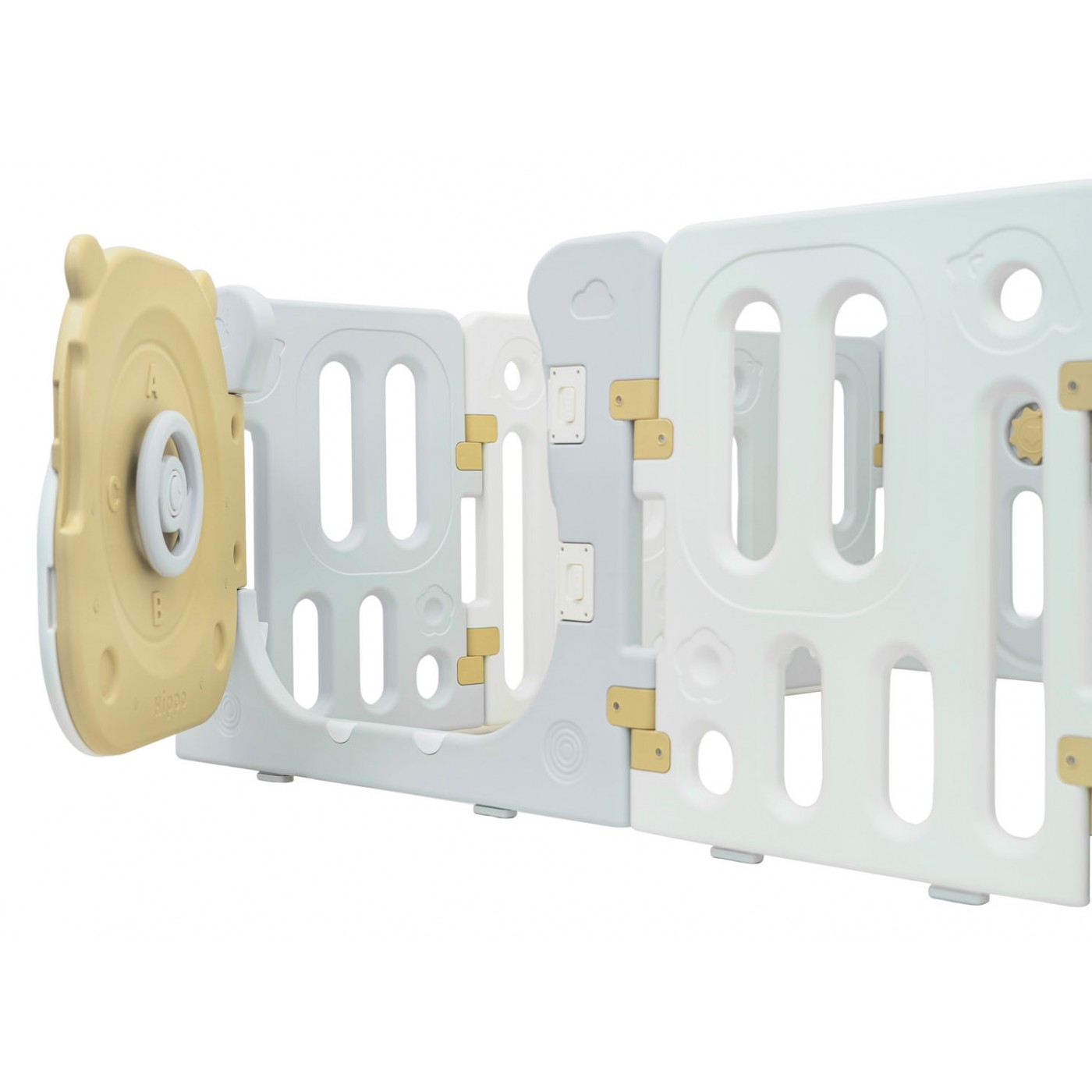 Płotek/kojec składa się z 10 elementów w kształcie paneli z otworami, które można dowolnie łączyć, tworząc przestrzeń dopasowaną do możliwości mieszkania i potrzeb dziecka. Stabilna konstrukcja, gładkie i zaokrąglone krawędzie oraz blokada drzwiczek kojca od zewnątrz sprawiają, że maluszek jest w pełni chroniony.