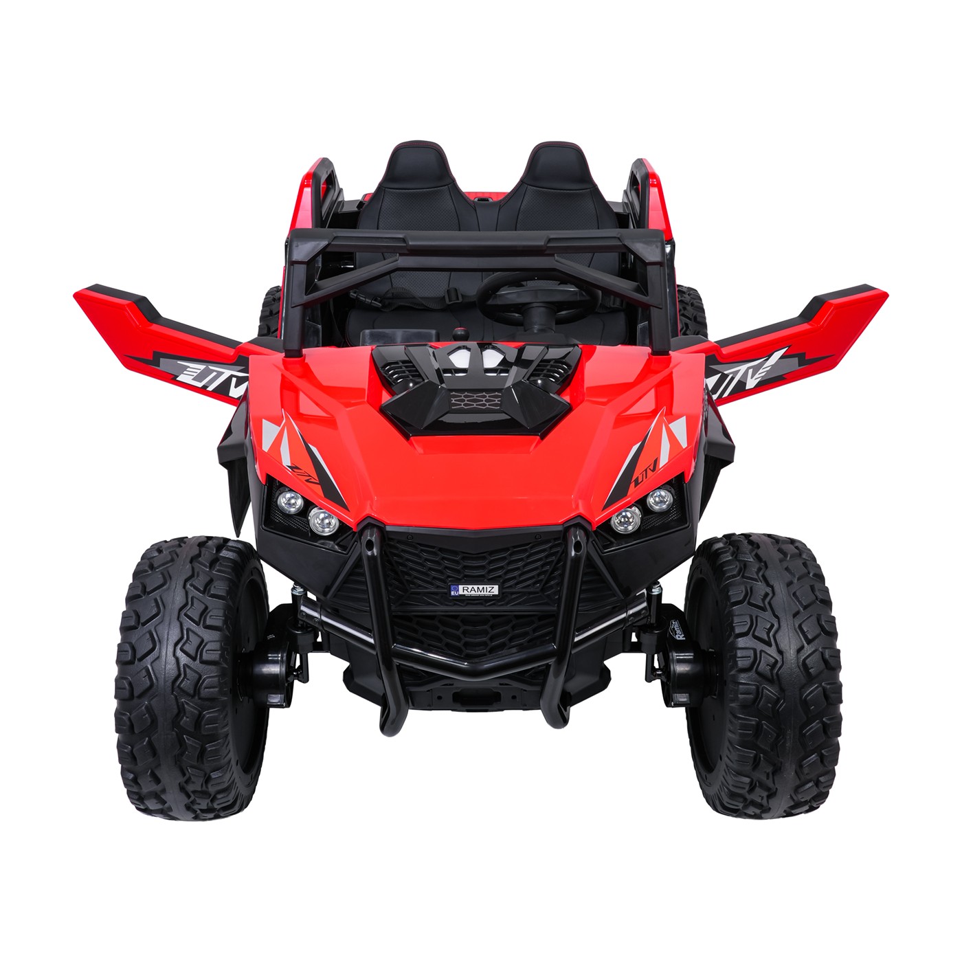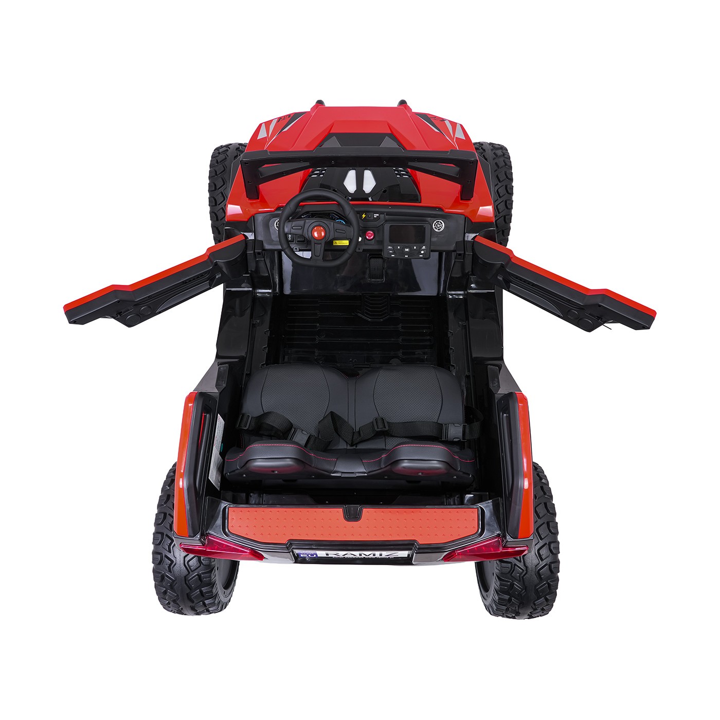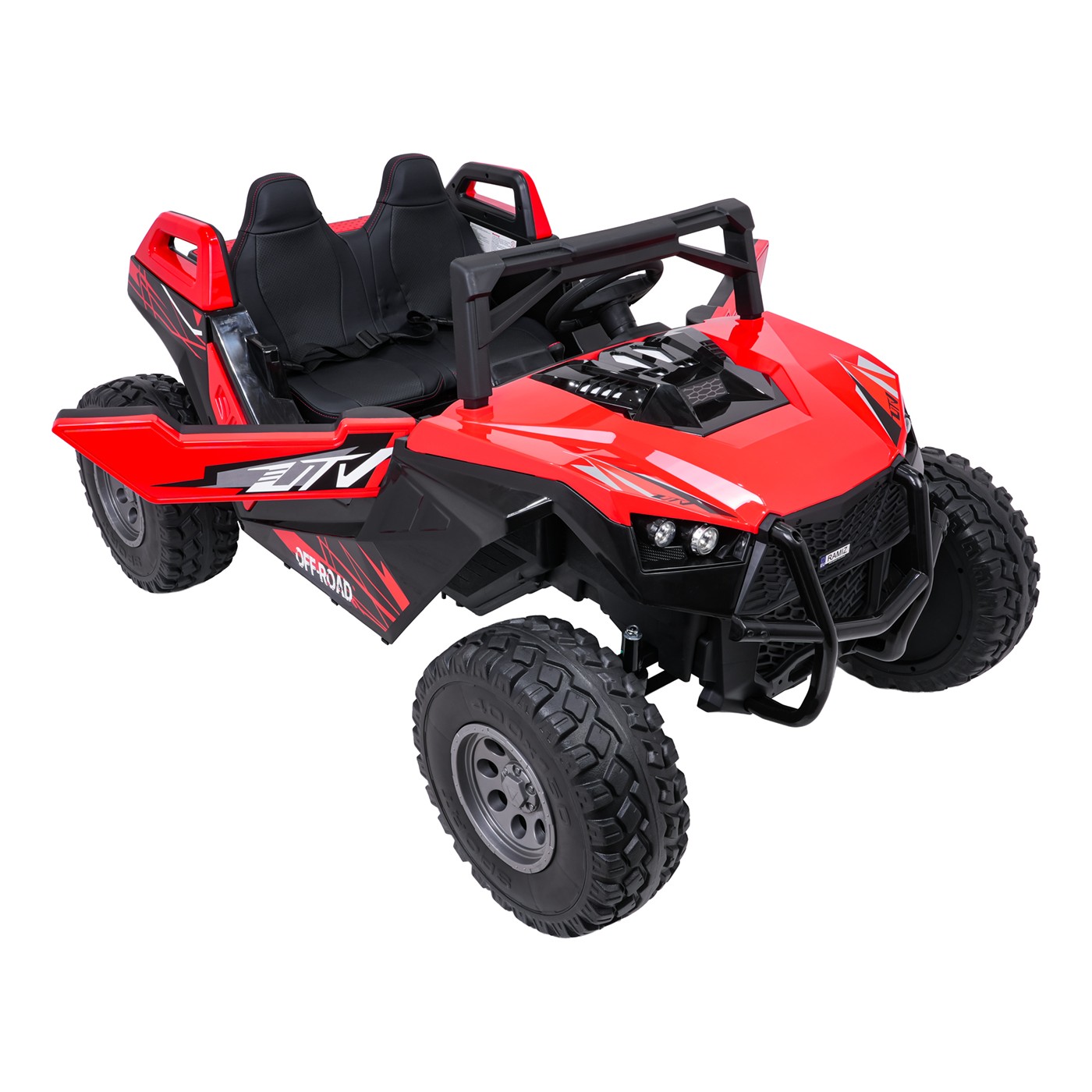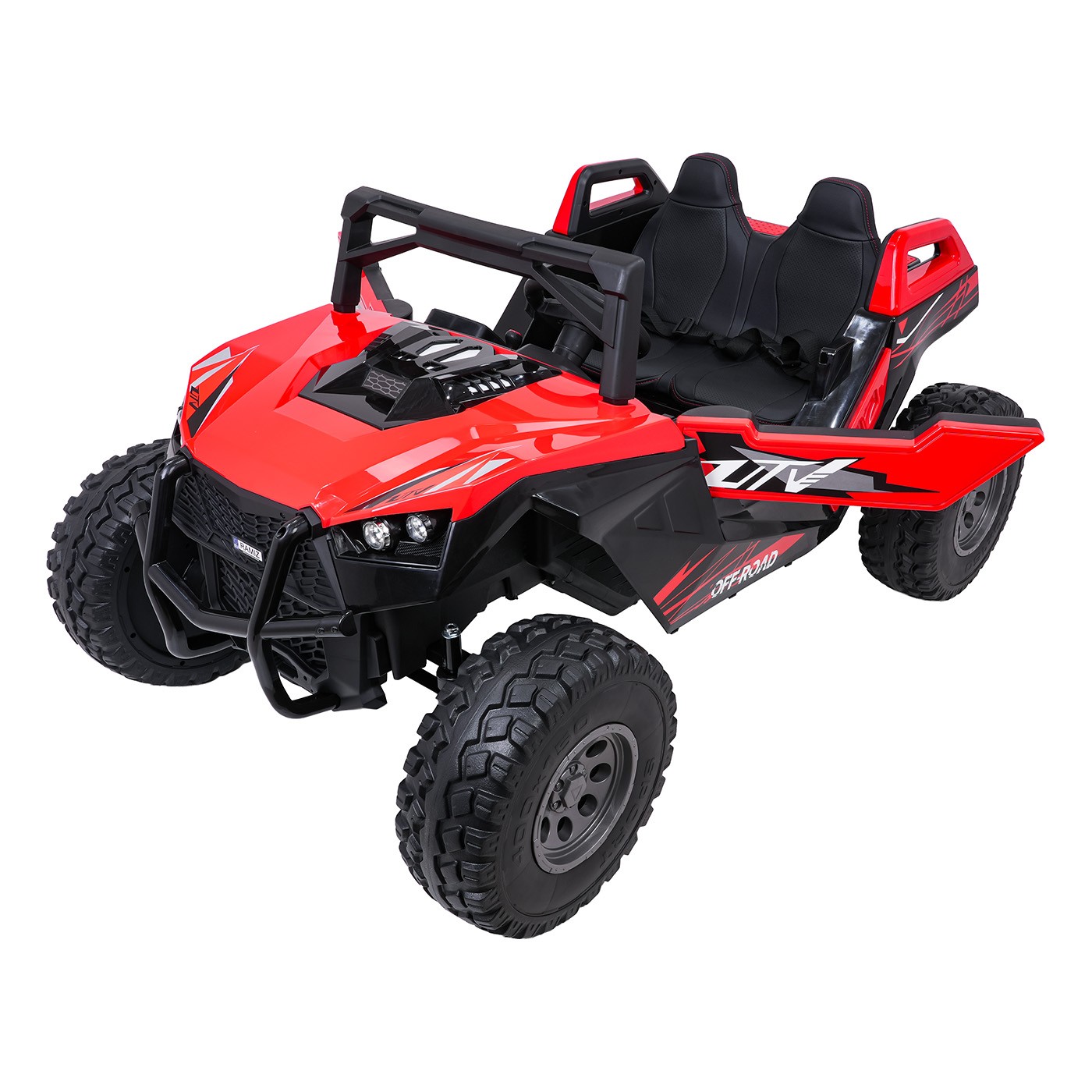 Buggy RTR Monster Speed 4x4 to pojazd na akumulator dla dzieci o masywnym, terenowym charakterze. Wnętrze wyposażone jest w 2 osobne siedzenia dla kierowcy i pasażera. Wykonane zostały z czarnej wentylowanej ekoskóry, która zapewnia komfort oraz dobrą cyrkulację powietrza w czasie jazdy.