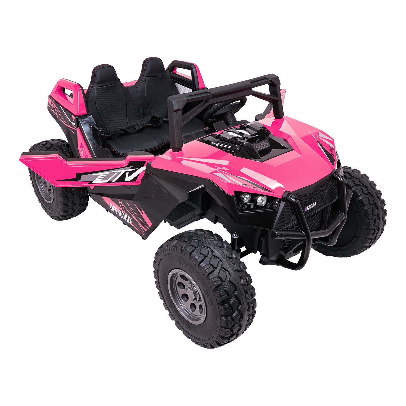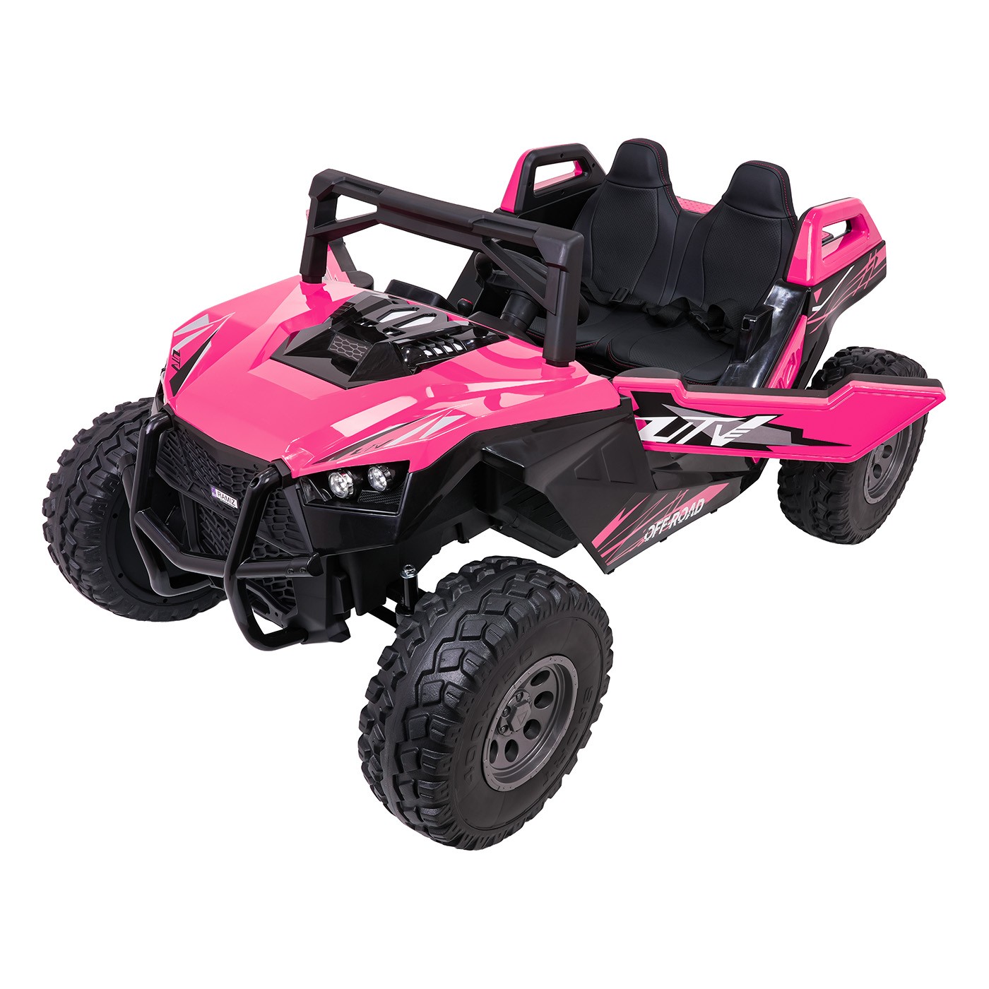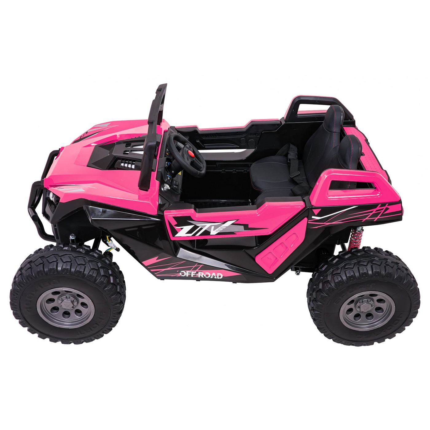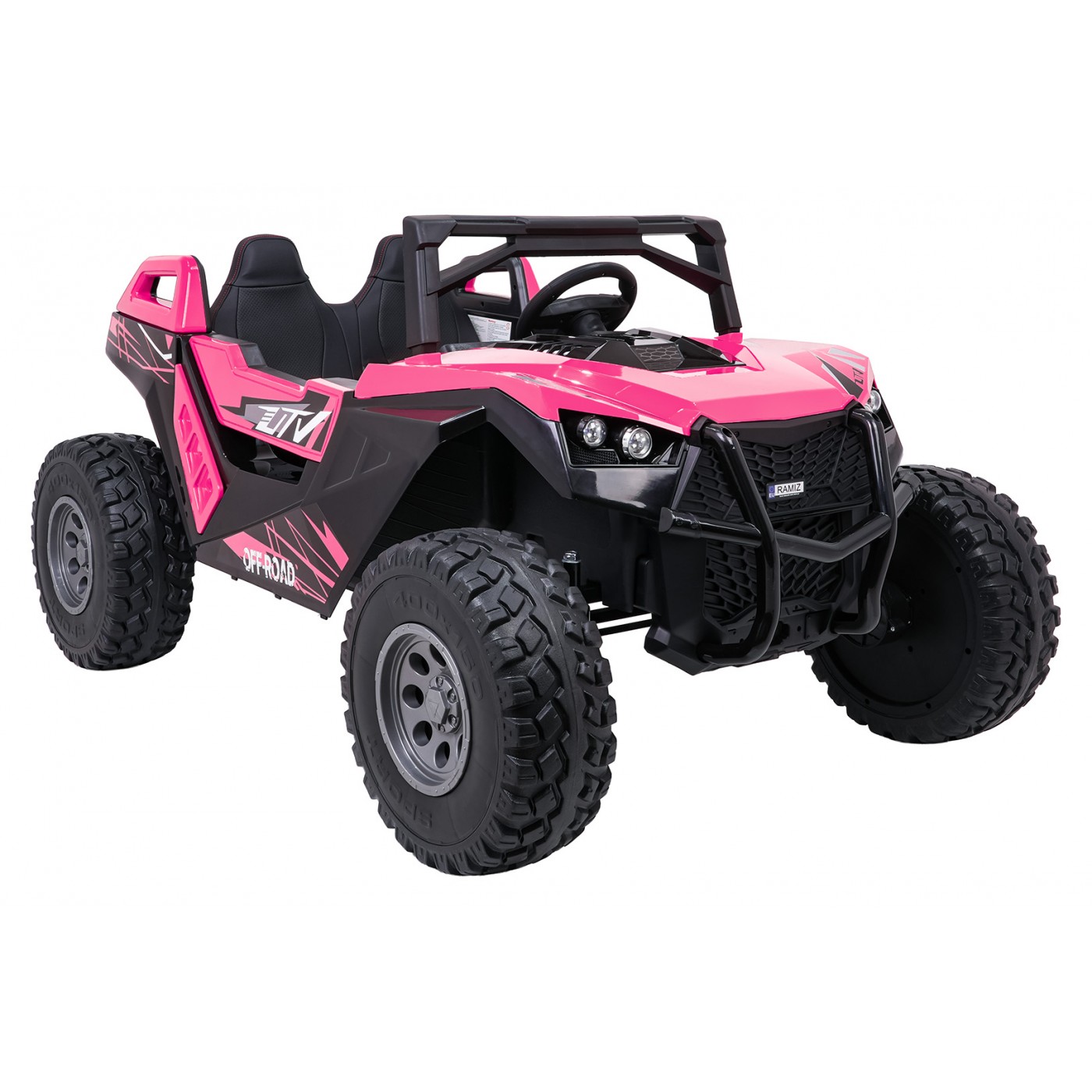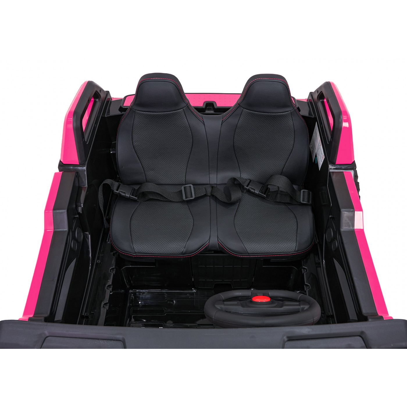 Buggy RTR Monster Speed 4x4 to pojazd na akumulator dla dzieci o masywnym, terenowym charakterze. Wnętrze wyposażone jest w 2 osobne siedzenia dla kierowcy i pasażera. Wykonane zostały z czarnej wentylowanej ekoskóry, która zapewnia komfort oraz dobrą cyrkulację powietrza w czasie jazdy.