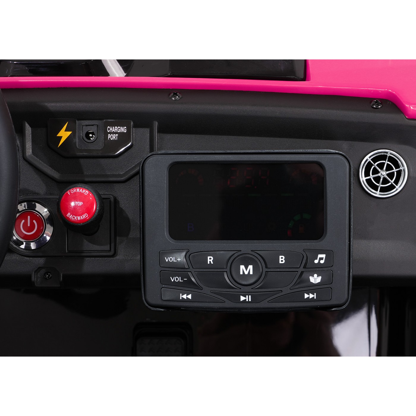Wyposażenie multimedialne w elektrycznym buggy RTR Monster Speed 4x4 obejmuje rozbudowany panel audio z radiem FM oraz wieloma opcjami podłączenia zewnętrznych źródeł dźwięku. Panel na kokpicie posiada wejście MP3, na karty SD, AUX, port USB, a także łączność Bluetooth, umożliwiającą bezprzewodowe odtwarzanie muzyki.