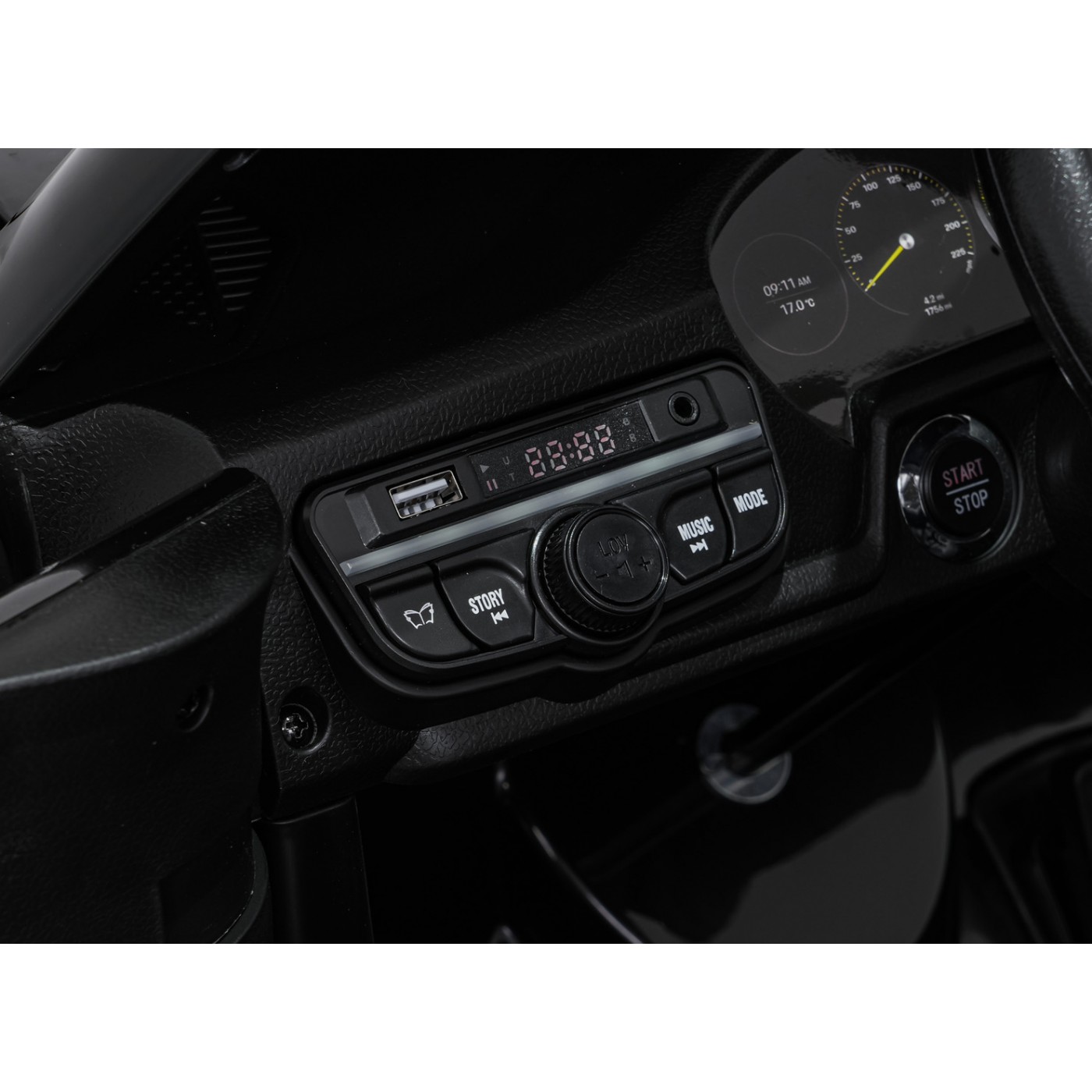 Na uwagę zasługuje nowoczesny panel audio, który czyni jazdę jeszcze bardziej atrakcyjną. Auto oferuje radio FM, wejścia MP3, AUX i USB, a także połączenie Bluetooth, co pozwala odtwarzać ulubioną muzykę dziecka bezpośrednio z telefonu lub innych urządzeń. W kierownicy znajdują się przyciski dźwięków i klaksonu, a także wgrane melodyjki, które umilają czas spędzony za kierownicą.