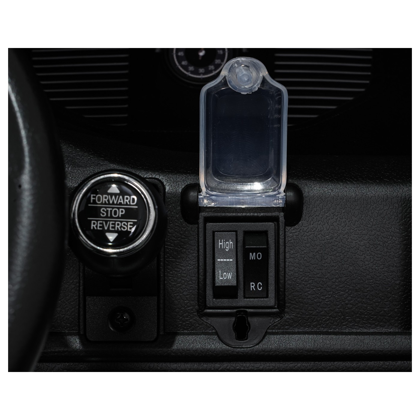 W kokpicie znajduje się przełącznik umożliwiający ustawienie 2 prędkości jazdy, co pozwala dopasować dynamikę do wieku i umiejętności dziecka. Model został wyposażony także w efektowne LED-owe światła przednie i tylne, a osobny włącznik oświetlenia umożliwia ich łatwe sterowanie.