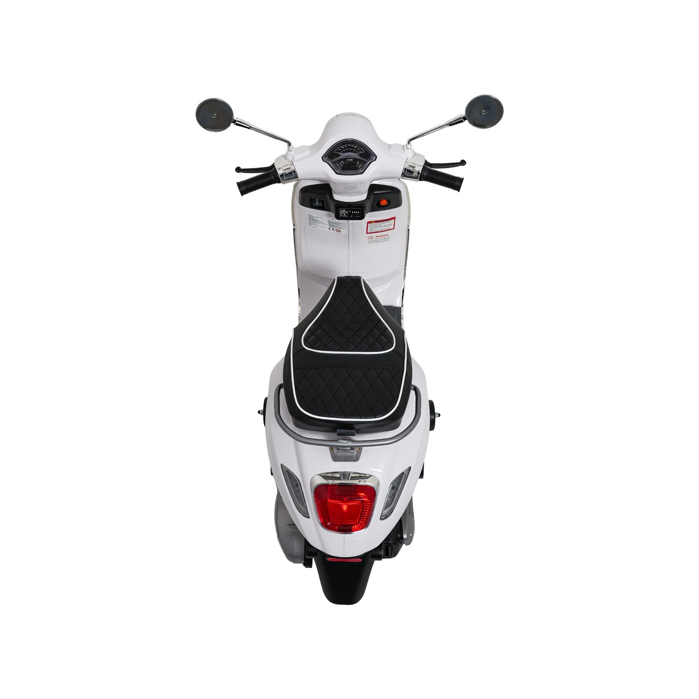 Vespa ROMA to stylowy i kultowy skuter na akumulator stworzony z myślą o najmłodszych kierowcach — łączy klasyczną linię znanej włoskiej marki, z funkcjami dopasowanymi do zabawy i nauki samodzielnej jazdy. Ergonomiczne, pojedyncze siedzenie obite elegancką ekoskórą gwarantuje wygodę podczas krótszych i dłuższych przejażdżek.