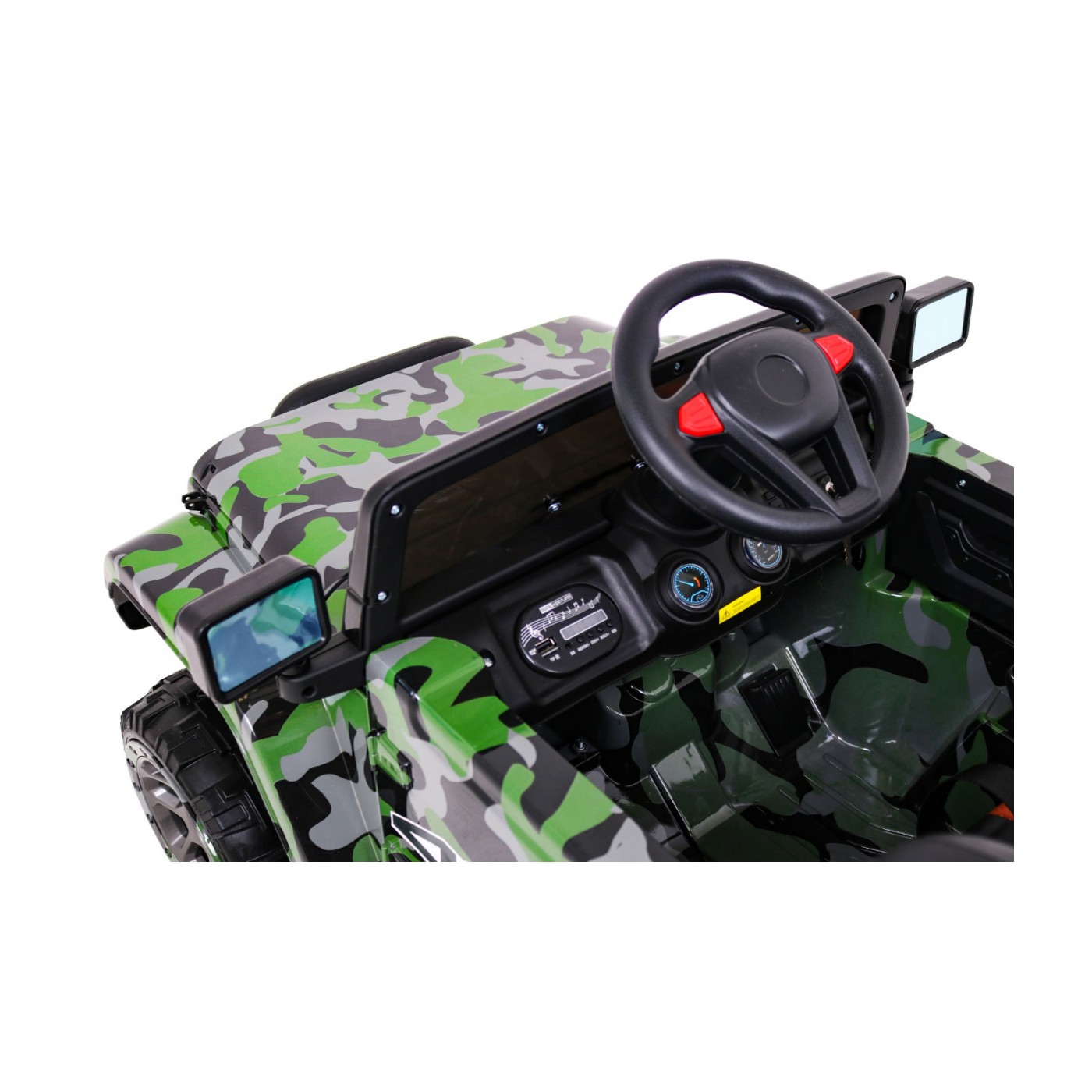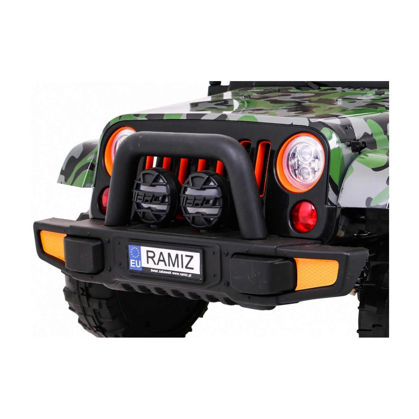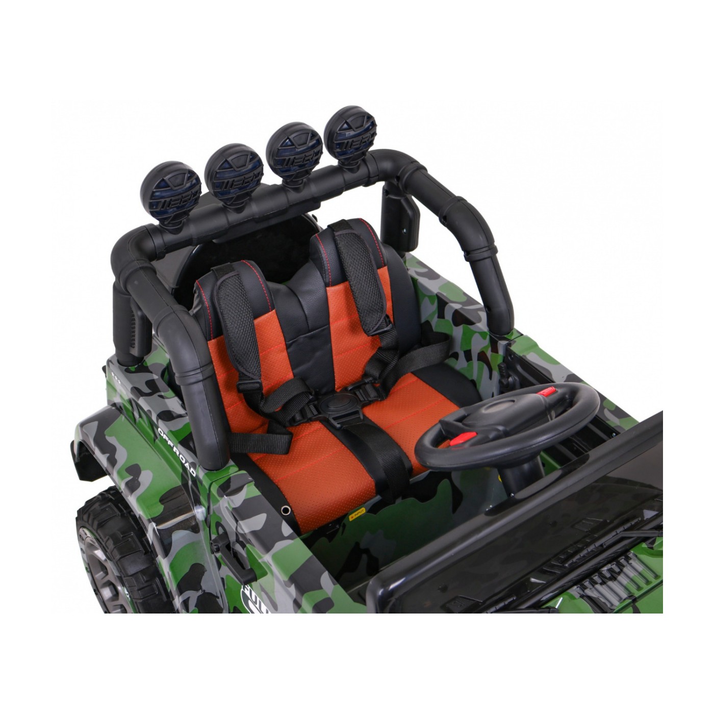 Przedstawiana terenówka jest pełna interaktywnych atrakcji, które sprawiają, że jazda staje się jeszcze bardziej ekscytująca. Światła LED na przednich i tylnych lampach dodają realizmu, a panel audio umożliwia odtwarzanie ulubionej muzyki za pomocą wejścia MP3, karty SD, USB lub AUX.