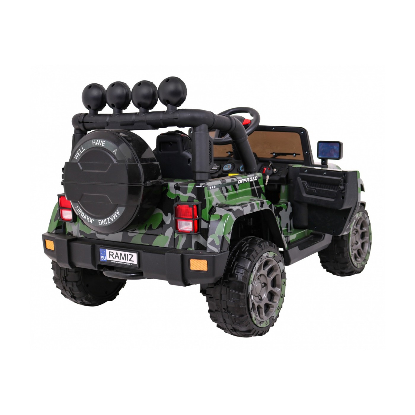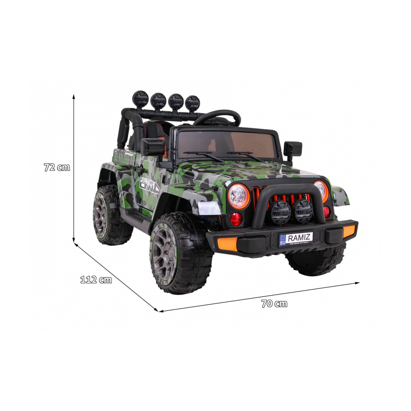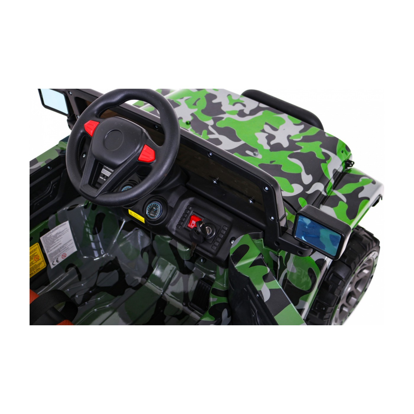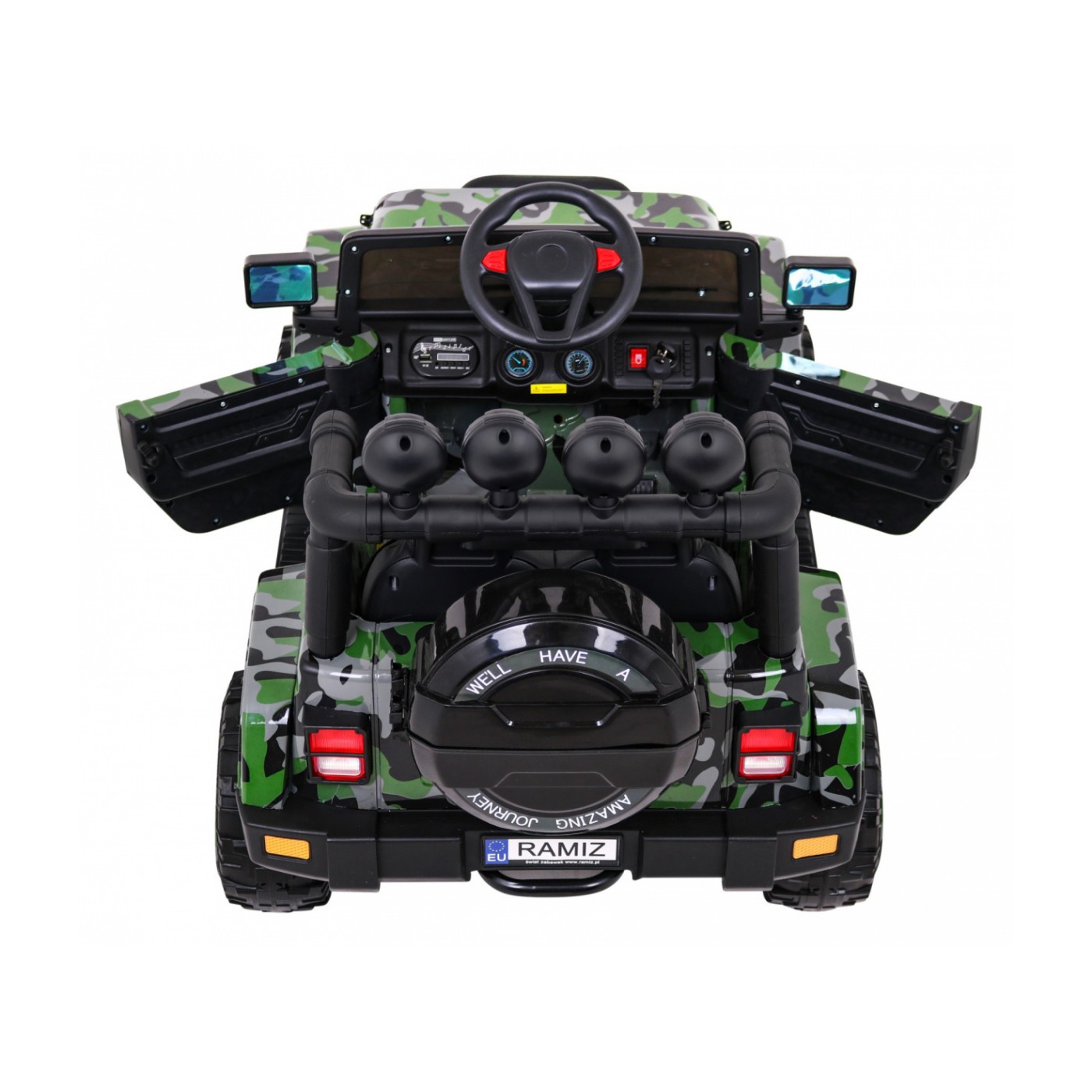 Przedstawiana terenówka jest pełna interaktywnych atrakcji, które sprawiają, że jazda staje się jeszcze bardziej ekscytująca. Światła LED na przednich i tylnych lampach dodają realizmu, a panel audio umożliwia odtwarzanie ulubionej muzyki za pomocą wejścia MP3, karty SD, USB lub AUX.