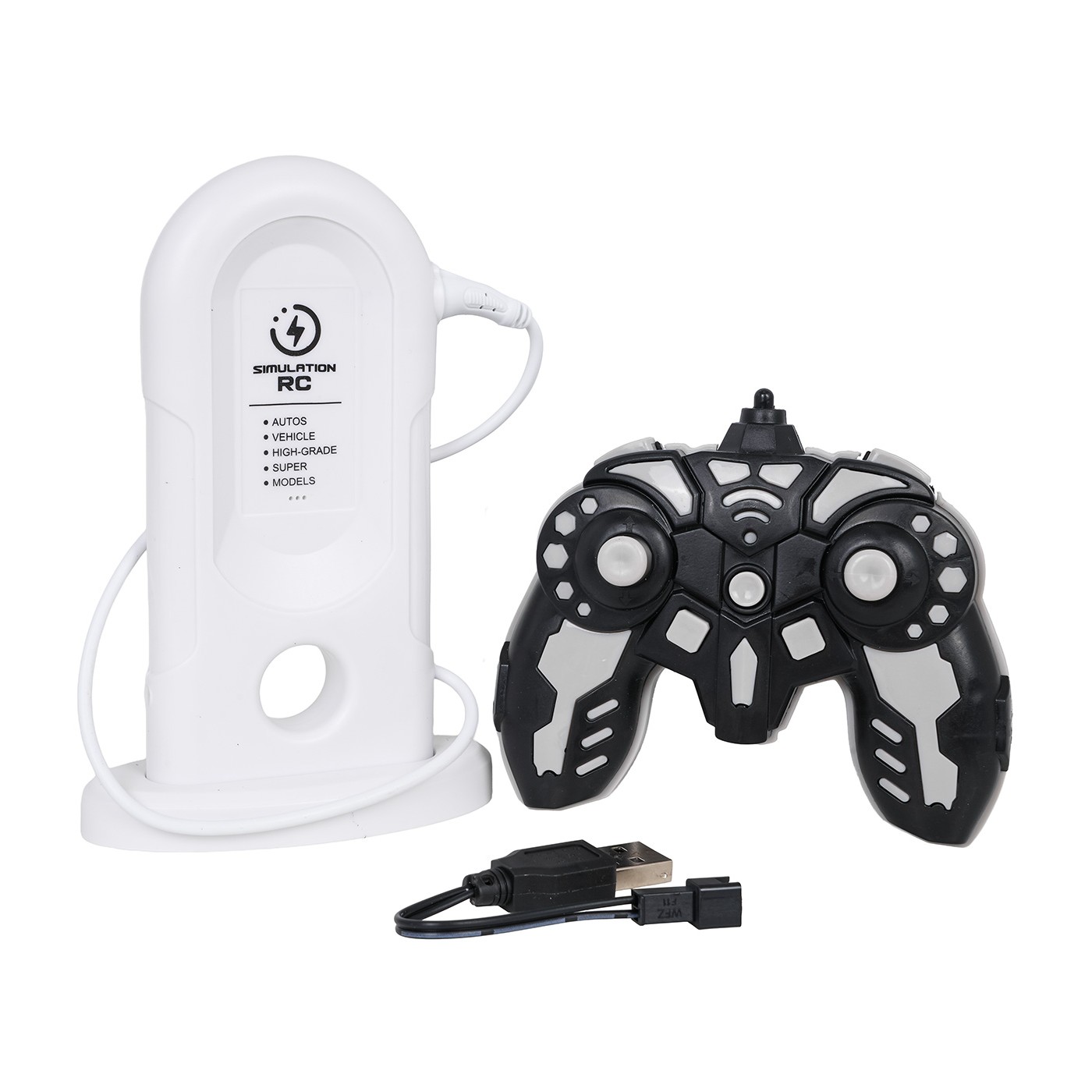 Auto porusza się we wszystkich kierunkach – do przodu, do tyłu, w lewo i prawo – oraz potrafi driftować, co sprawia, że zabawa nabiera dynamiki. Zdalne sterowanie odbywa się za pomocą pilota 2,4 GHz z możliwością regulacji kierunku jazdy. Pojazd zasilany jest akumulatorem 3,7 V, dołączonym do zestawu, a pilot wymaga dwóch baterii AA (brak w zestawie). Dodatkową atrakcją jest stacja ładująca, która symuluje proces ładowania samochodu, dzięki czemu zabawa staje się jeszcze bardziej realistyczna.