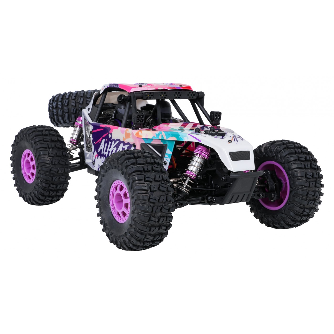 Zdalnie sterowany crawler ALIKATA w skali 1:12 to zaawansowany pojazd terenowy zaprojektowany z myślą o starszych dzieciach od czternastego roku życia oraz dorosłych entuzjastach modeli RC. Dzięki połączeniu dużej mocy, solidnej konstrukcji i dynamicznego wyglądu w fioletowej kolorystyce, ten model sprawdza się zarówno podczas ekstremalnych przejazdów po nierównym terenie, jak i w szybkiej jeździe na otwartych przestrzeniach. Off-roadowy charakter i realistyczne proporcje sprawiają, że prowadzenie tego pojazdu to prawdziwa przyjemność – niezależnie od warunków.