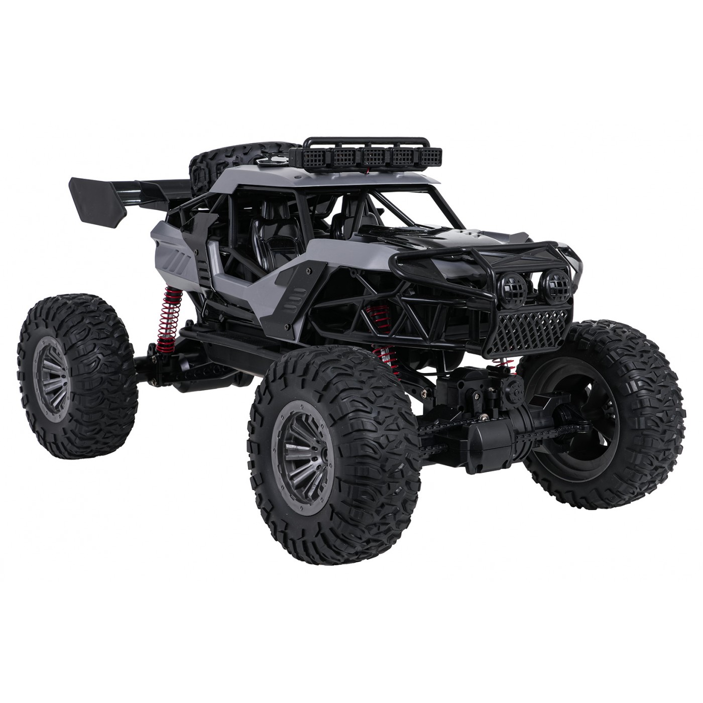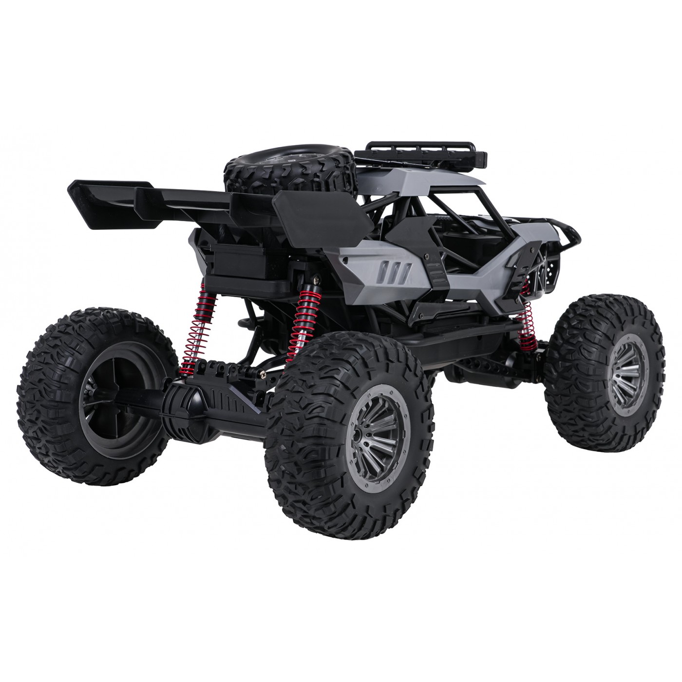 Crawler został zbudowany z wysokiej jakości materiałów z dodatkiem metalowych elementów karoserii, co znacząco wpływa na jego trwałość i odporność na uderzenia. Antykolizyjna konstrukcja i sprężynowe zawieszenie amortyzują wstrząsy, a duże gumowe opony zapewniają doskonałą przyczepność nawet na nierównym terenie.