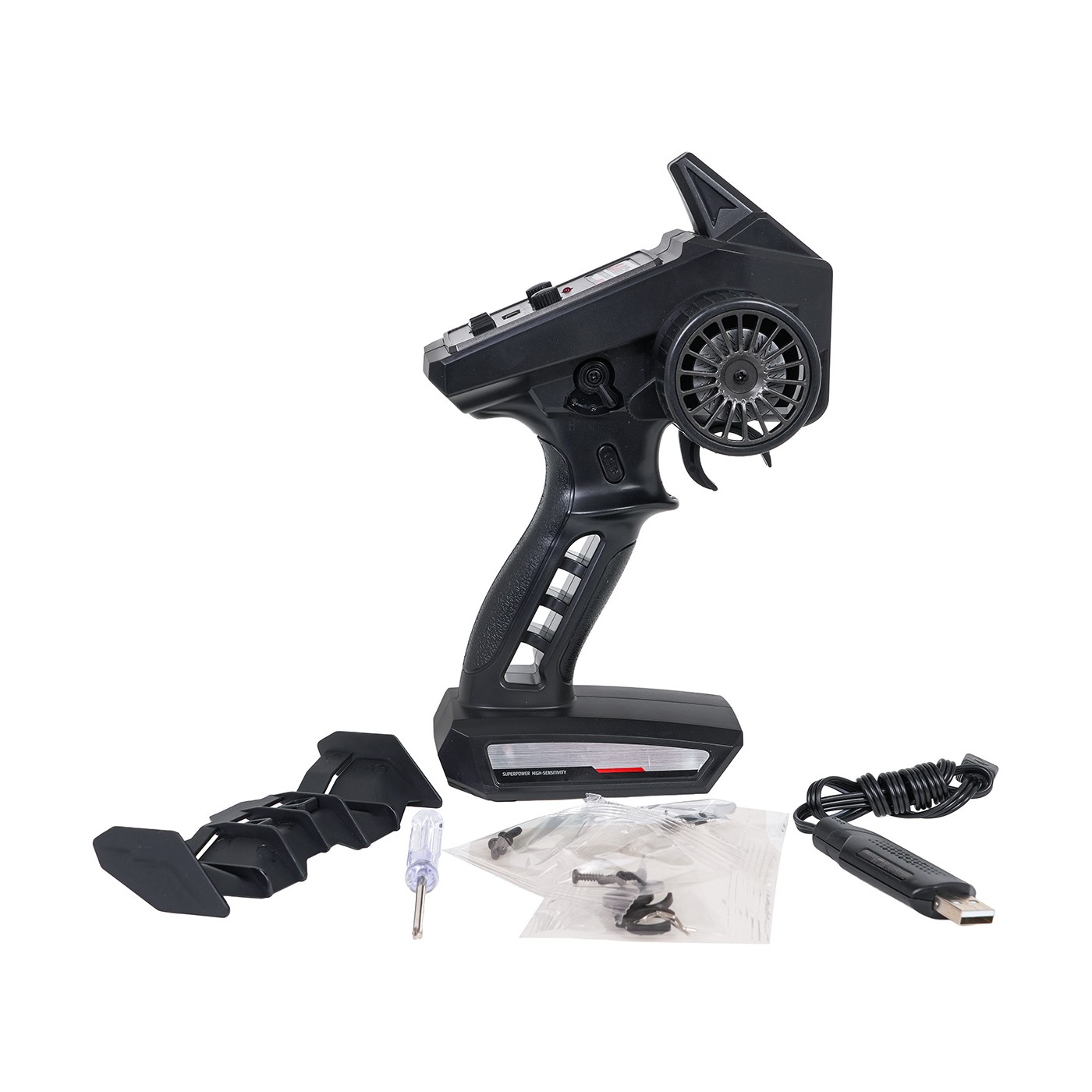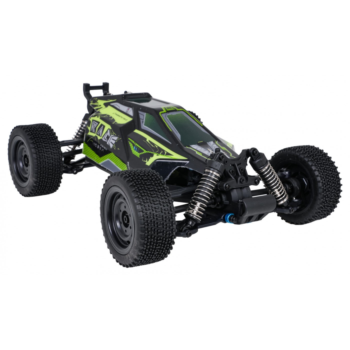 Model został wykonany z wysokiej jakości materiałów, co przekłada się na jego trwałość i odporność na intensywne użytkowanie. Wyposażony w napęd na cztery koła, duże gumowe opony oraz regulowane amortyzatory sprężynowe, bez problemu radzi sobie na nierównym terenie i podczas manewrów z dużą prędkością. Pojazd zasilany jest akumulatorem litowo-jonowym 7,4V/1300mAh, który zapewnia odpowiednią wydajność w dłuższych sesjach jazdy. Pilot działający na częstotliwości 2,4 GHz umożliwia precyzyjne sterowanie we wszystkich kierunkach, w tym gwałtowne przyspieszanie, hamowanie i cofanie. Do obsługi pilota wymagane są 3 baterie AA (niedołączone do zestawu).