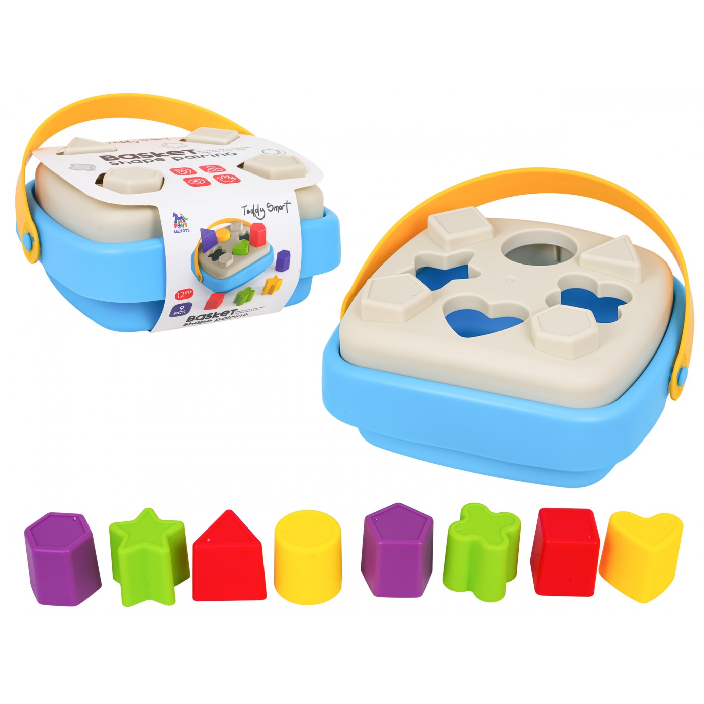 W skład zestawu wchodzi poręczne pudełko z wygodną rączką do przenoszenia oraz osiem klocków w różnych kolorach i kształtach, które należy dopasować do odpowiednich otworów w pokrywce. Wszystkie elementy wykonano z trwałego, łatwego do czyszczenia materiału, który sprawdzi się w warunkach domowych i podczas spacerów. Dzięki kompaktowym wymiarom i uchwytowi sorter można bez problemu zabrać ze sobą, co czyni go idealnym towarzyszem podróży i zabawy poza domem.