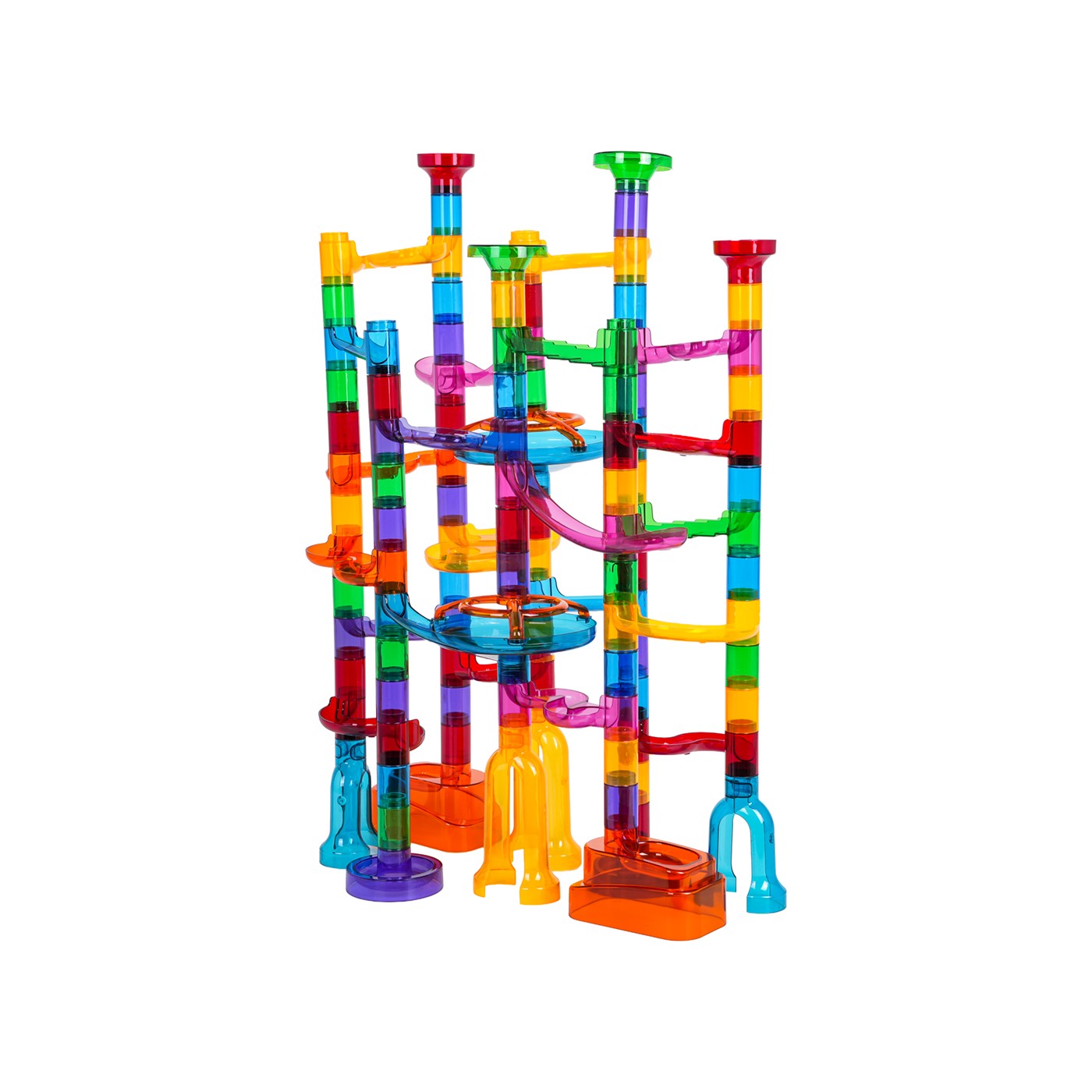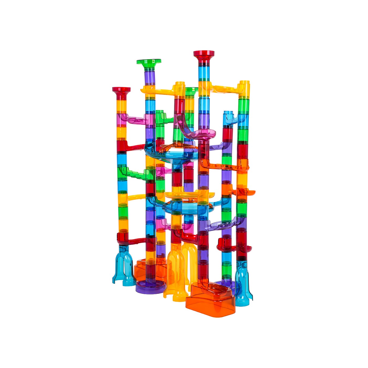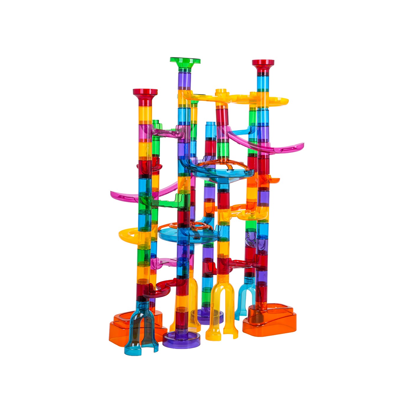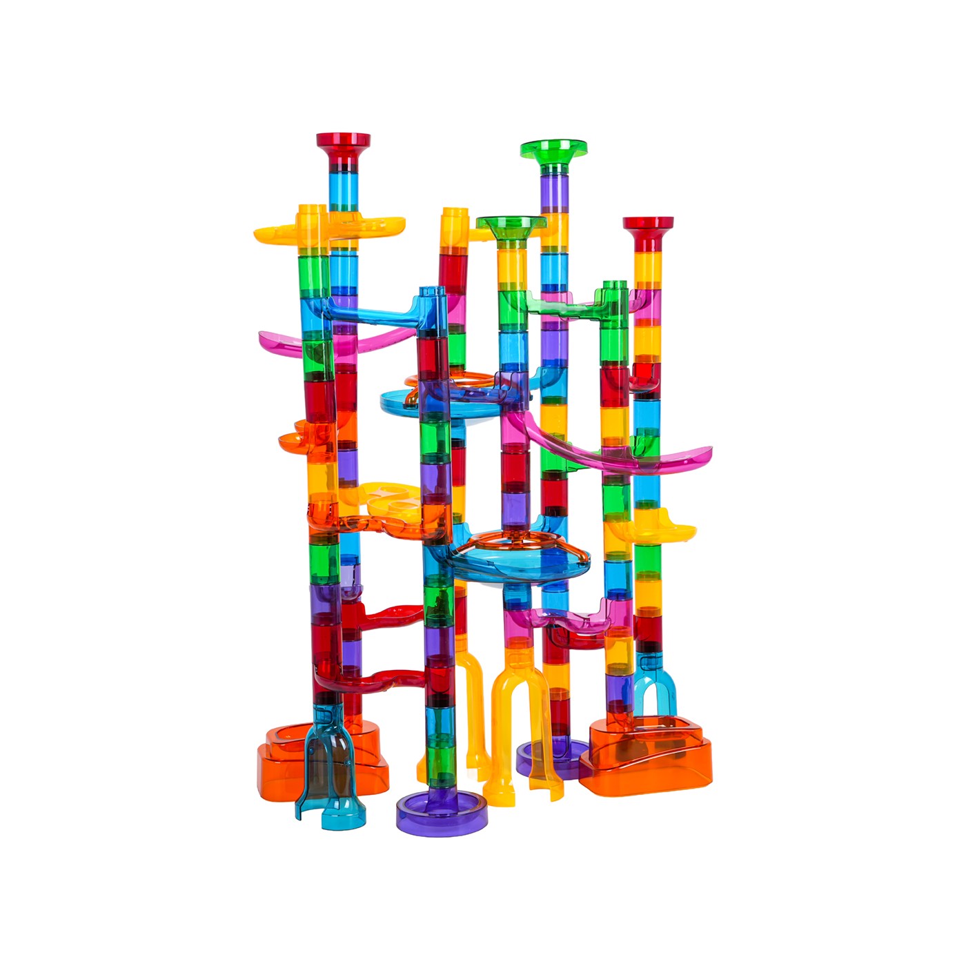 Zestaw składa się aż ze 150 elementów, które pozwalają na tworzenie wielu wariantów toru o różnym stopniu trudności. Poszczególne części są wykonane z trwałych, bezpiecznych materiałów i idealnie dopasowują się do siebie, tworząc stabilną konstrukcję.
