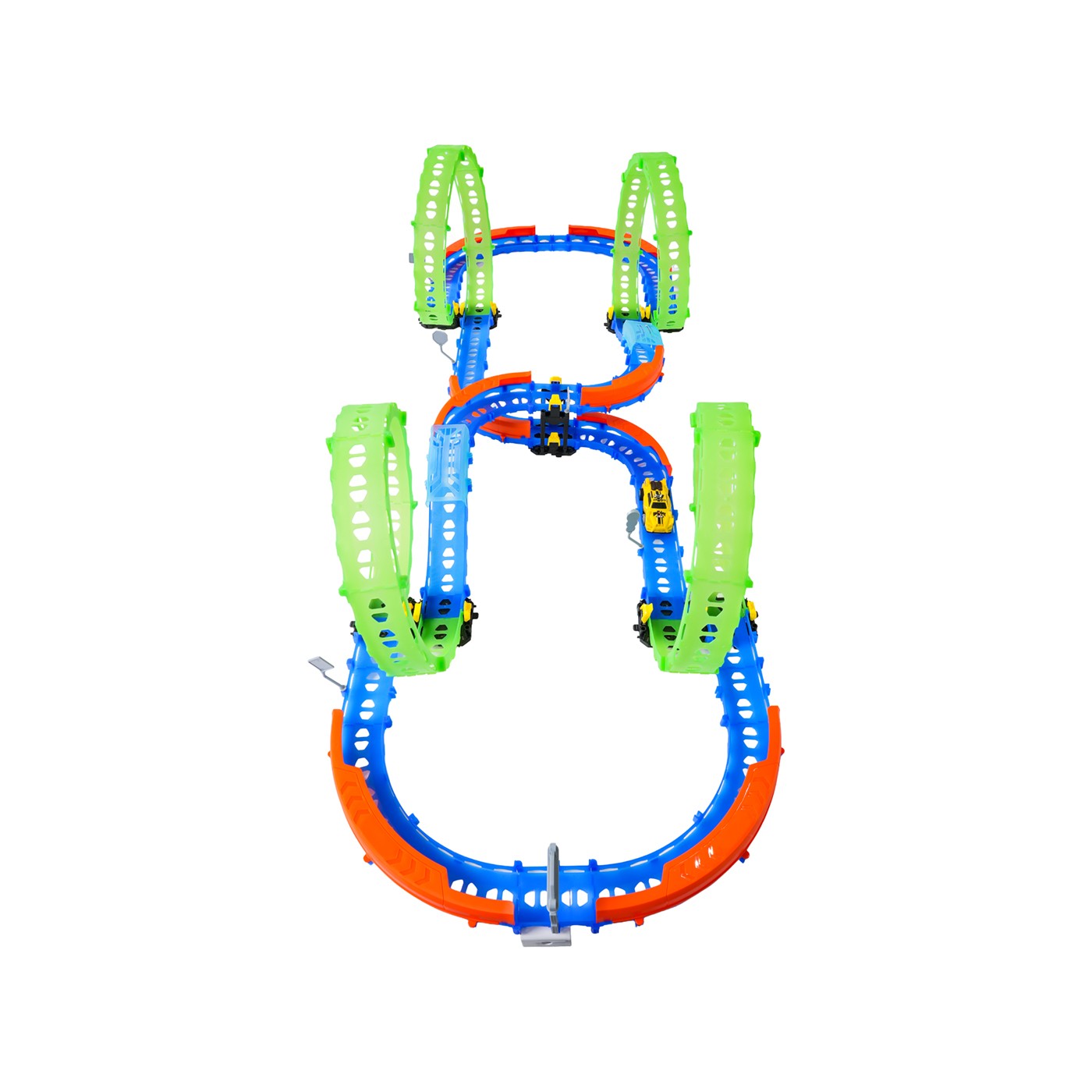 Fluorescencyjny tor wyścigowy z 86 elementów to doskonały sposób na połączenie dynamicznej zabawy z wyjątkowymi efektami wizualnymi. Dzięki świecącym w ciemności segmentom, z których tworzy się tor, każdy wyścig nabiera nowego wymiaru, szczególnie przy zgaszonym świetle.