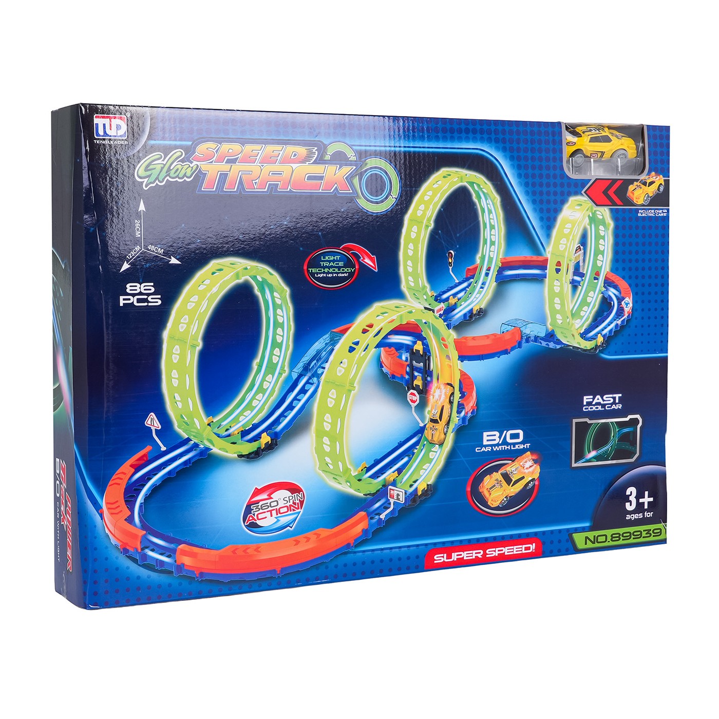Fluorescencyjny tor wyścigowy 86 el. dla dzieci 3+