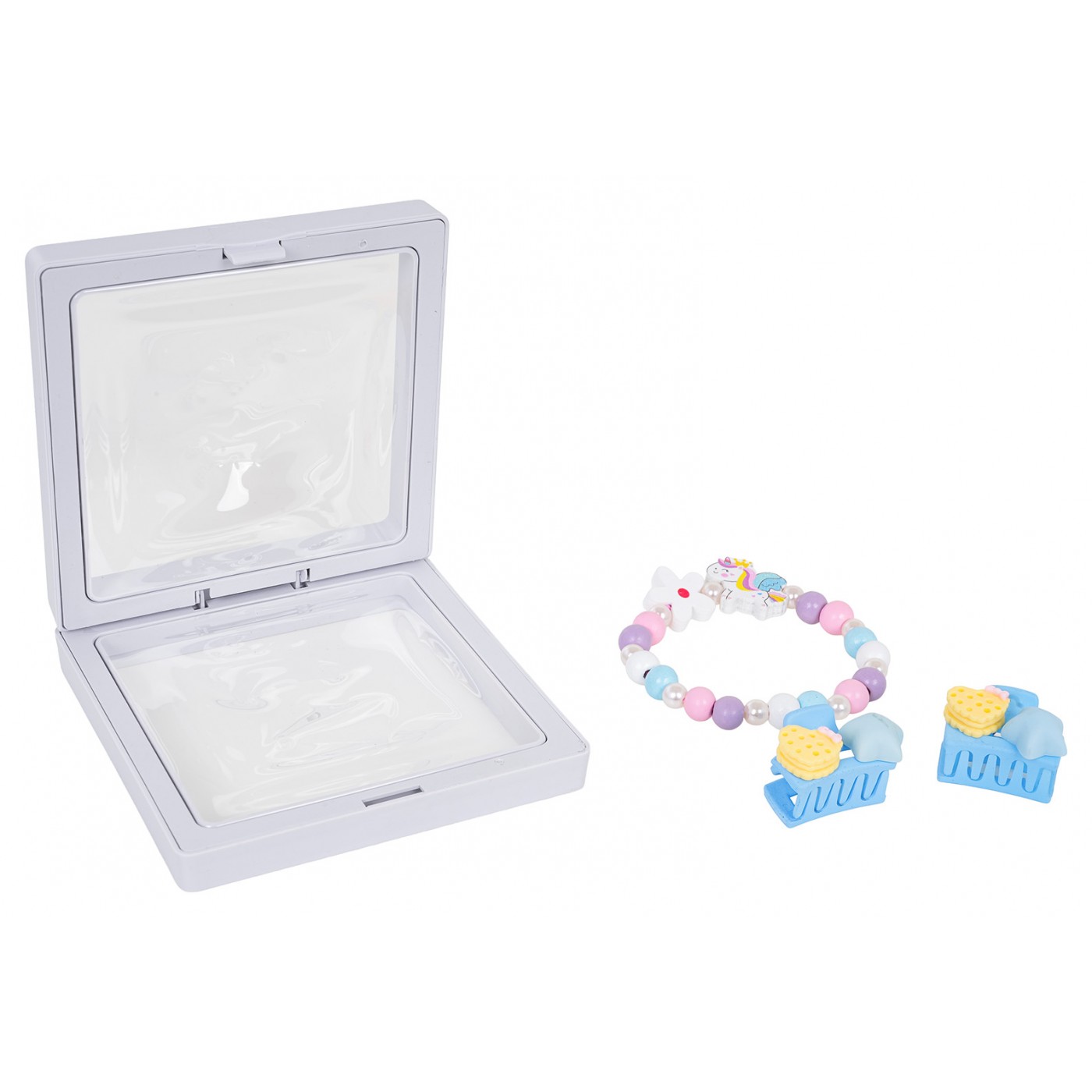 Noszenie i zakładanie biżuterii rozwija zdolności manualne i wspiera koordynację ręka–oko. Zabawa zestawem sprzyja także budowaniu poczucia estetyki, wyrażaniu siebie oraz rozwijaniu kreatywności. Dzięki bajkowemu motywowi jednorożca, dziecko może wcielać się w różne role, co wpływa na rozwój emocjonalny i społeczny.