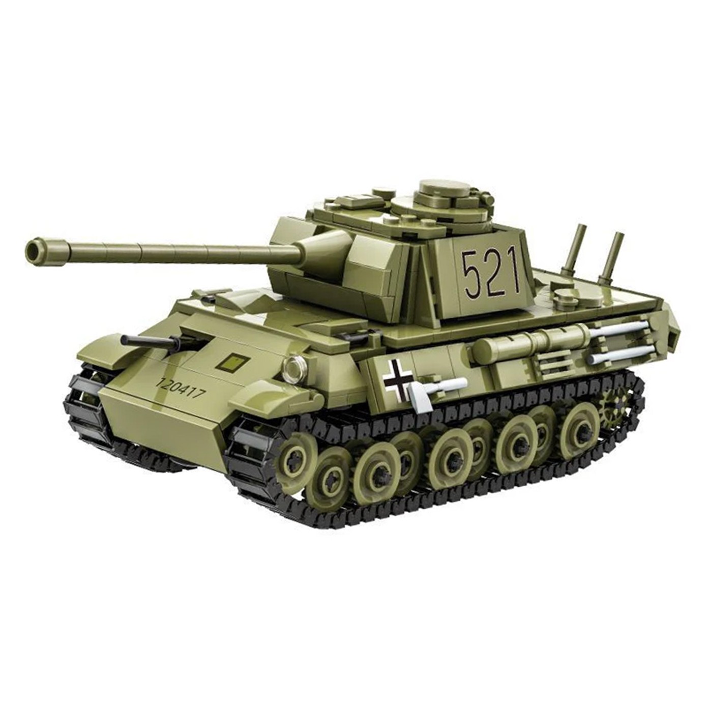 - czołg z 638 klocków konstrukcyjnych ok. 25,5 x 10,5 x 9 cm,