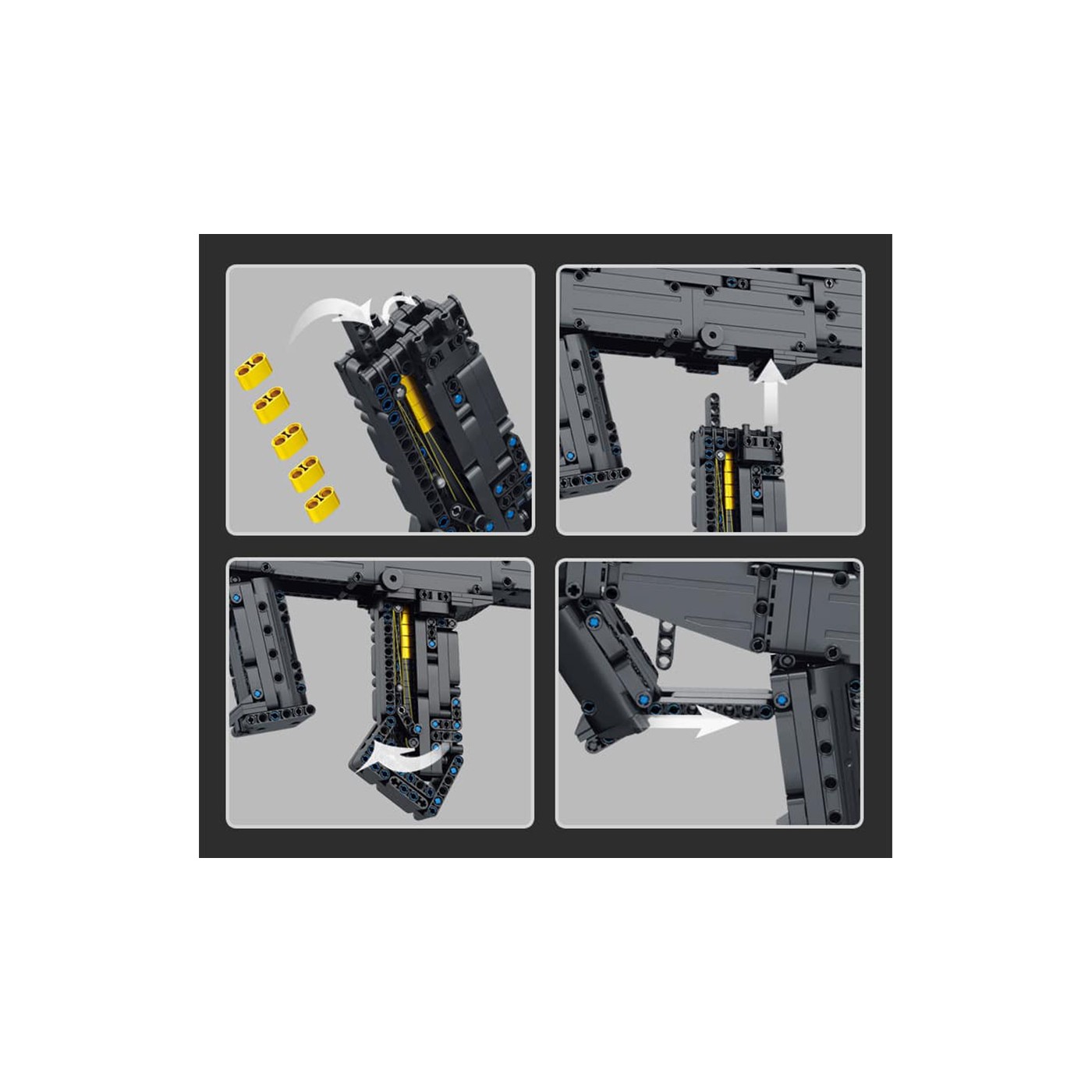 Zestaw zawiera 1133 elementy wykonane z tworzywa sztucznego zaprojektowanego z myślą o trwałości i wielokrotnym składaniu, a elementy łączą się ze sobą w sposób zapewniający stabilność konstrukcji. Produkt jest wyposażony w mechanizm strzelający miękkimi pociskami, który został dopracowany pod kątem bezpieczeństwa użytkowania. Wykonanie poszczególnych części kładzie nacisk na detale oraz precyzyjne dopasowanie, co przekłada się na satysfakcjonujący proces budowy i solidność gotowego modelu.