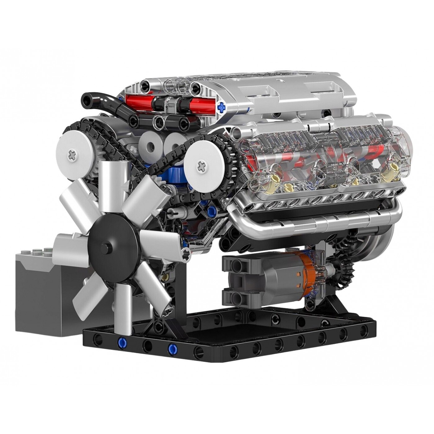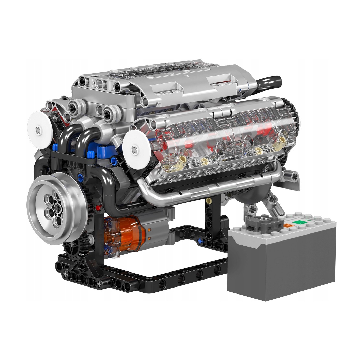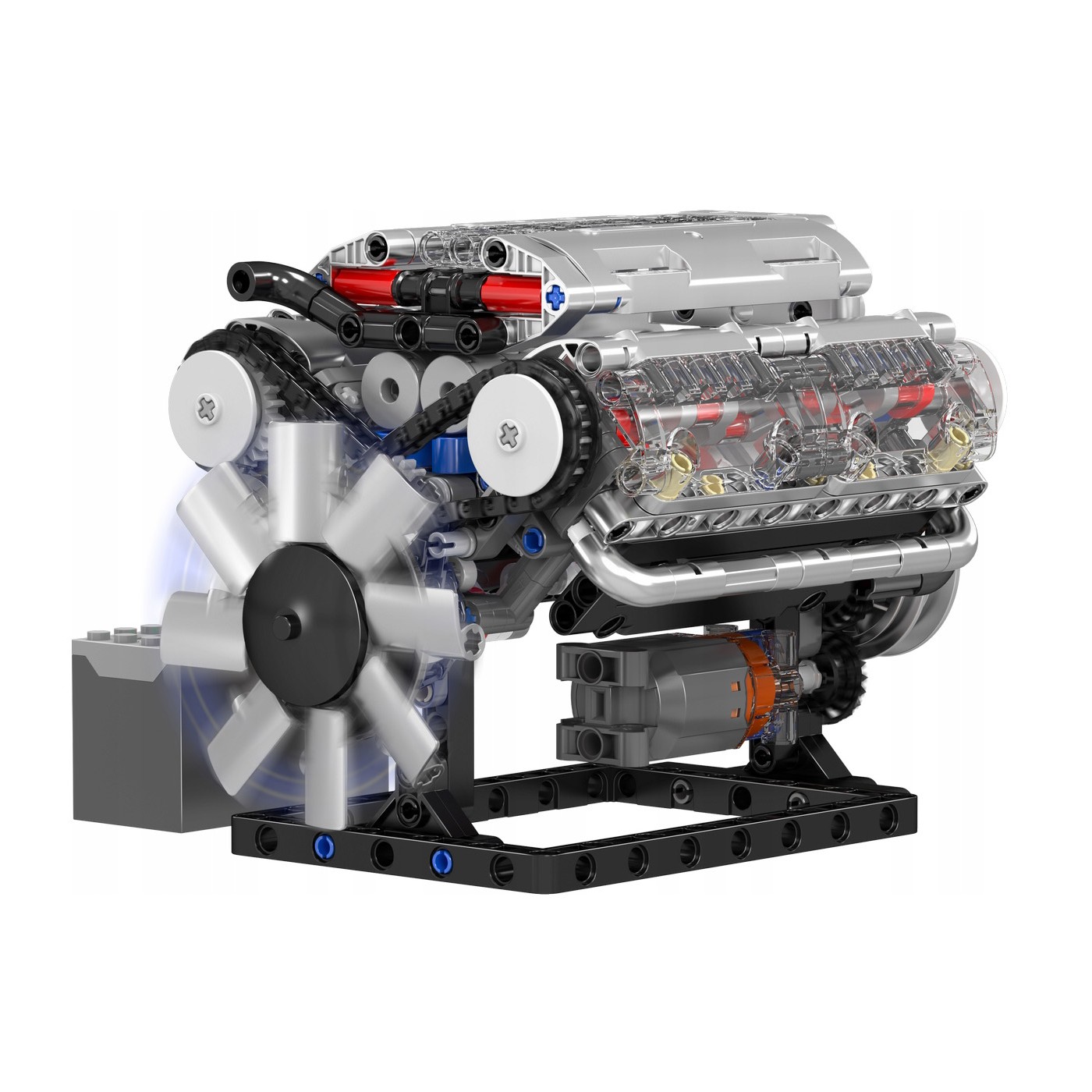 Zestaw konstrukcyjny umożliwiający budowę ośmiocylindrowego silnika V8 to propozycja skierowana do młodzieży od 14 lat, zainteresowanej mechaniką i motoryzacją. Model składa się z 552 elementów i oferuje realistyczne odwzorowanie klasycznego silnika benzynowego.