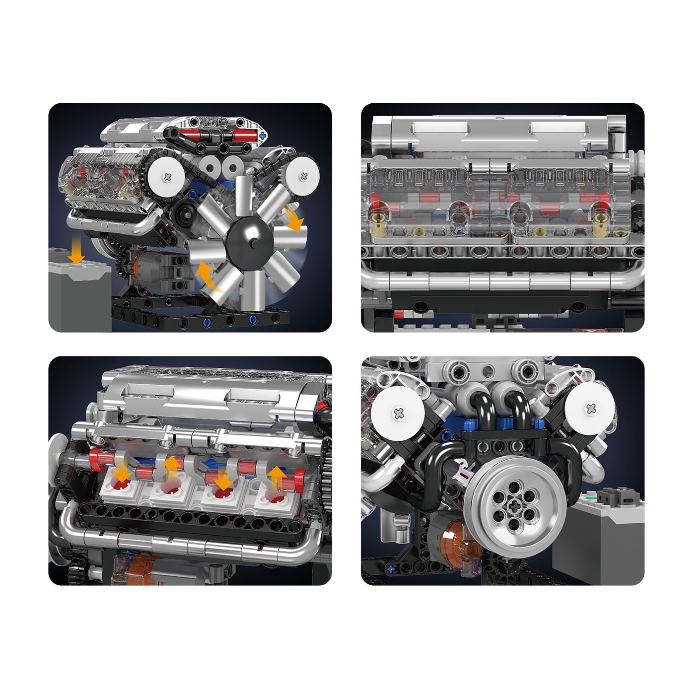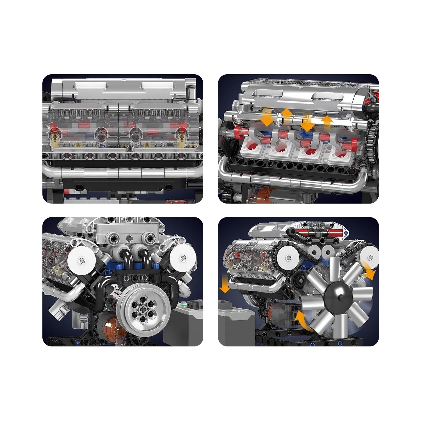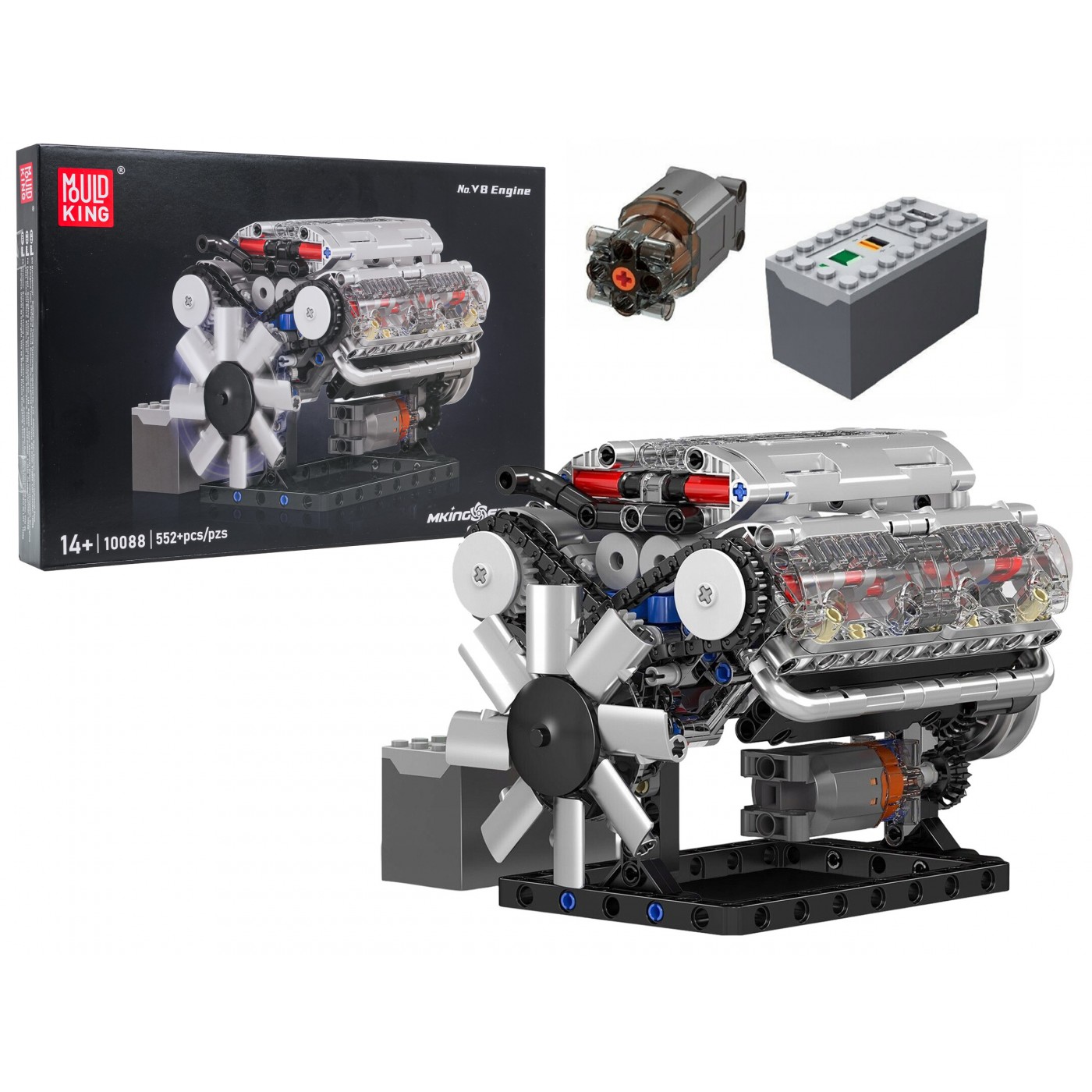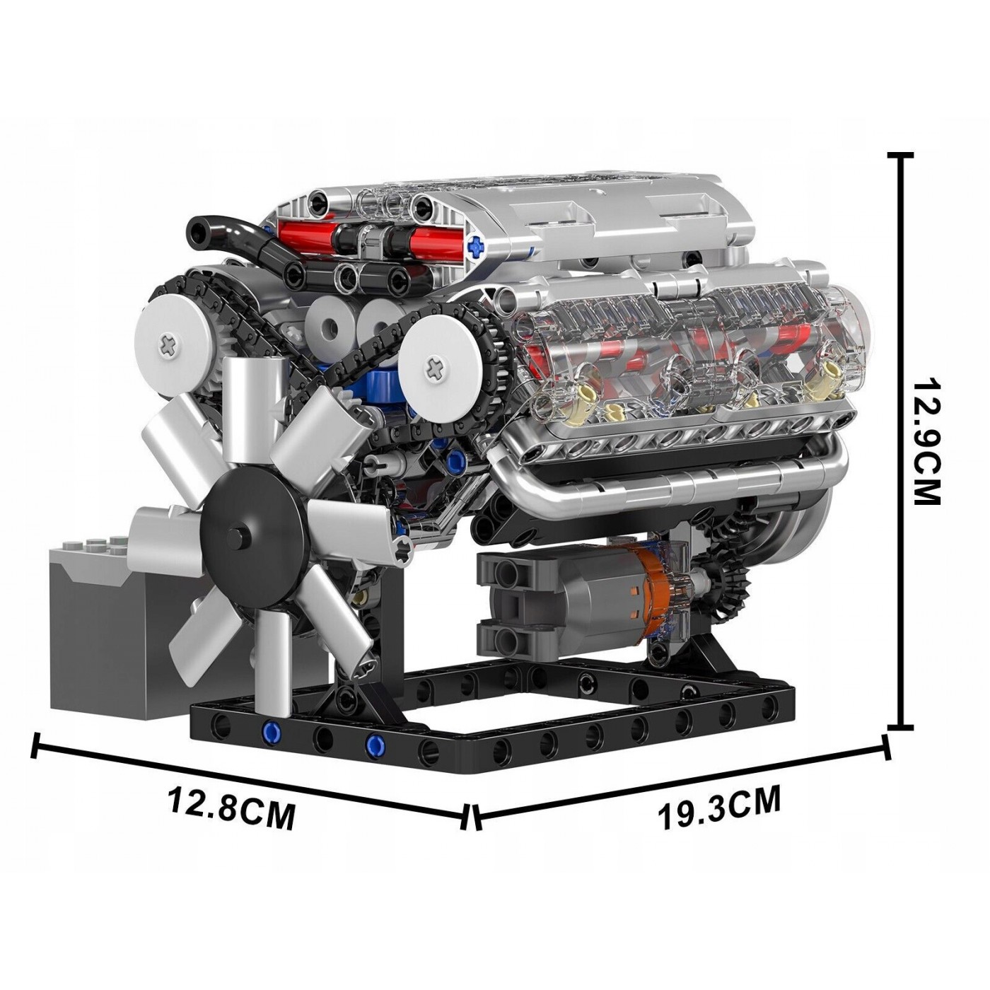 Zestaw konstrukcyjny umożliwiający budowę ośmiocylindrowego silnika V8 to propozycja skierowana do młodzieży od 14 lat, zainteresowanej mechaniką i motoryzacją. Model składa się z 552 elementów i oferuje realistyczne odwzorowanie klasycznego silnika benzynowego.
