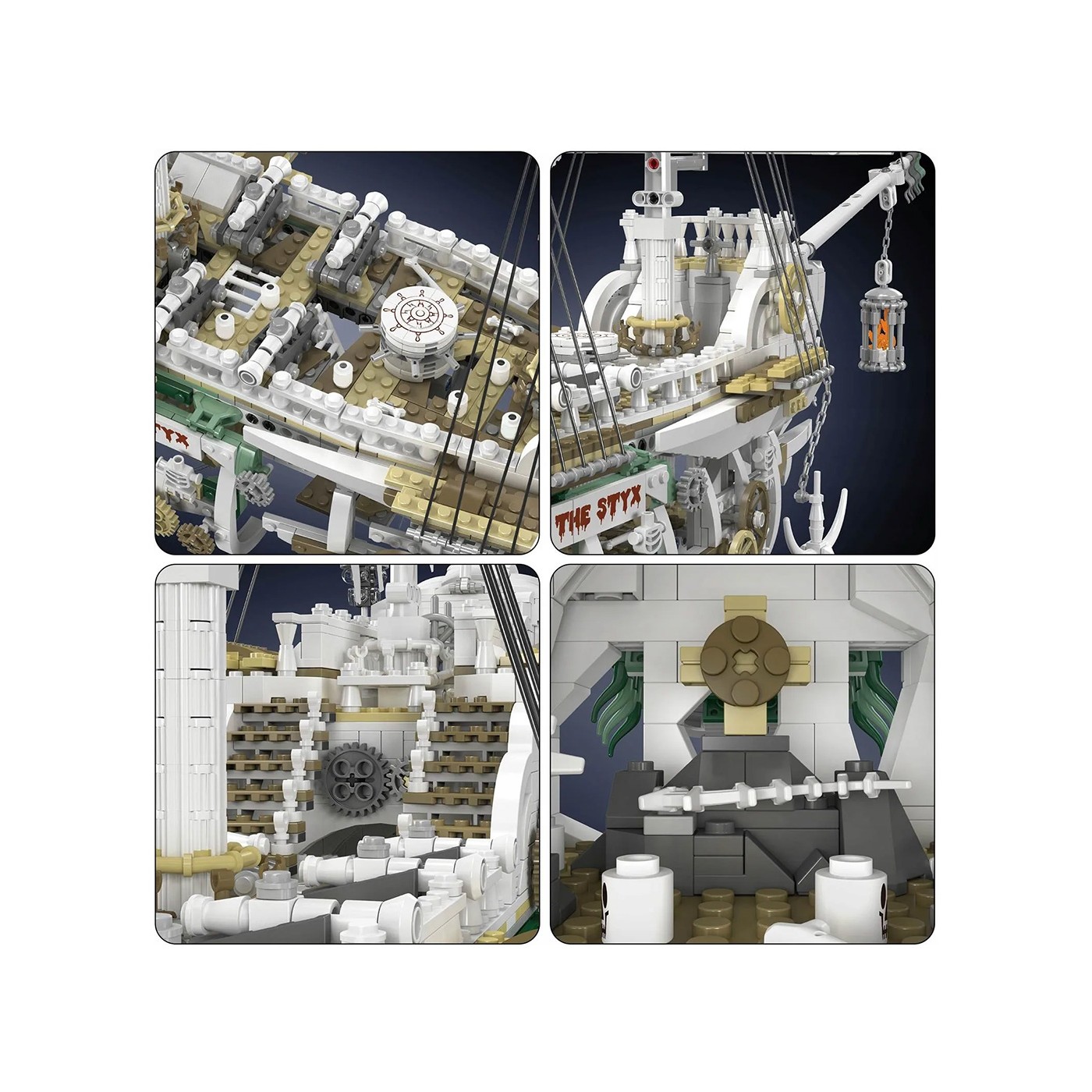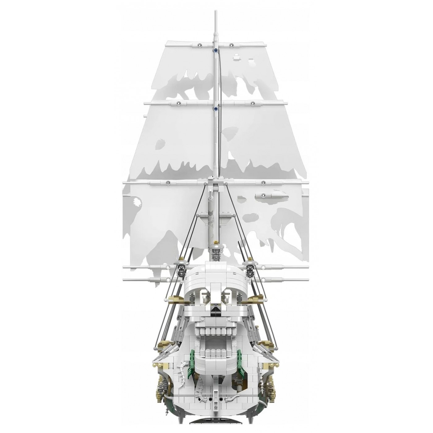 W skład zestawu wchodzi aż 3769 elementów wykonanych z wysokiej klasy tworzywa sztucznego, które zapewnia trwałość oraz odpowiednią stabilność podczas montażu i po jego zakończeniu. Każdy fragment konstrukcji został przemyślany w najdrobniejszych szczegółach, dzięki czemu model nie tylko wygląda efektownie, ale również wiernie nawiązuje do estetyki klasycznych żaglowców. Żagle i działa zostały rozmieszczone z dbałością o proporcje, a pokład zbudowano tak, by umożliwić dokładne odwzorowanie różnych poziomów konstrukcji.