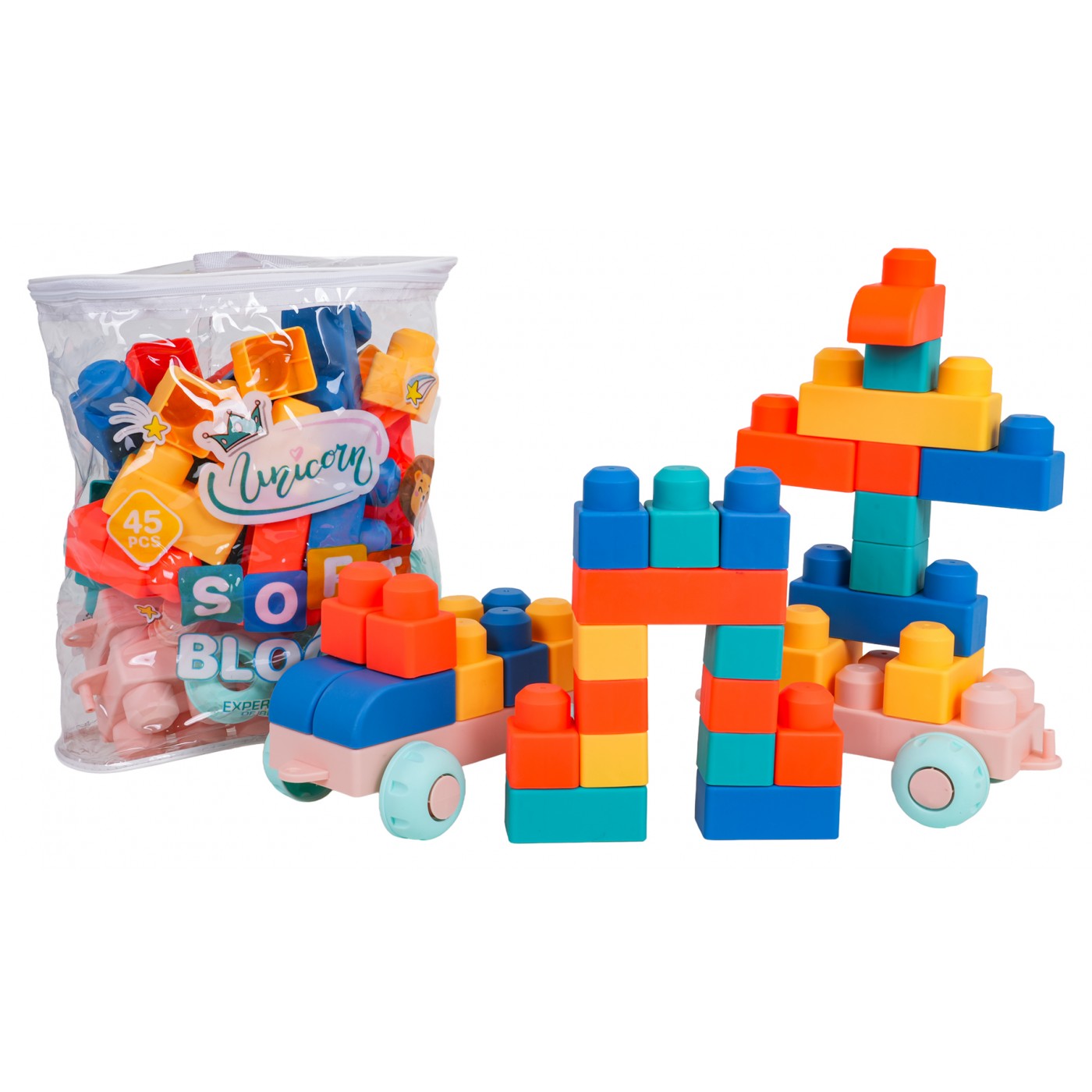 Zestaw miękkich klocków 45-elementowy to przemyślana propozycja dla dzieci od trzeciego roku życia, która łączy bezpieczeństwo z radością tworzenia. Klocki wykonano z wysokiej jakości materiału PVC, pozbawionego ostrych krawędzi i całkowicie bezpiecznego zarówno dla dziecka, jak i środowiska.