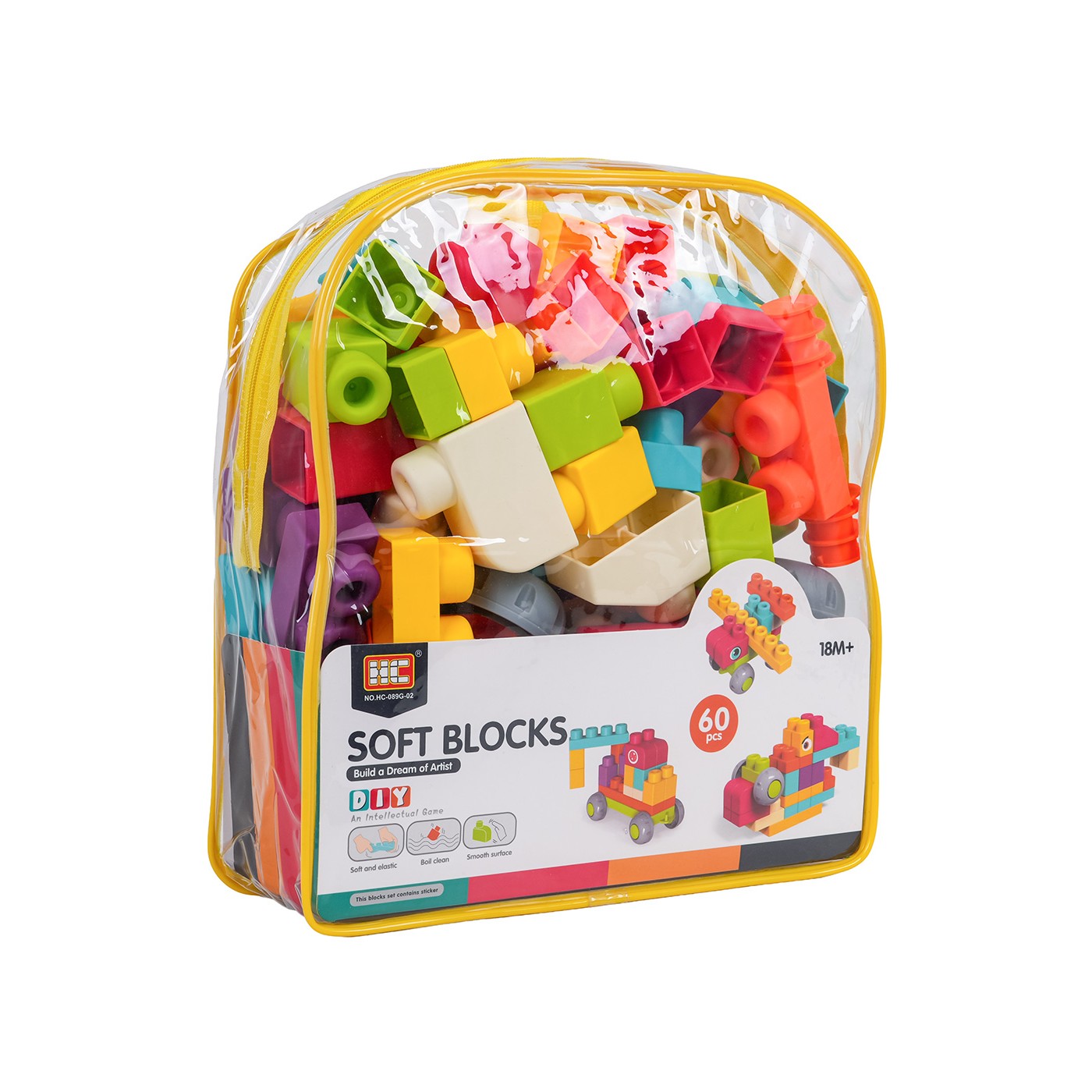 Zestaw miękkich klocków 60-elementowy z praktycznym plecakiem to idealna propozycja dla dzieci od 18-go miesiąca życia. Klocki wykonane zostały z elastycznego materiału PVC, który jest całkowicie bezpieczny dla najmłodszych i przyjazny dla środowiska.