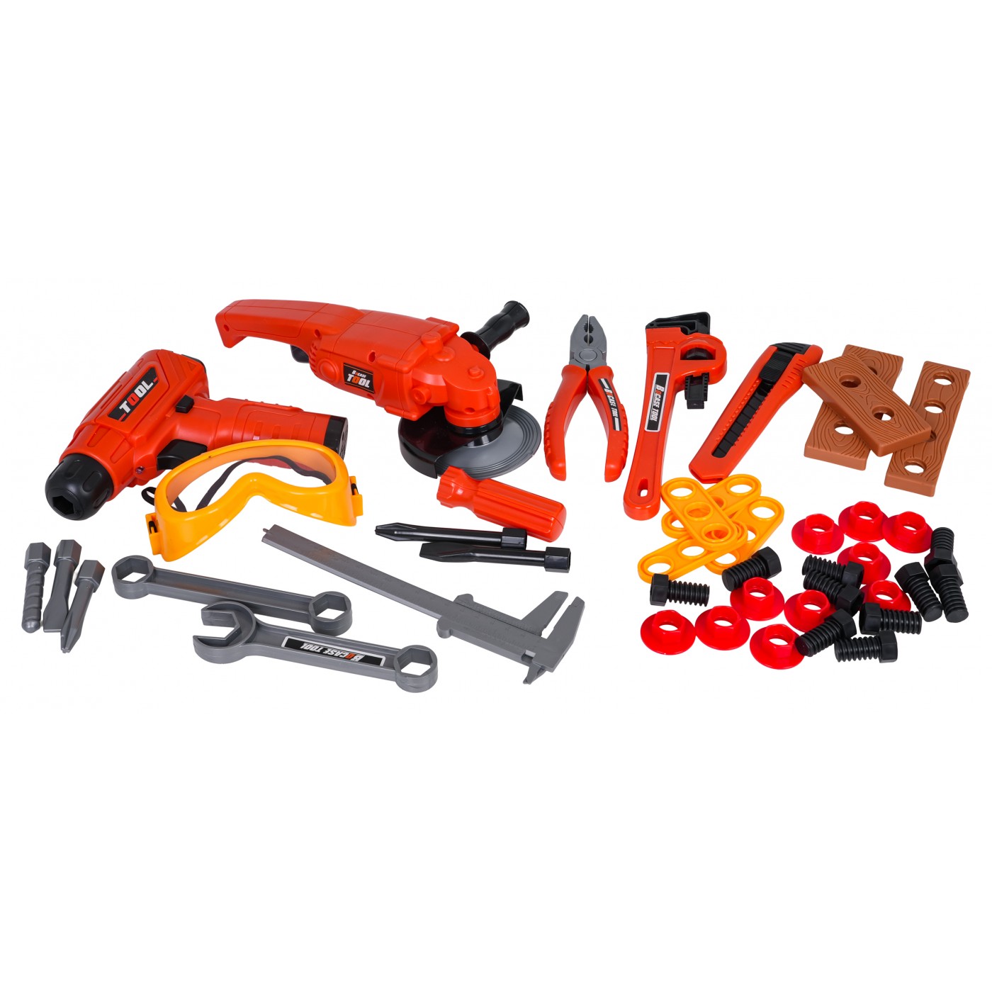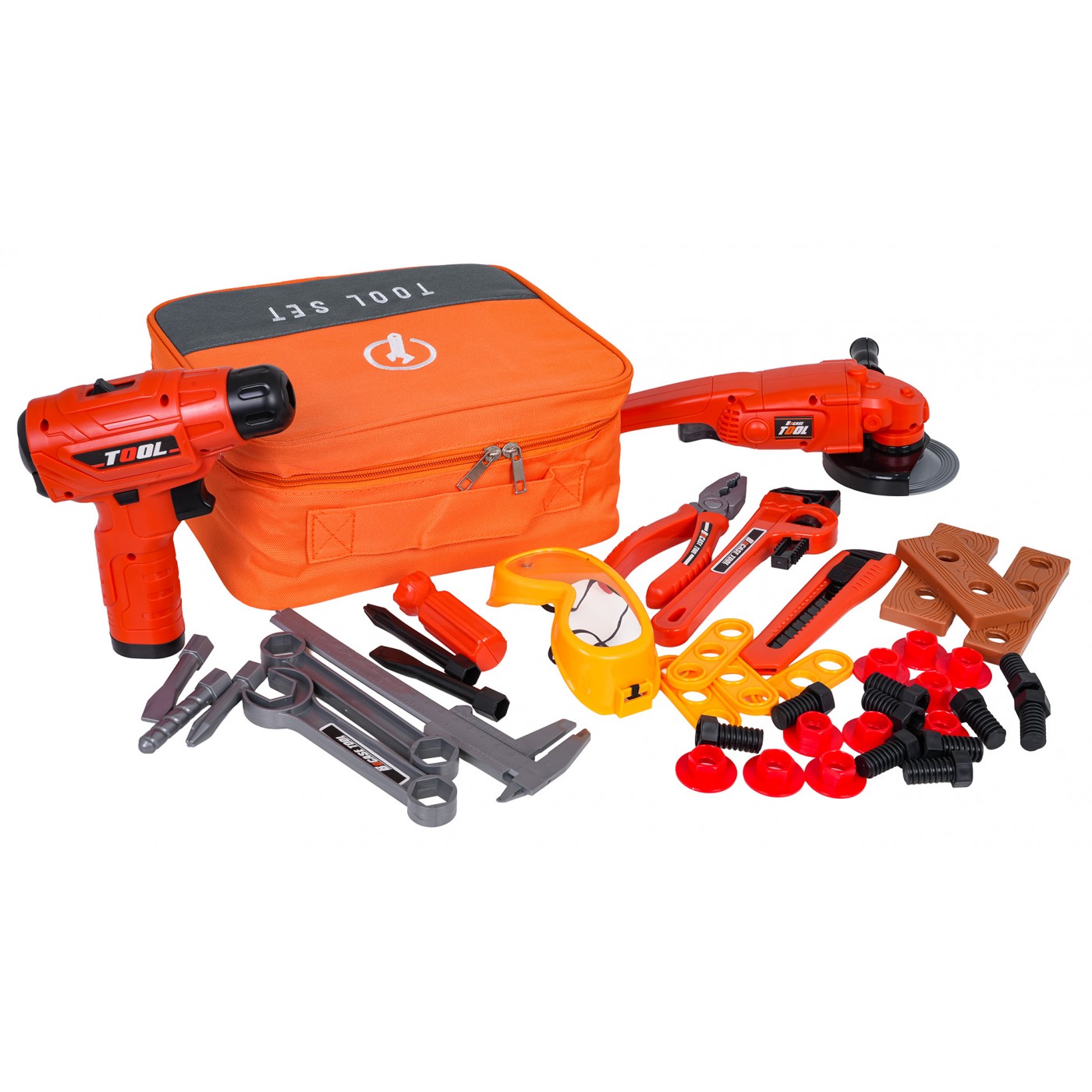 Zestaw narzędzi z torbą to idealna propozycja dla dzieci od trzeciego roku życia, które interesują się światem techniki i lubią naśladować dorosłych podczas domowych napraw. Komplet składa się aż z 42 elementów, co pozwala na tworzenie różnorodnych scenariuszy zabawy. W skład zestawu wchodzą między innymi: wiertarko-wkrętarka, szlifierka, klucze, suwmiarka, kombinerki, okulary ochronne, śrubki, bity oraz wygodna torba, która pomieści wszystkie narzędzia. Całość wykonano z trwałego tworzywa, zachowując przy tym dbałość o detale i bezpieczeństwo najmłodszych użytkowników.