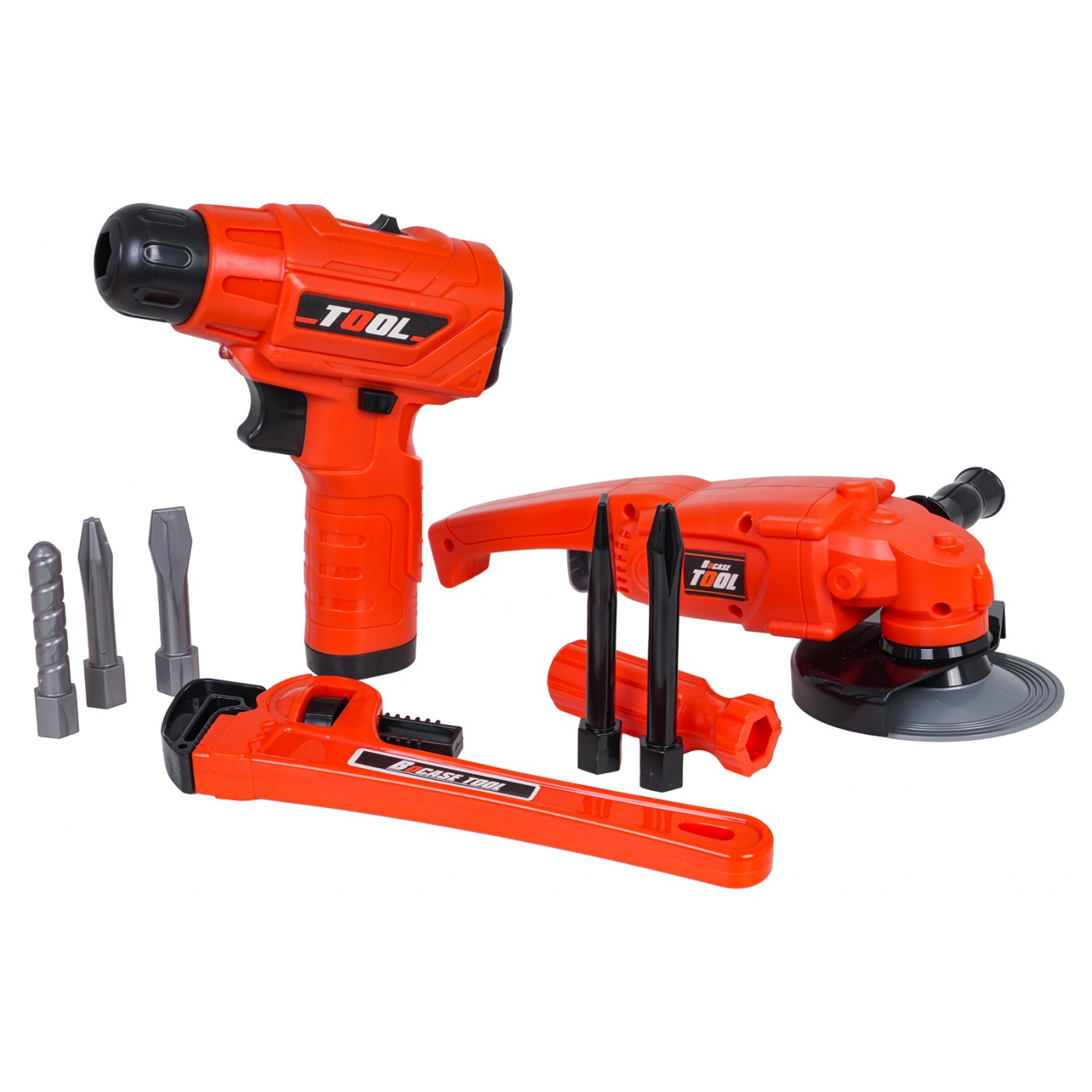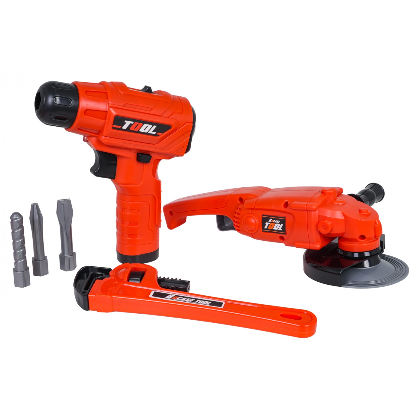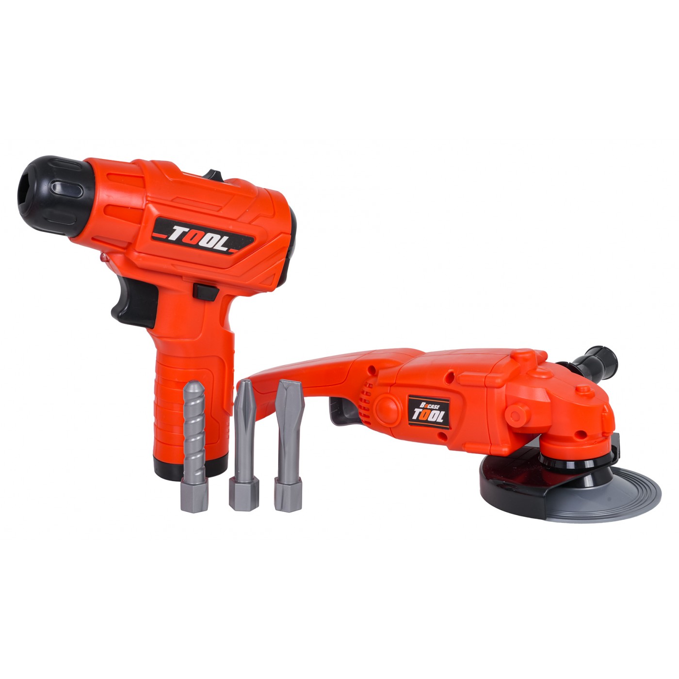 Wiertarko-wkrętarka zasilana jest dwoma bateriami typu AA i została wyposażona w efekty świetlne oraz realistyczne odgłosy pracy maszyny. Może zarówno wkręcać, jak i wykręcać śrubki, co pozwala dziecku lepiej zrozumieć mechanikę działania narzędzi. Szlifierka posiada obracającą się tarczę (manualnie), a pozostałe elementy zostały zaprojektowane tak, by odzwierciedlać wygląd prawdziwego wyposażenia warsztatowego. Wszystkie akcesoria mieszczą się w poręcznej torbie, która ułatwia przechowywanie i przenoszenie zestawu. Zabawka nie zawiera baterii, co umożliwia dobór odpowiedniego źródła zasilania według preferencji.