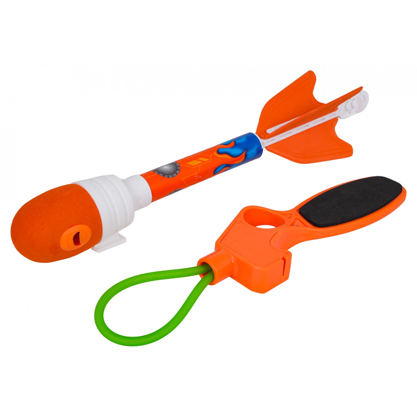 W jej górnej części umieszczony został gwizdek, który urozmaica dźwiękowe wrażenia podczas lotu. Dołączona do zestawu proca z gumką pozwala na szybkie i efektowne wystrzelenie zarówno samolotu, jak i rakiety. Rakieta zasilana jest bateriami, które znajdują się w zestawie.